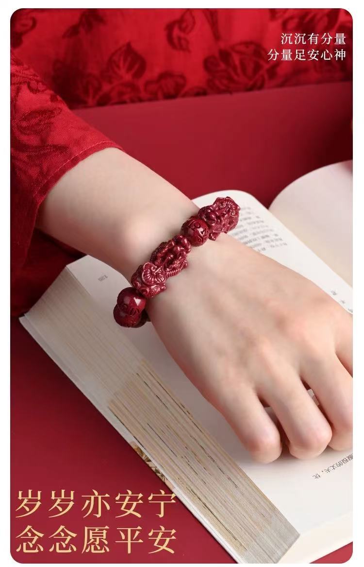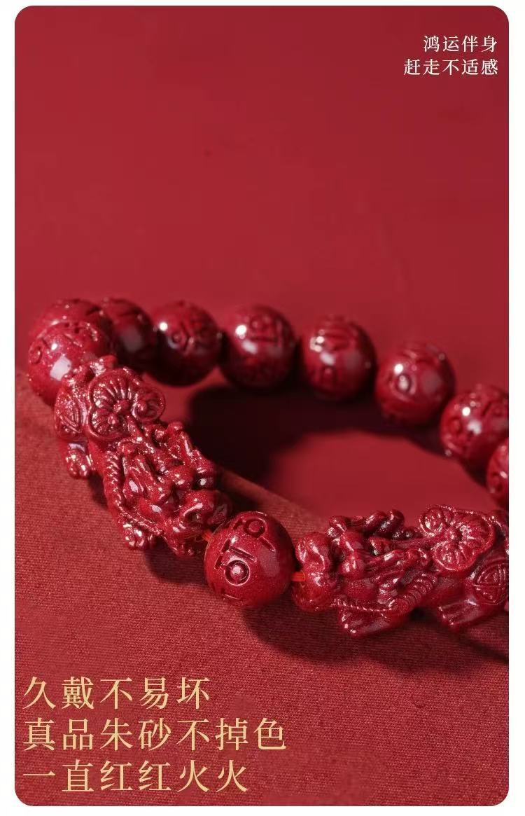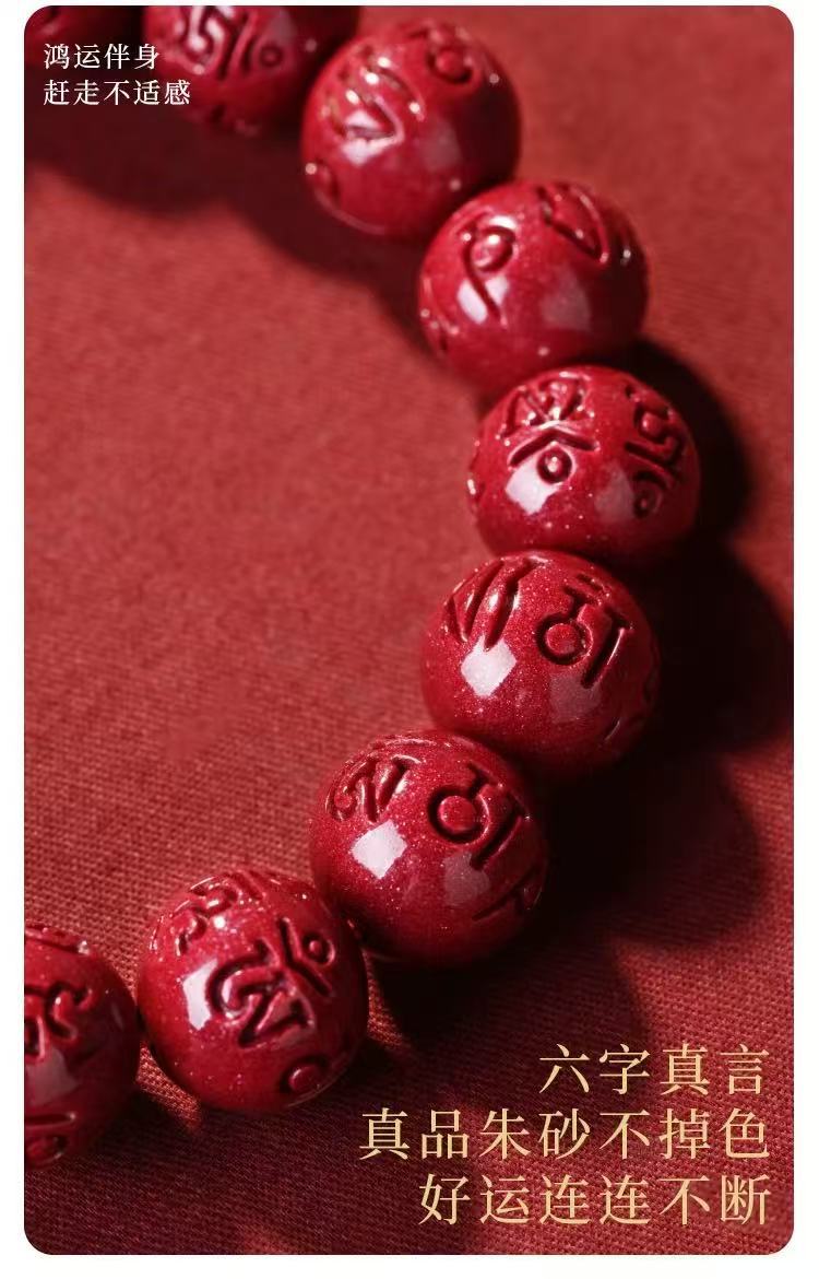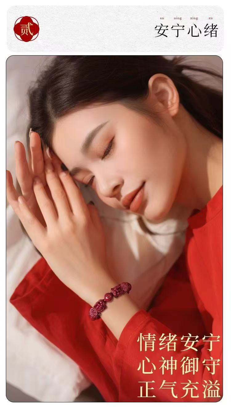 原礦硃砂手串六字真言貔貅高含量紫金砂本命年男女款手鏈飾品