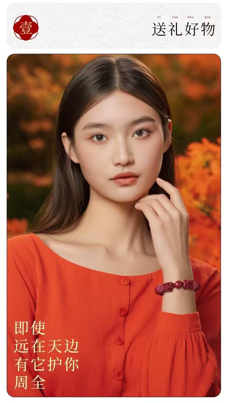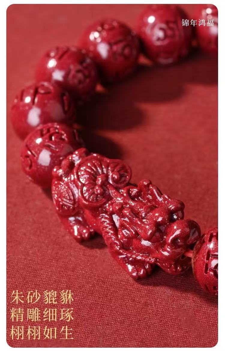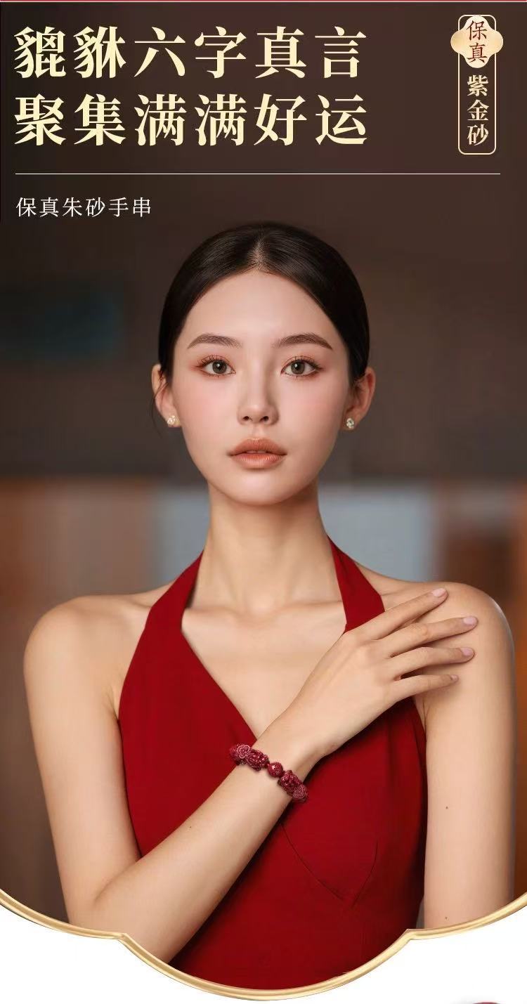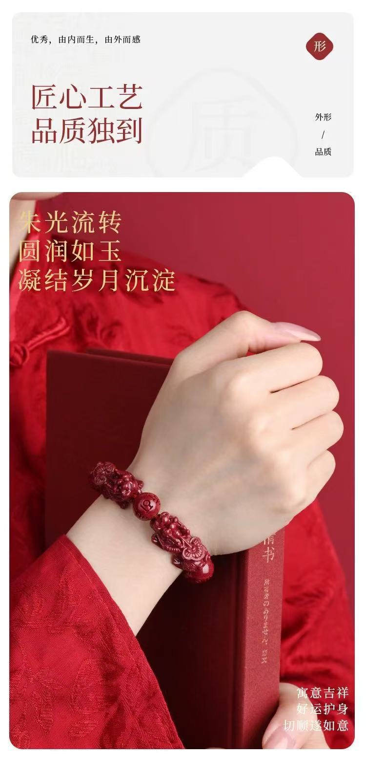 原礦硃砂手串六字真言貔貅高含量紫金砂本命年男女款手鏈飾品