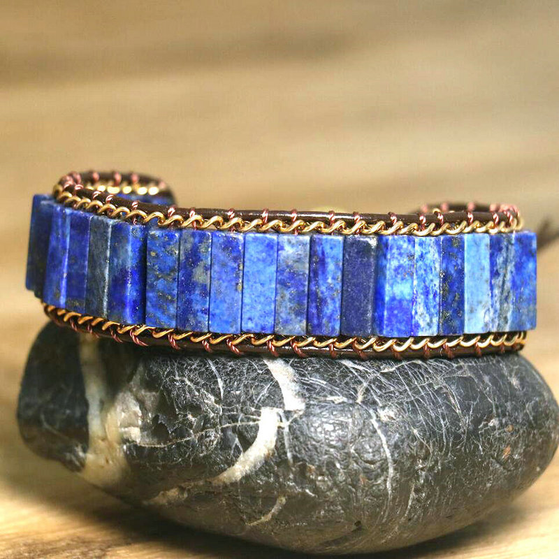 長條石頭青金石金鏈條編織手鏈可調節手鏈