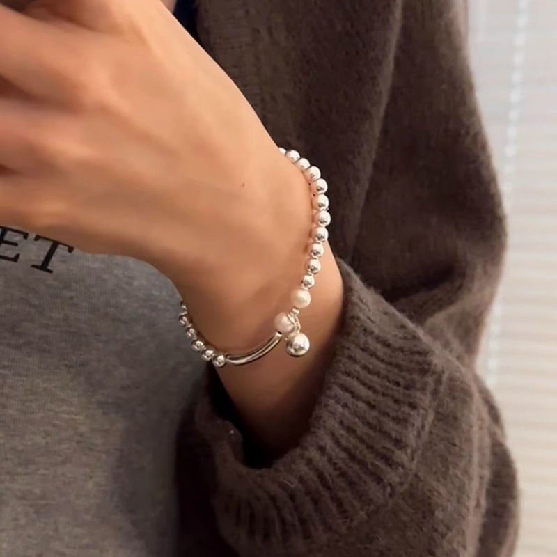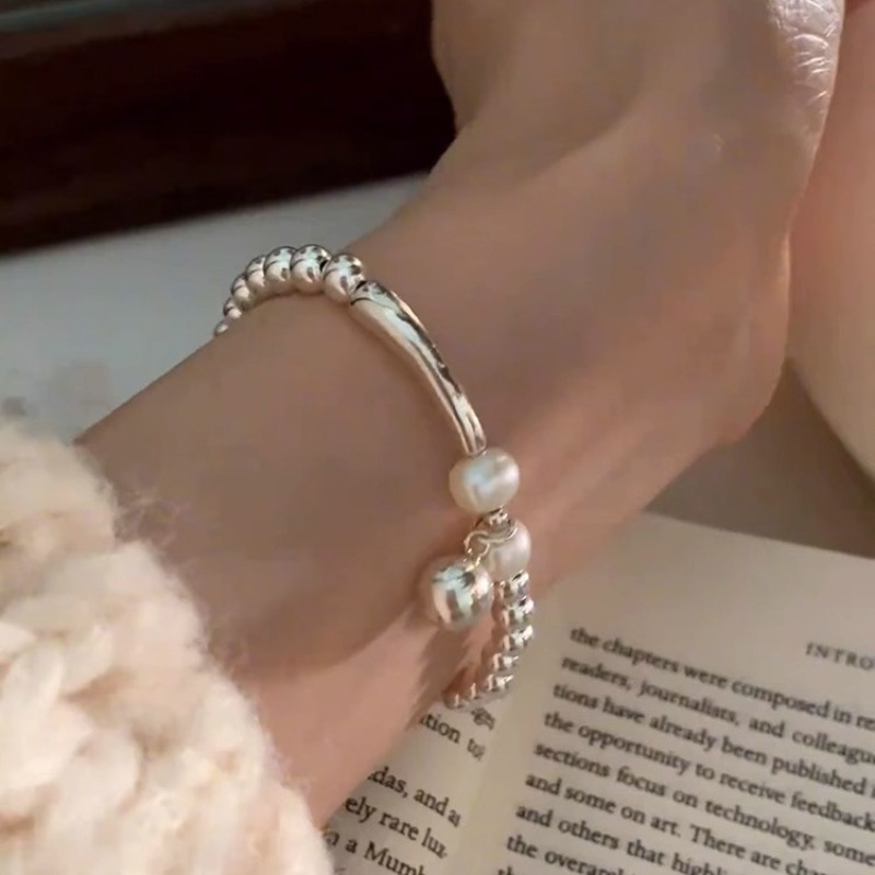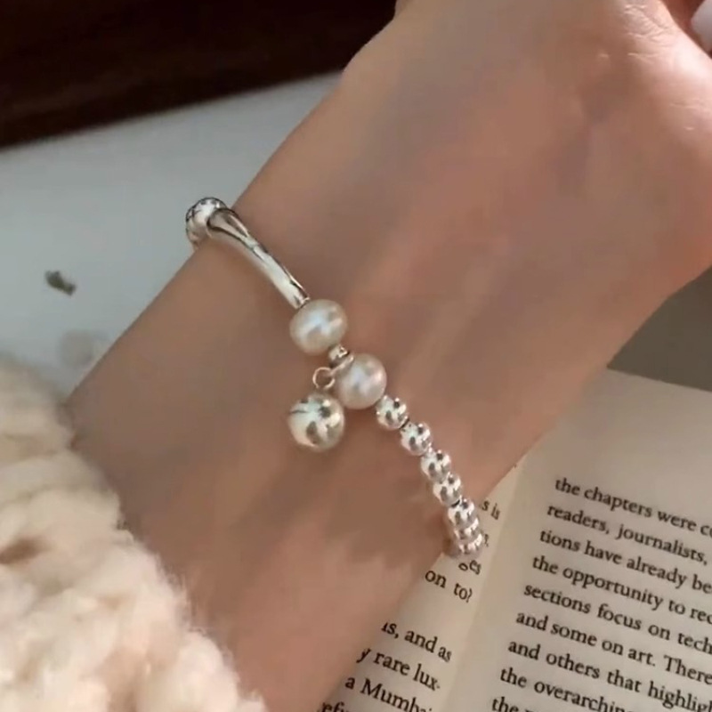 韓版輕奢s925純銀串珠珍珠手鏈女冷淡風簡約百搭小衆高級感手飾潮