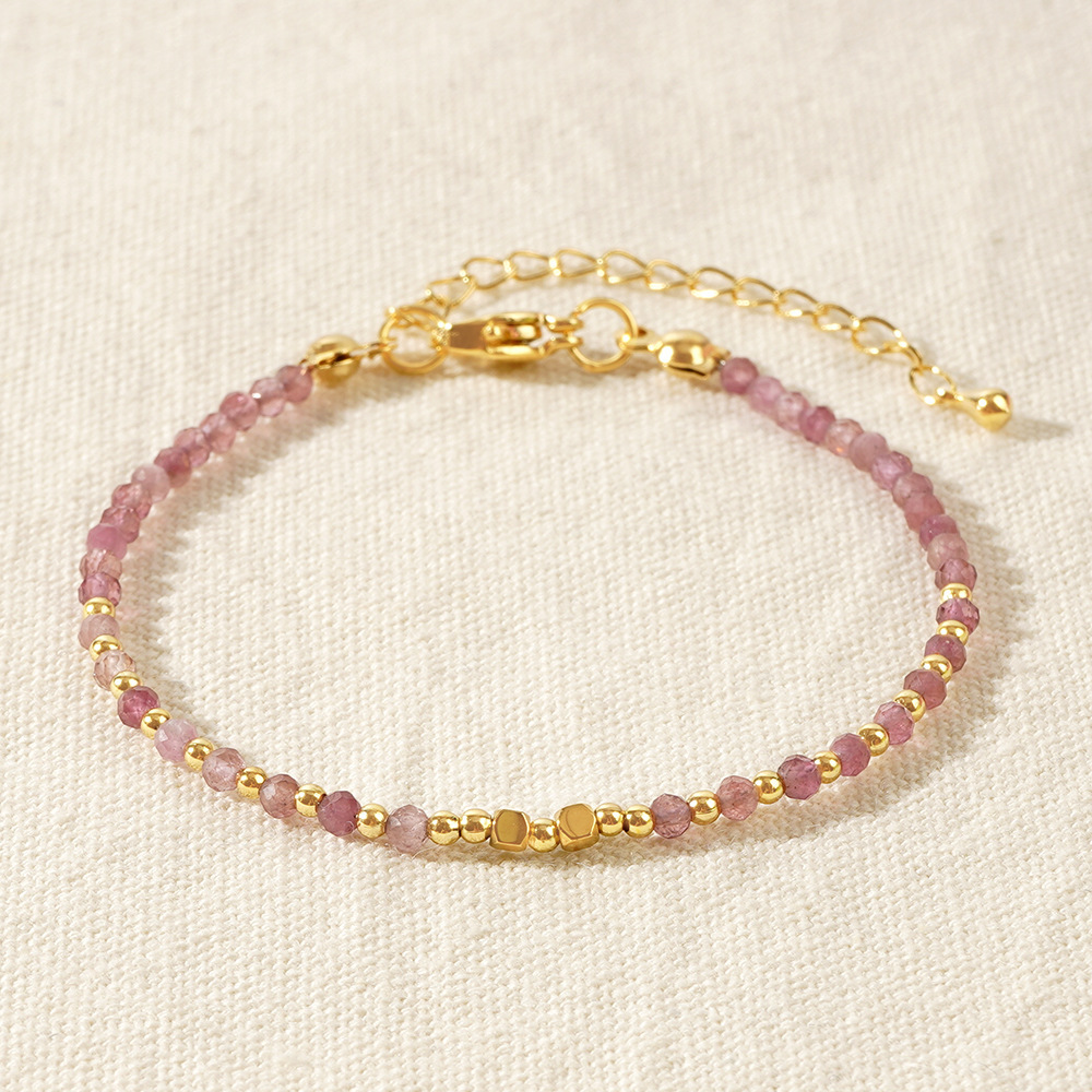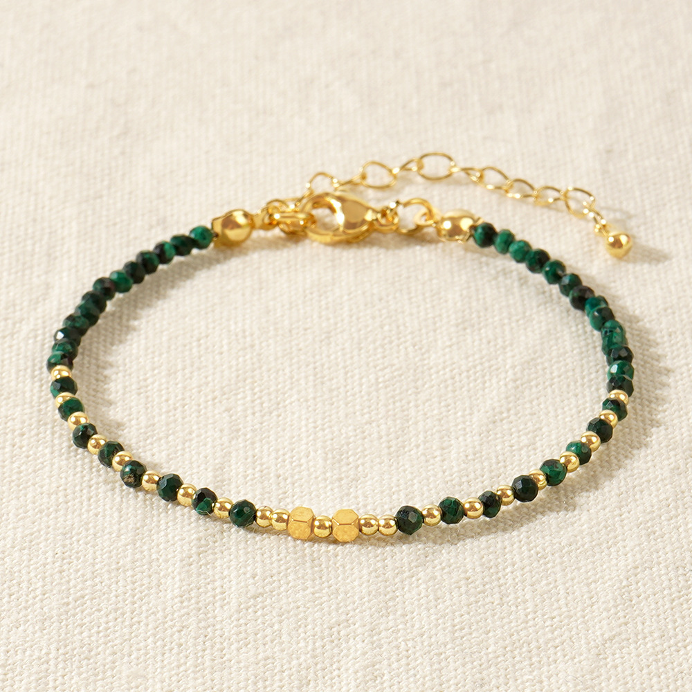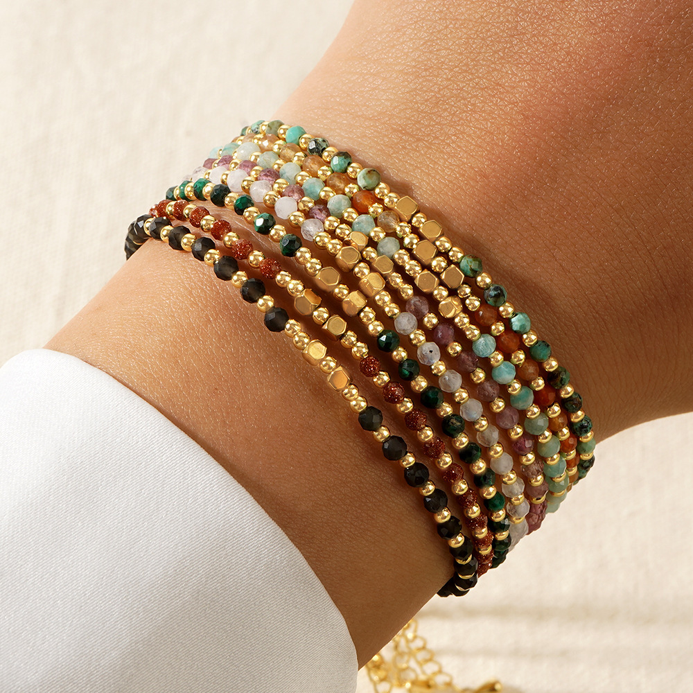 歐美波西米亞風彩色天然石串珠手鏈女士幸運手串四方珠銅珠手鏈