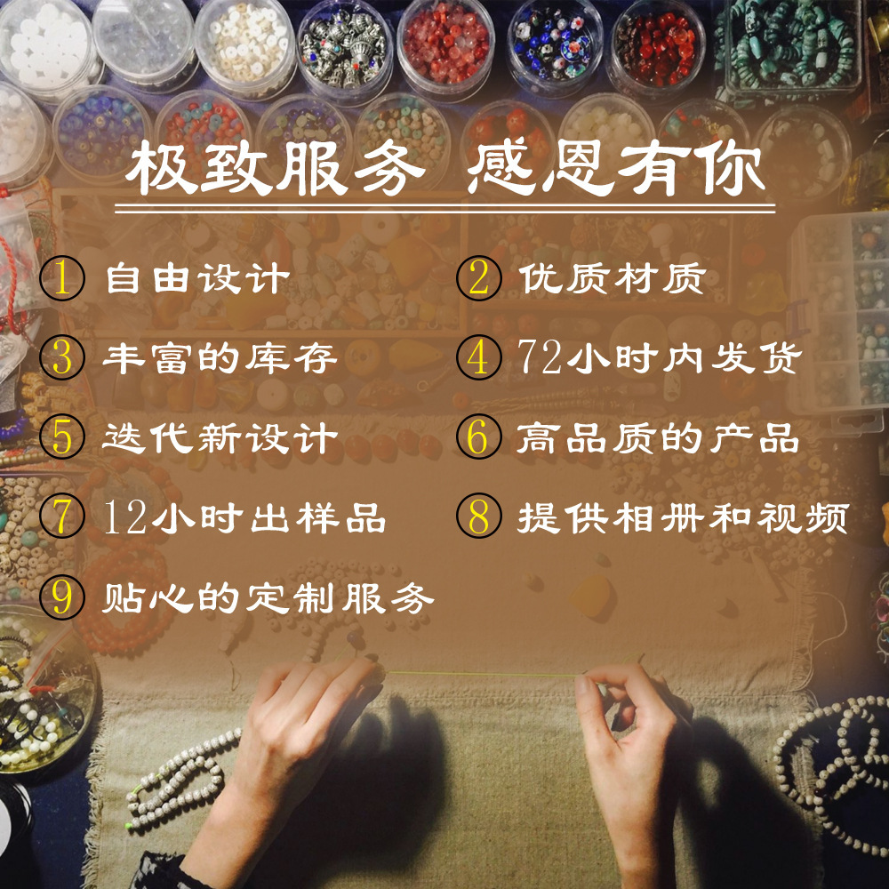| 材料 | 合金/玻璃/不鏽鋼/珍珠/玻璃/瑪瑙/黃虎眼石/帝皇石/水晶/軟陶/紅繩/鍍金 |