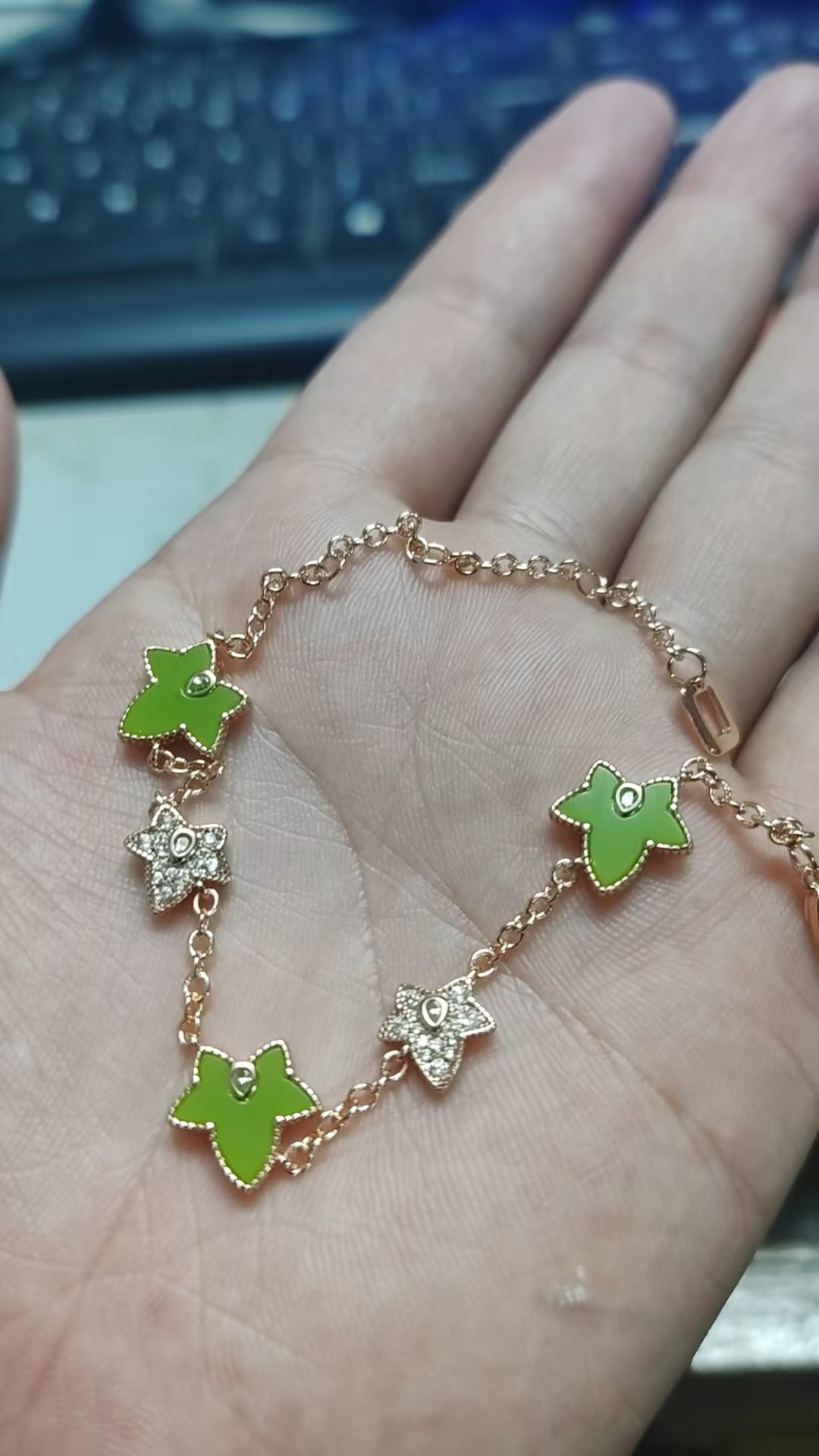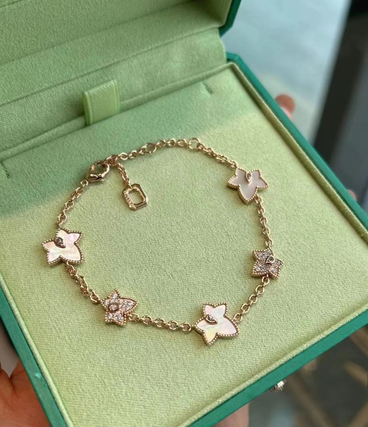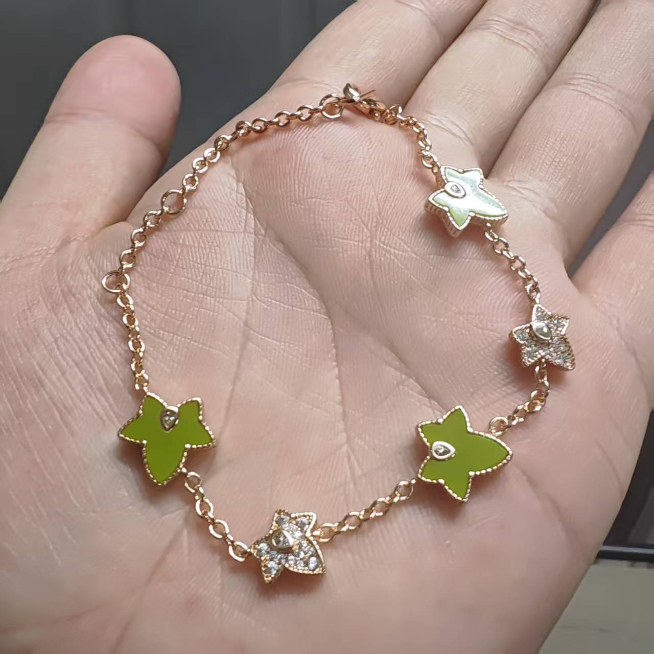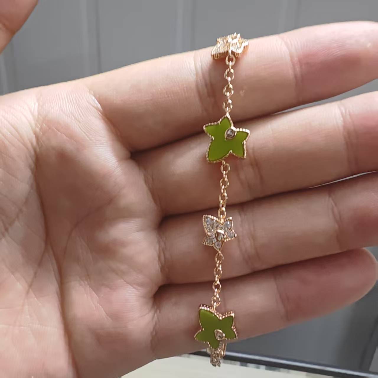 LOLA五角星手鏈女時尚百搭輕奢鑲鑽鍍18k金綠瑪瑙白貝手飾批
