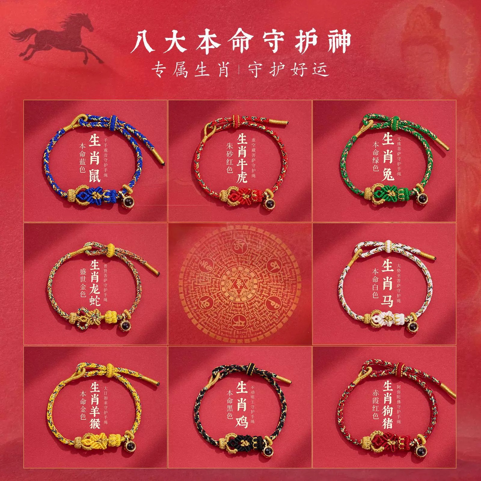 2026馬年微雕投影八大守護神手工編織本命年十二生肖紅繩手繩手鏈