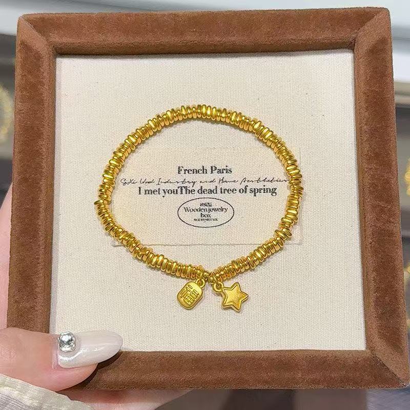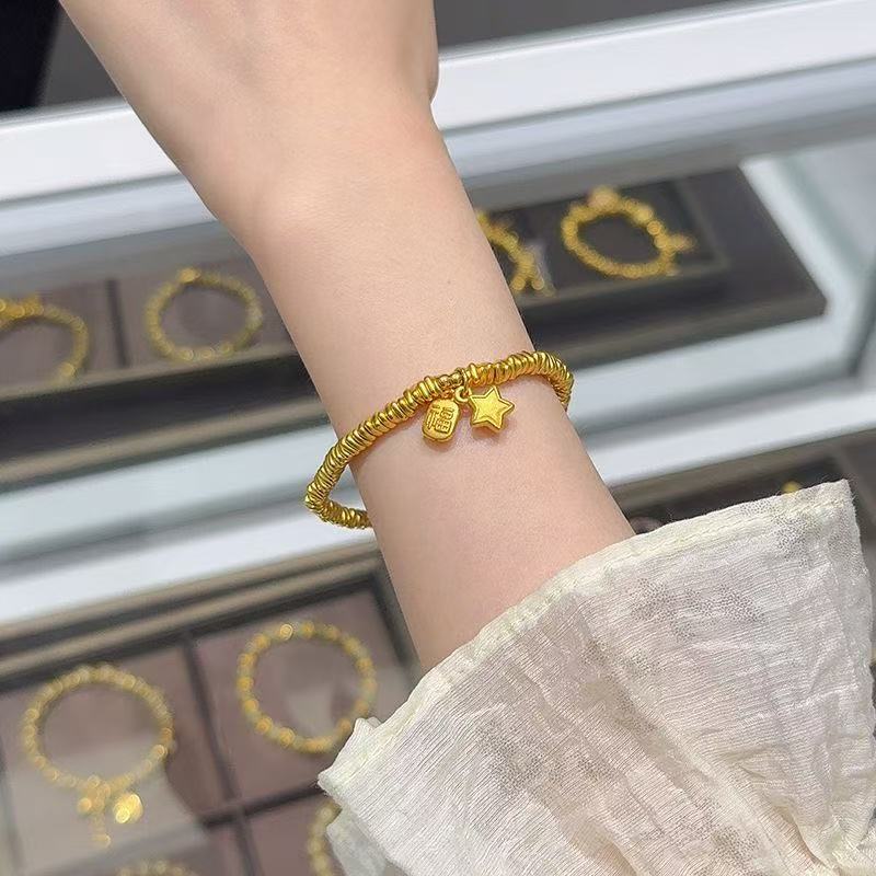 小紅書同款復古金色納福星星盤纏手鏈女新中式碎銀幾兩簡約手串批