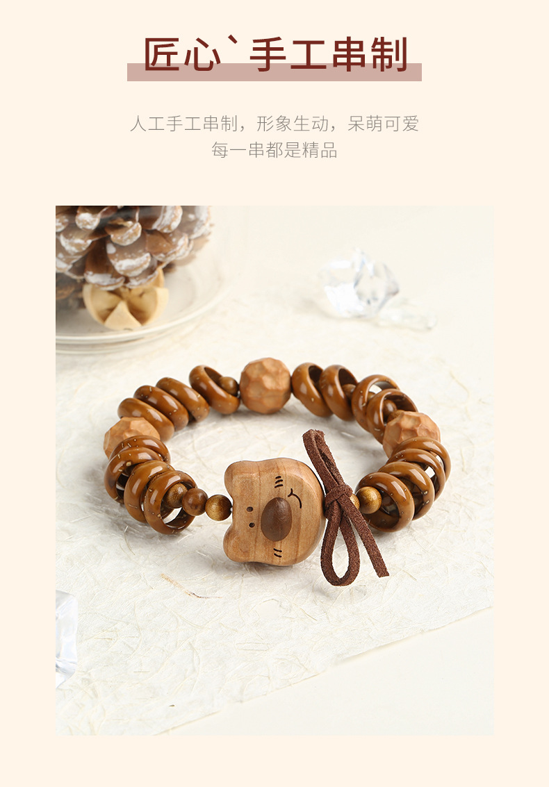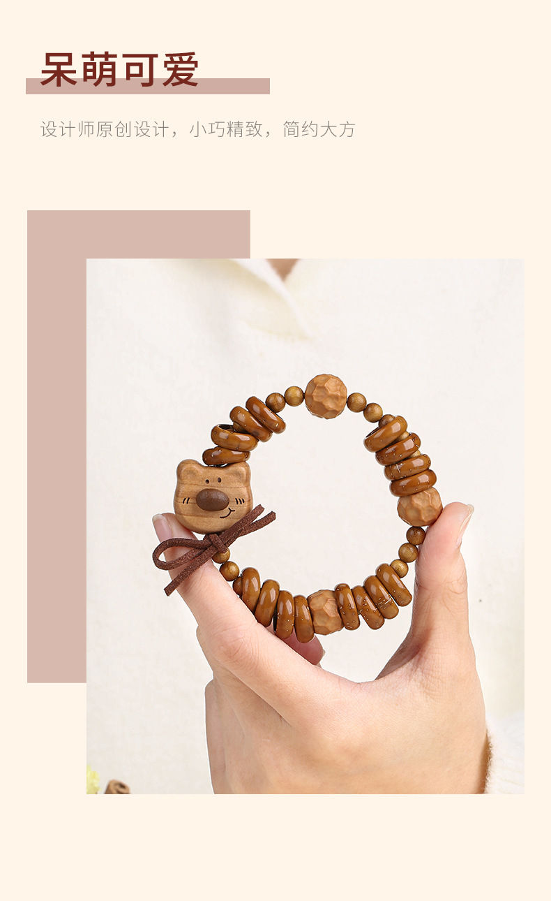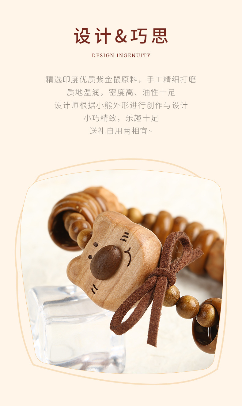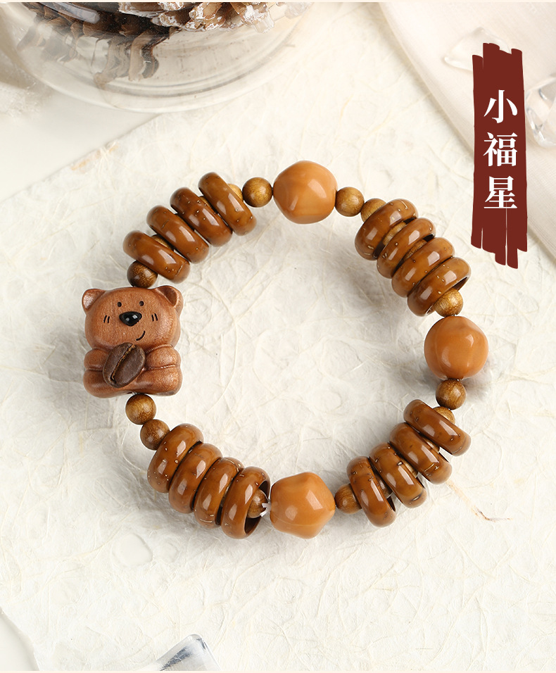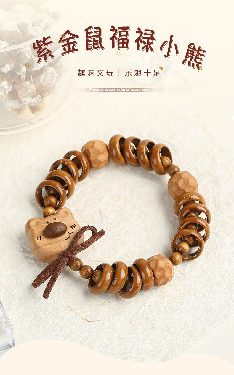 天然紫金鼠手串福祿小熊木珠手鏈女款文玩可愛萌系飾品盤玩手串