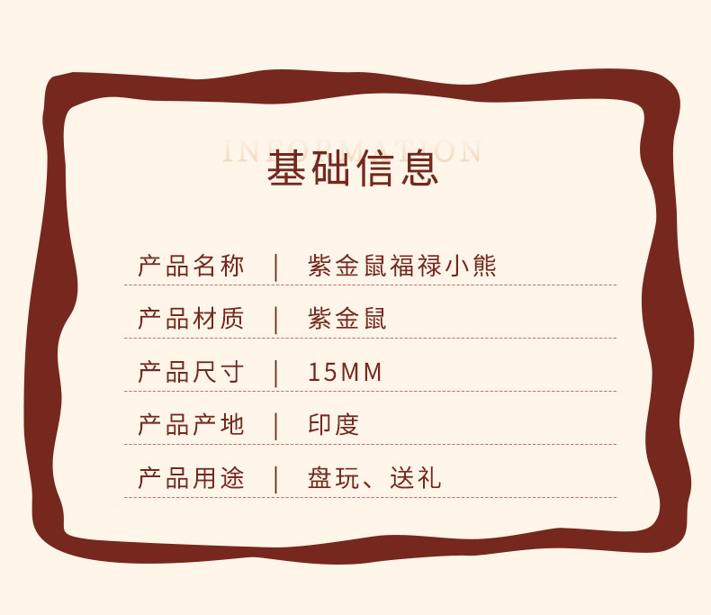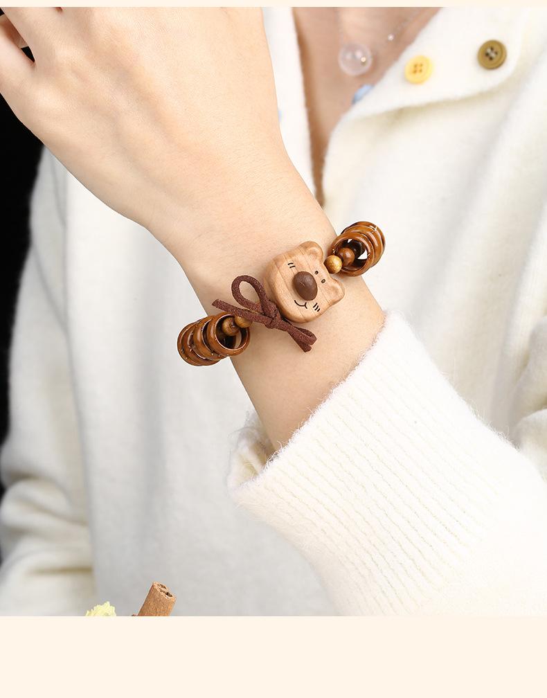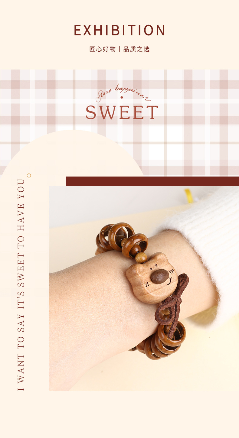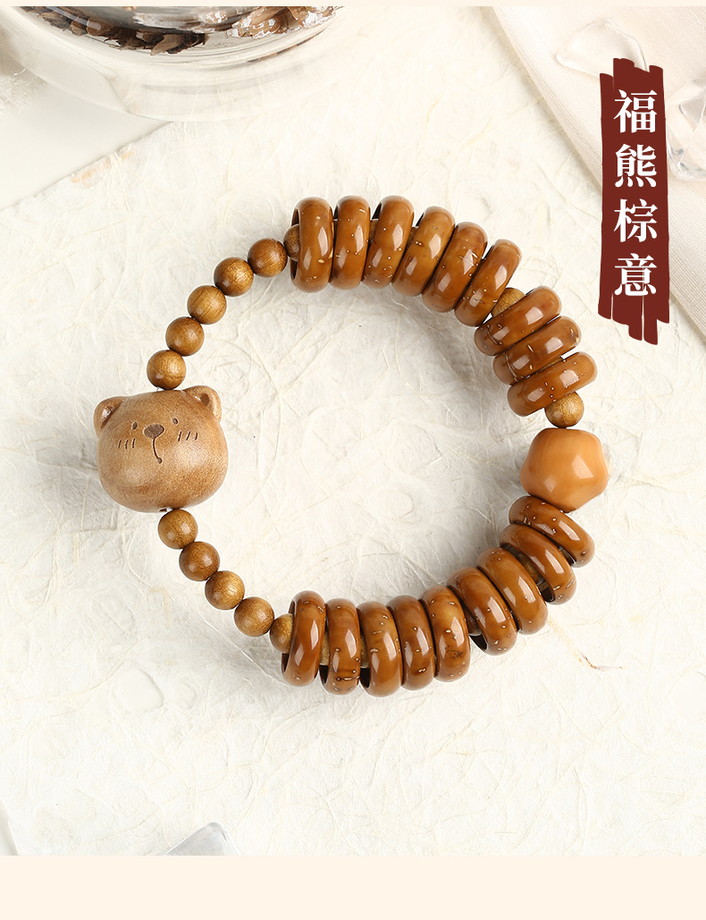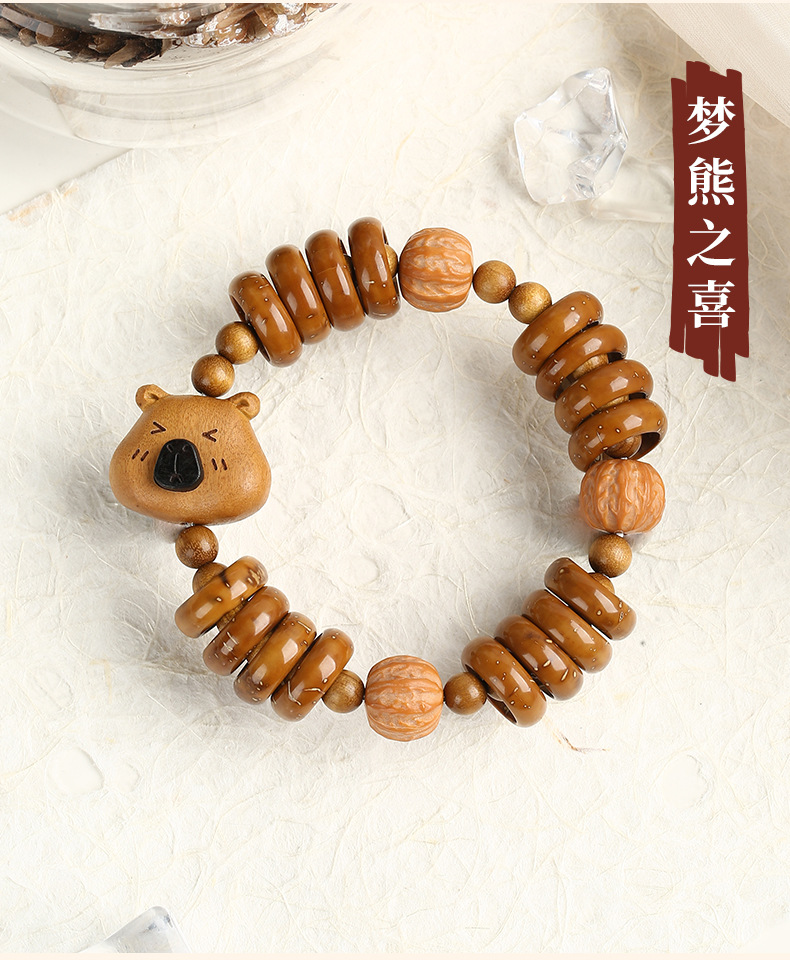 天然紫金鼠手串福祿小熊木珠手鏈女款文玩可愛萌系飾品盤玩手串