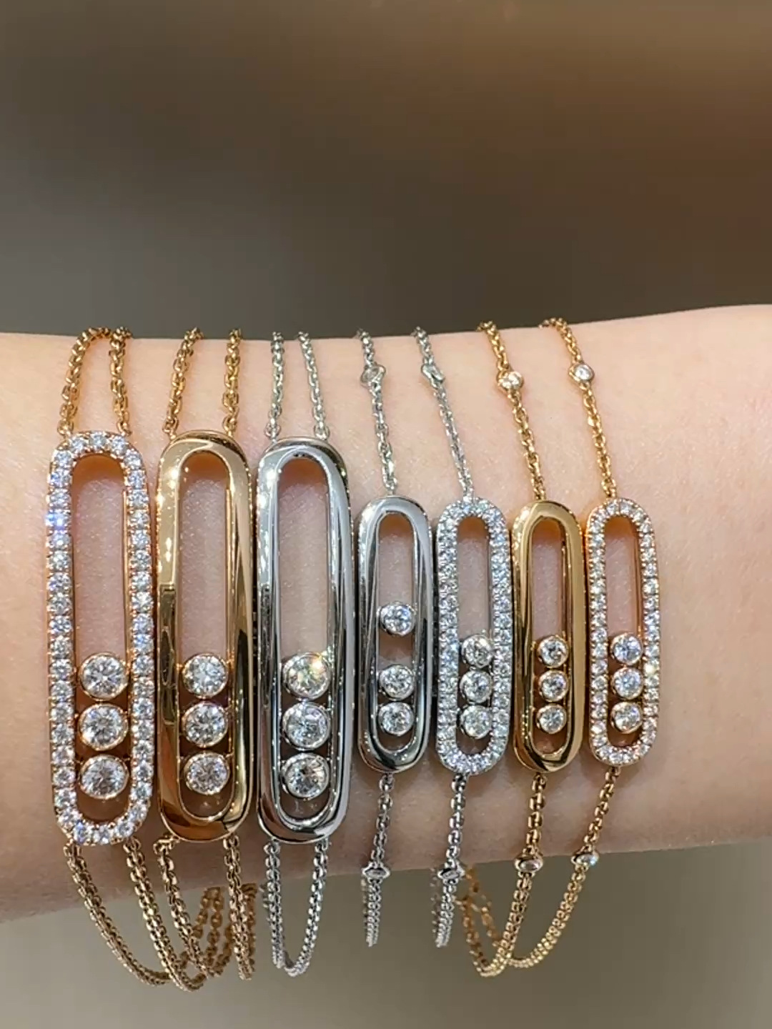 2025梅家滿鑽光面三鑽滑動大牌手鏈雙層設計玫瑰金白金高級感首飾