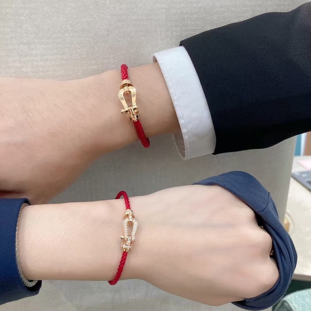 Force費雷德馬蹄釦紅繩滿鑽手鐲手環鋼絲手鏈男女款本命年18K玫瑰