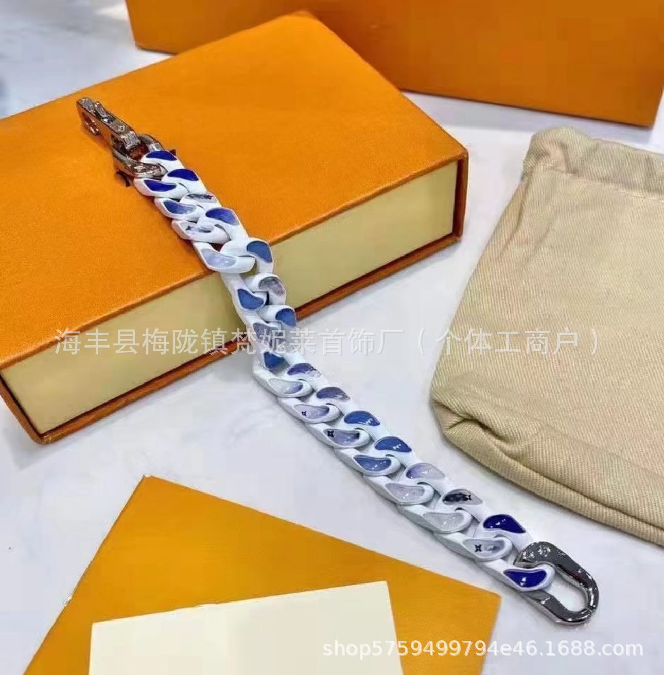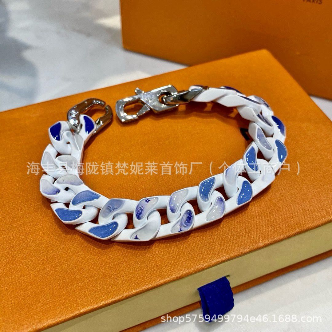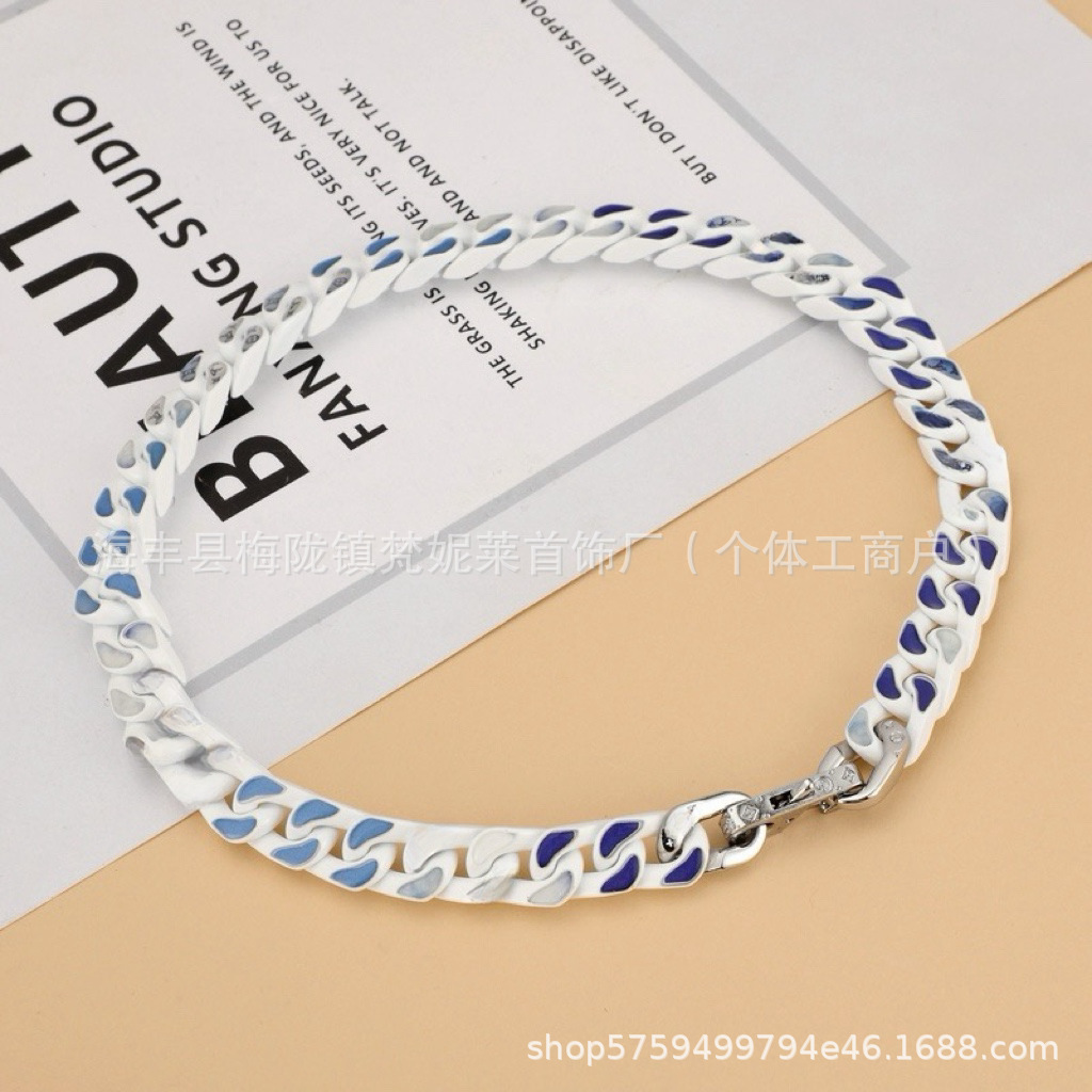驢家藍天白雲古巴手鏈烤漆不鏽鋼不掉色歐美風小衆設計感鈦鋼項鍊