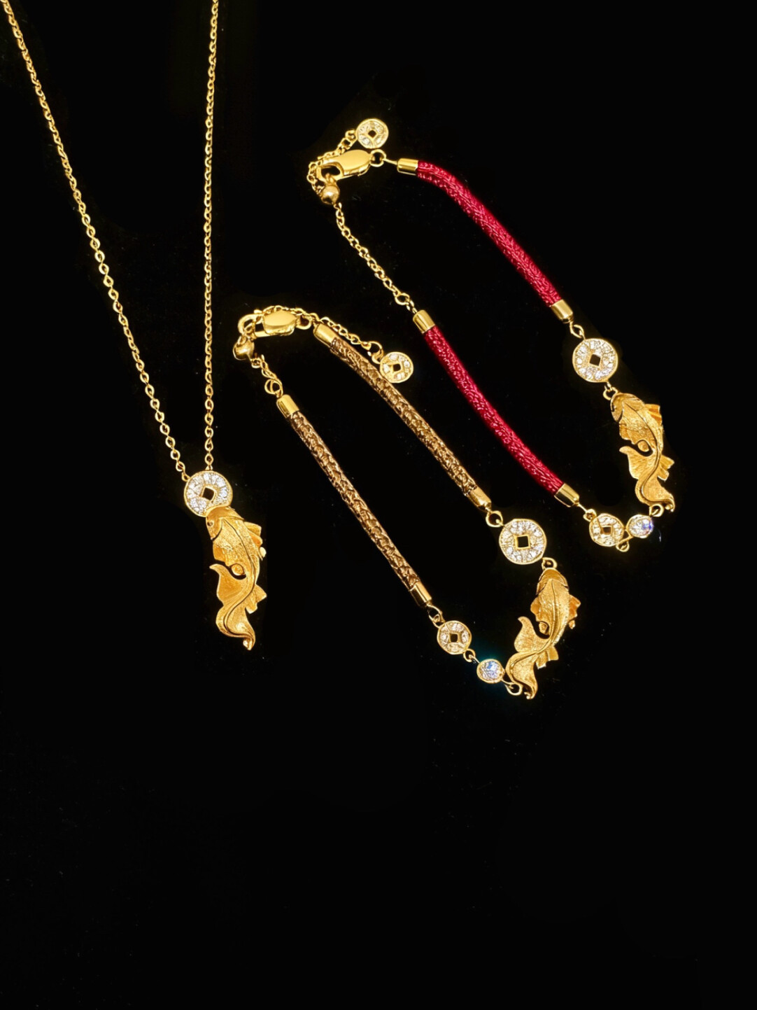 小紅書爆款吞金小錦鯉手鏈項鍊套裝女中古風復古小衆設計