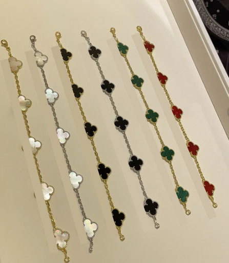 高版手飾四葉草五花手鏈女鍍18k金玫瑰金對版不掉色首飾品