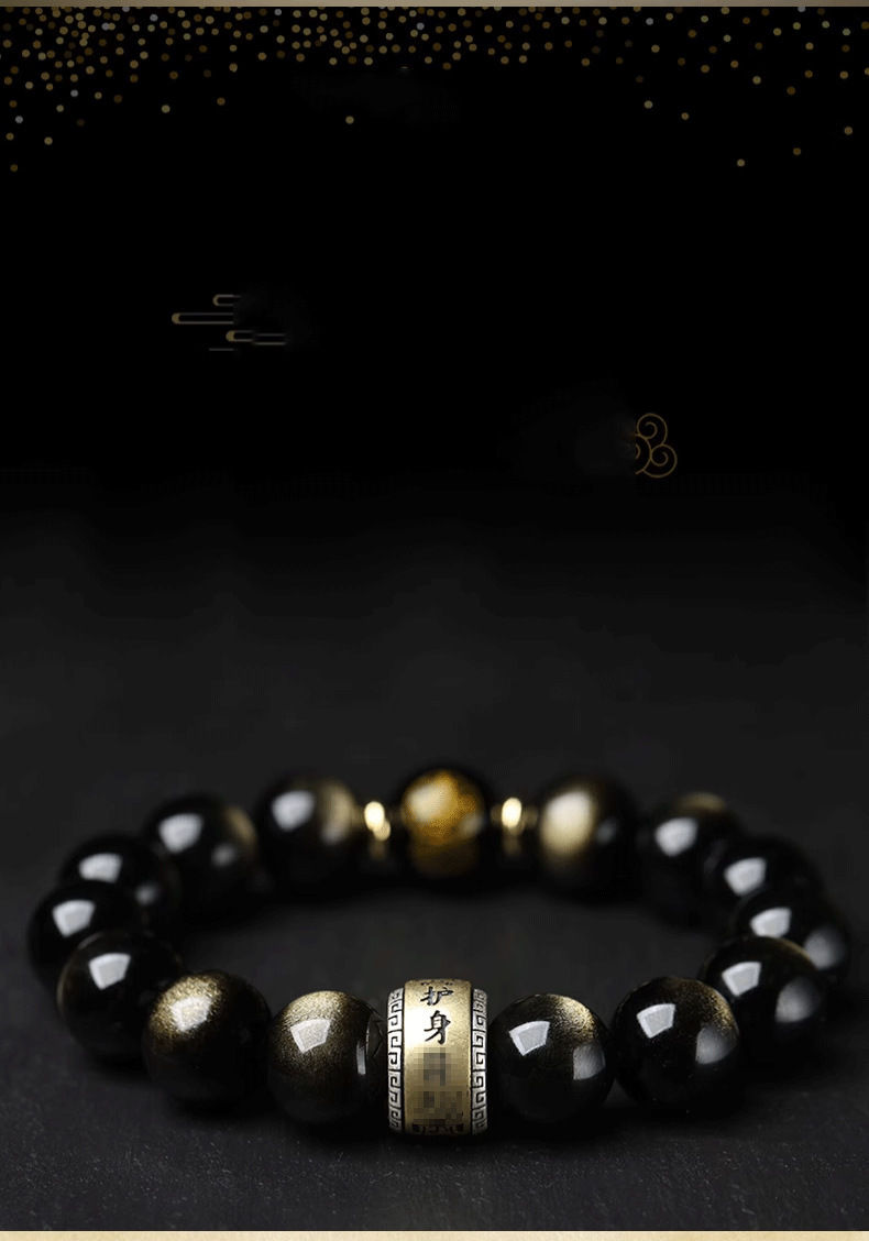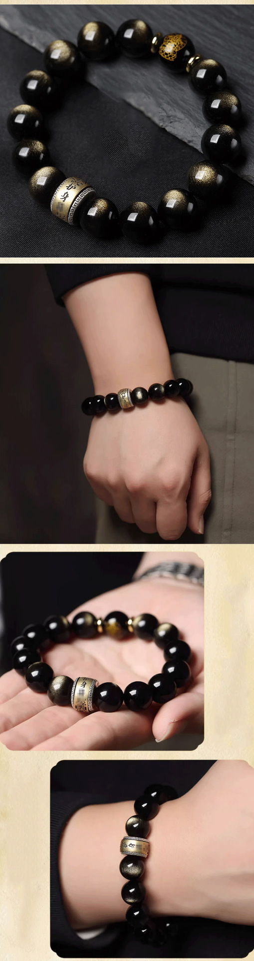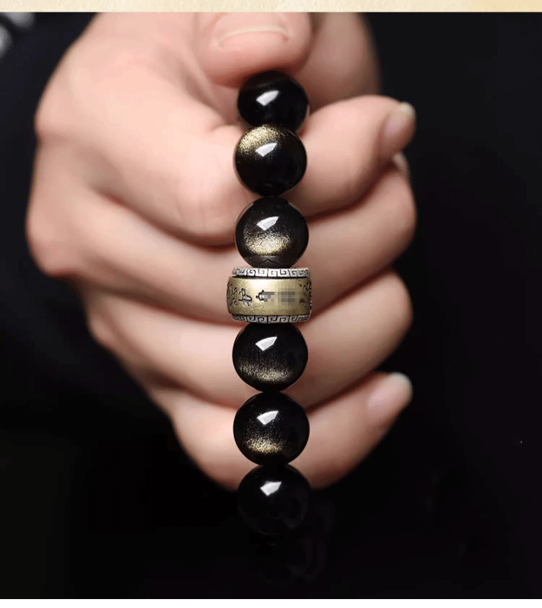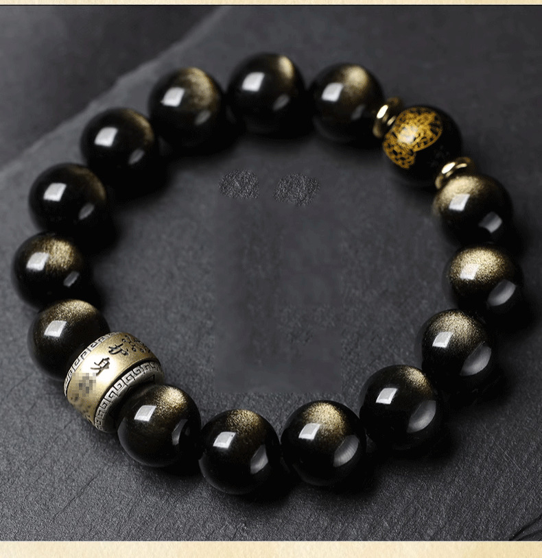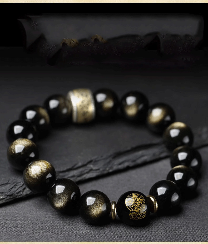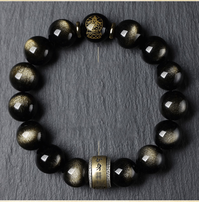 天然黑曜石本命彿手鏈男女款十二生肖彿珠本命年創意金曜石手串