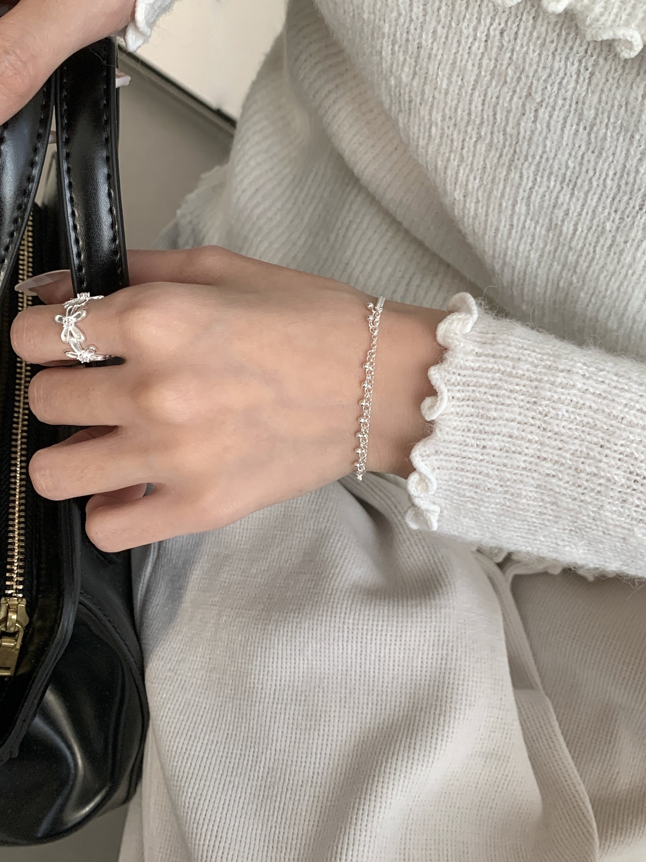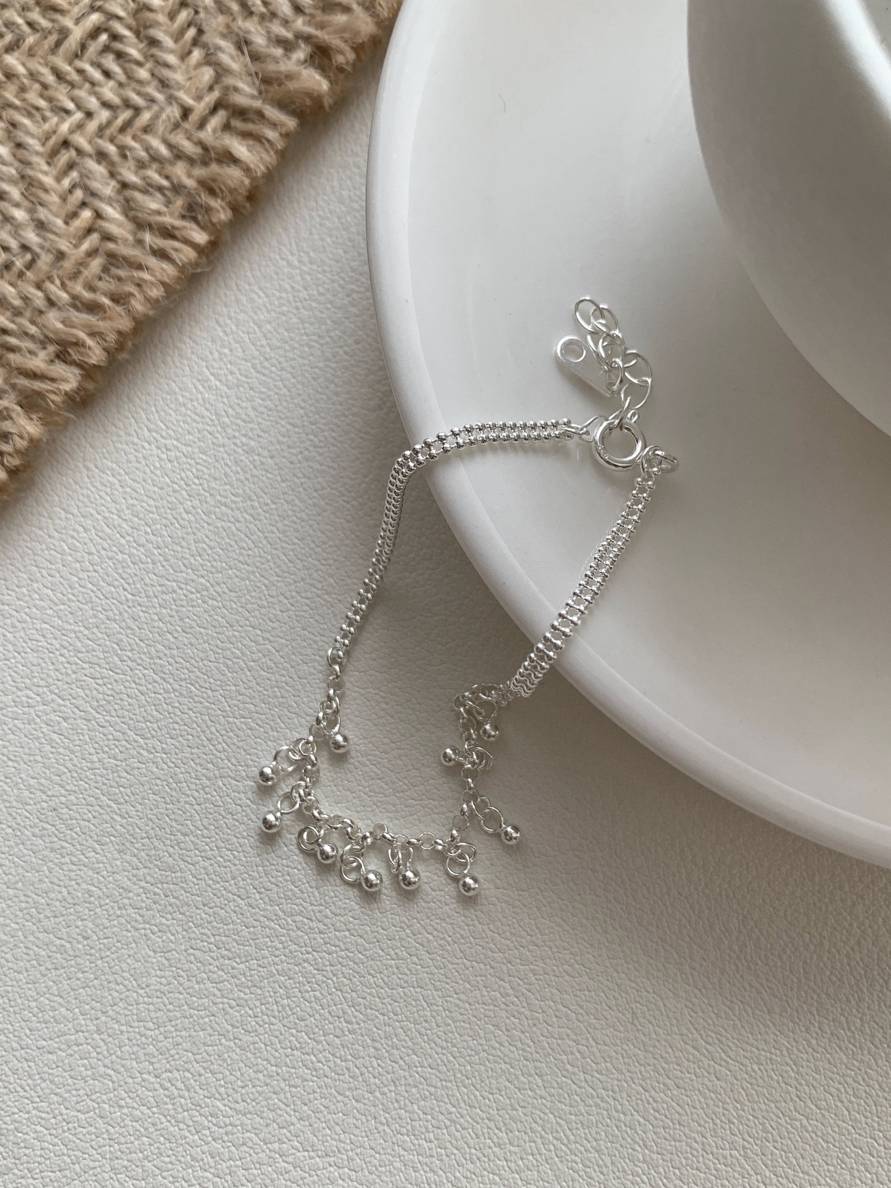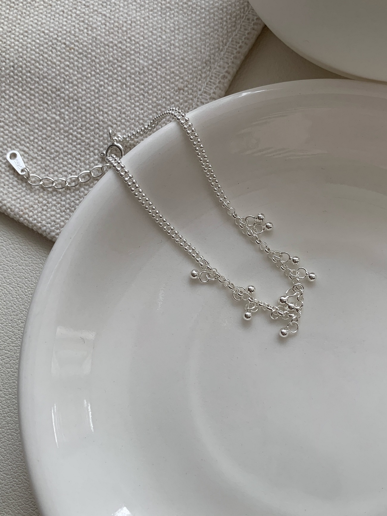 韓國潮流s925純銀圓珠手鏈女韓版銀飾簡約珠珠手飾ins風百搭