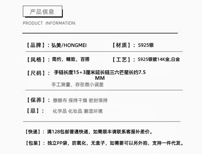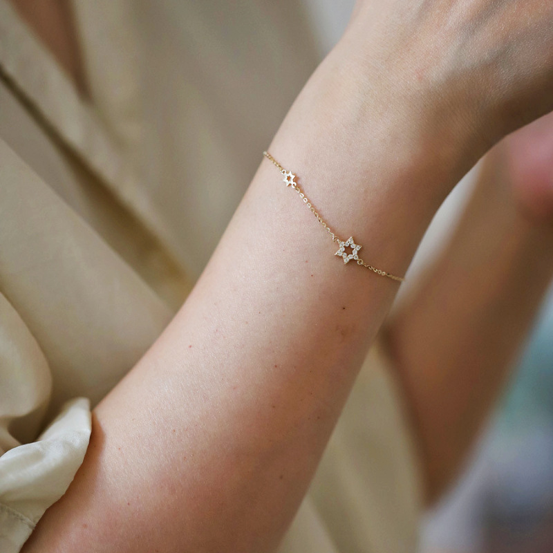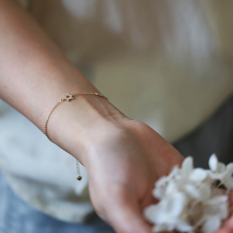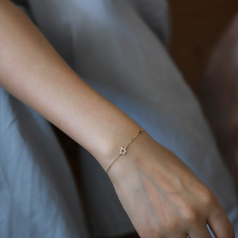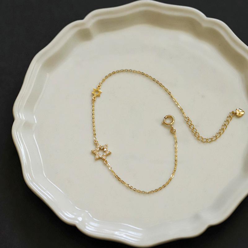 S925純銀鍍14K金手鏈女 經典六芒星ins風小衆簡約百搭日韓手飾品