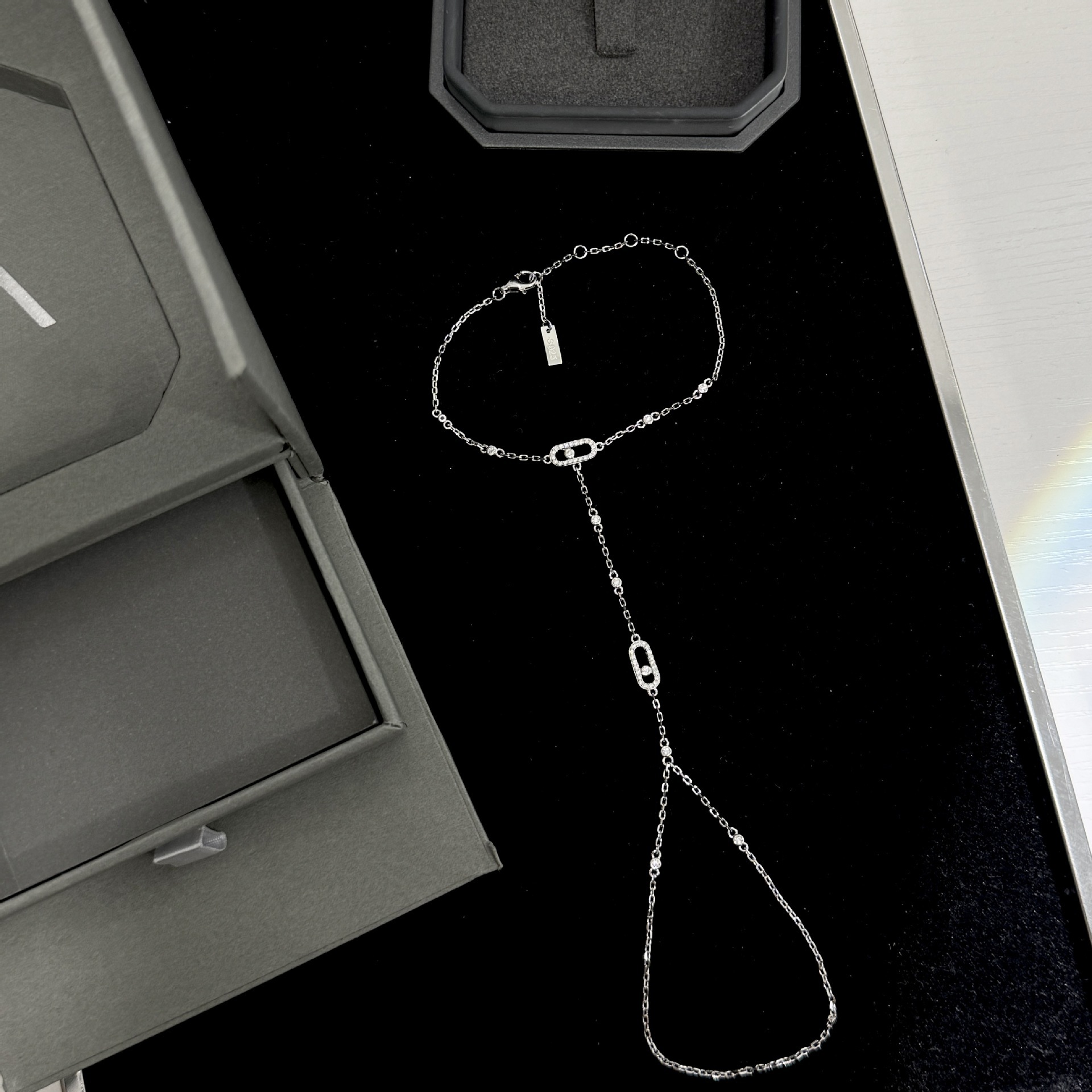 飾品精緻微鑲鑽連指手背鏈幾何輕奢ins風時尚可滑動套鏈