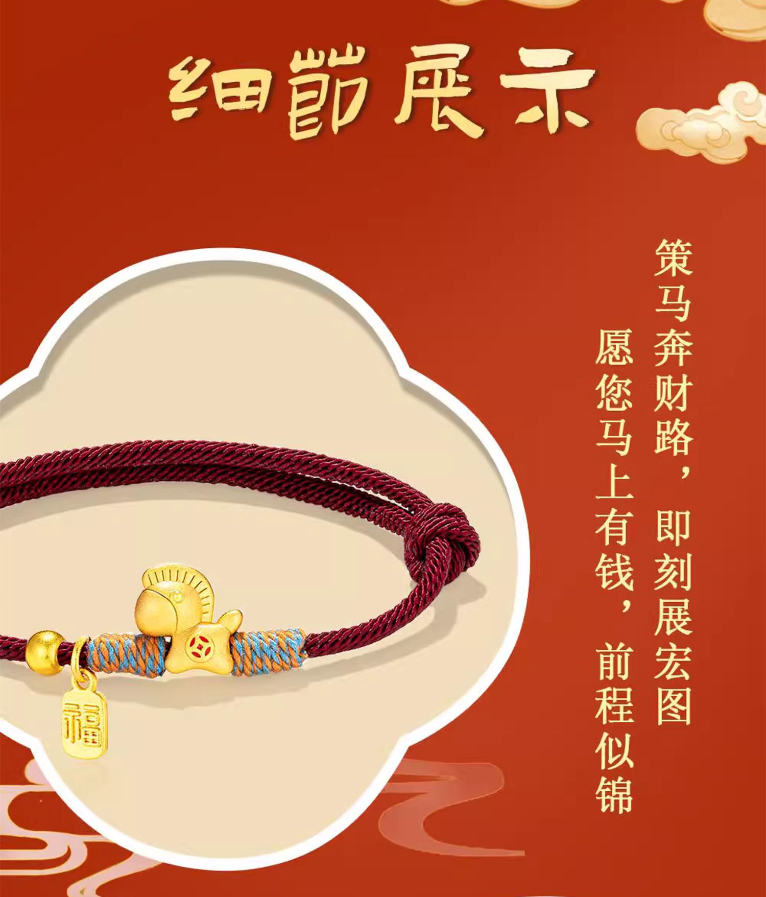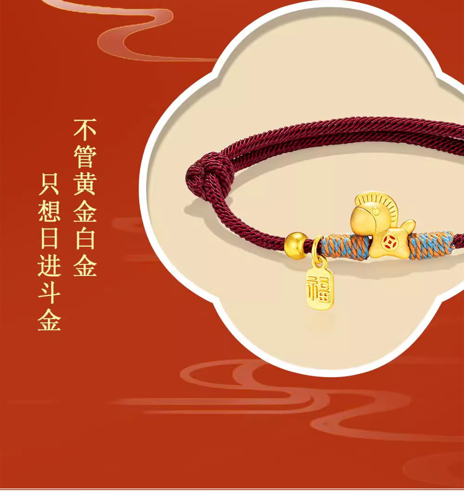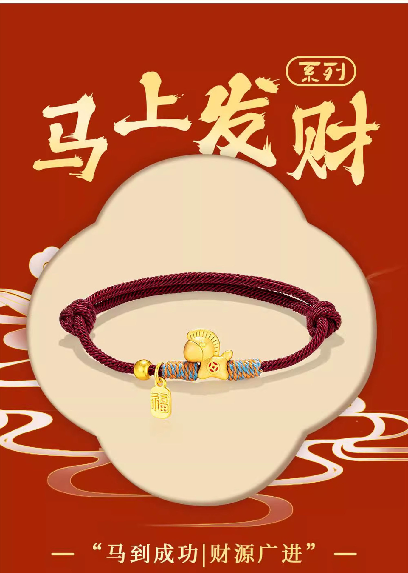好運馬上有錢手繩金色小馬手鏈馬年本命年紅繩閨蜜手鏈女新年禮物