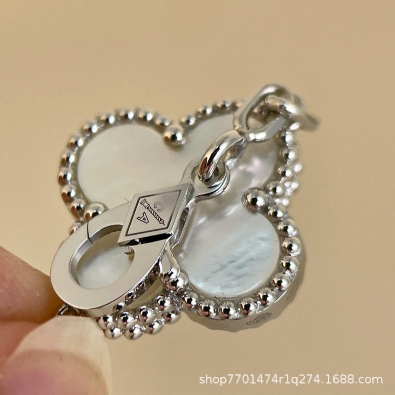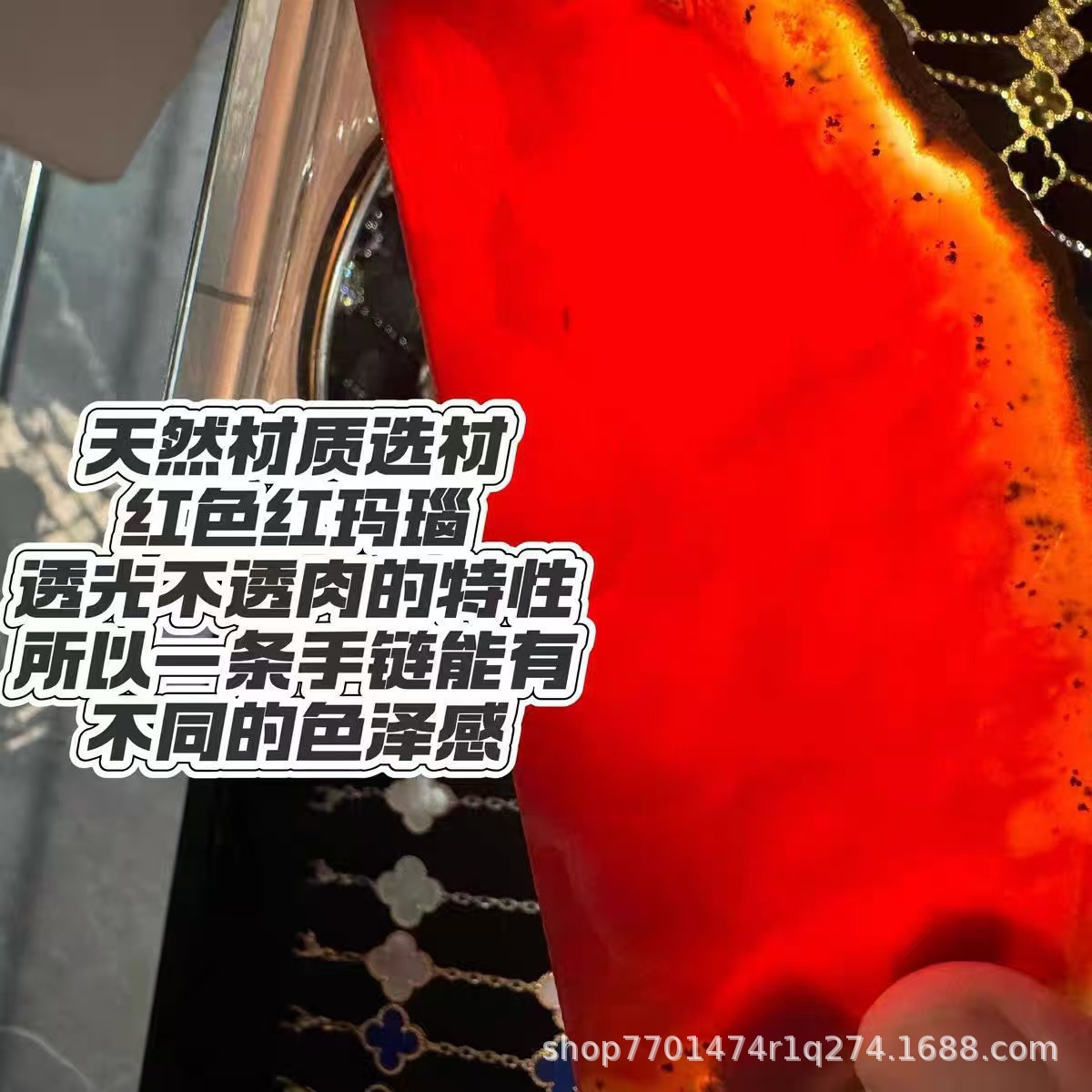純銀四葉草五花手鏈瘦花天然瑪瑙紫玉髓厚鍍18K玫瑰金幸運草手鏈