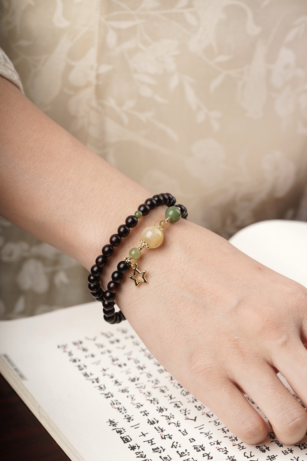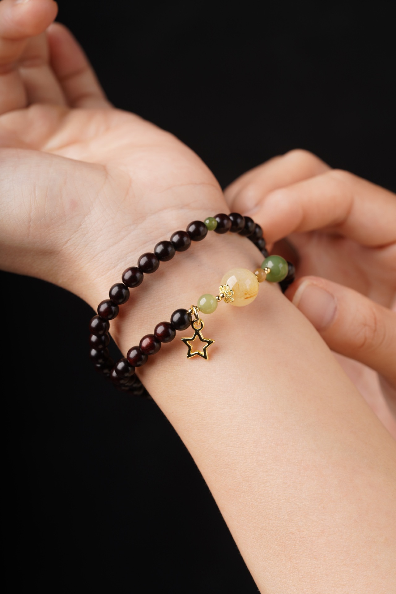 | 顔色 | 小葉紫檀0.6雙圈(和田玉+黃髮晶款) |