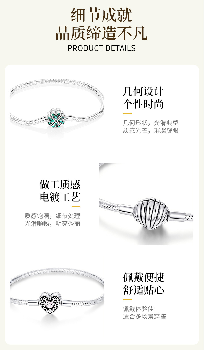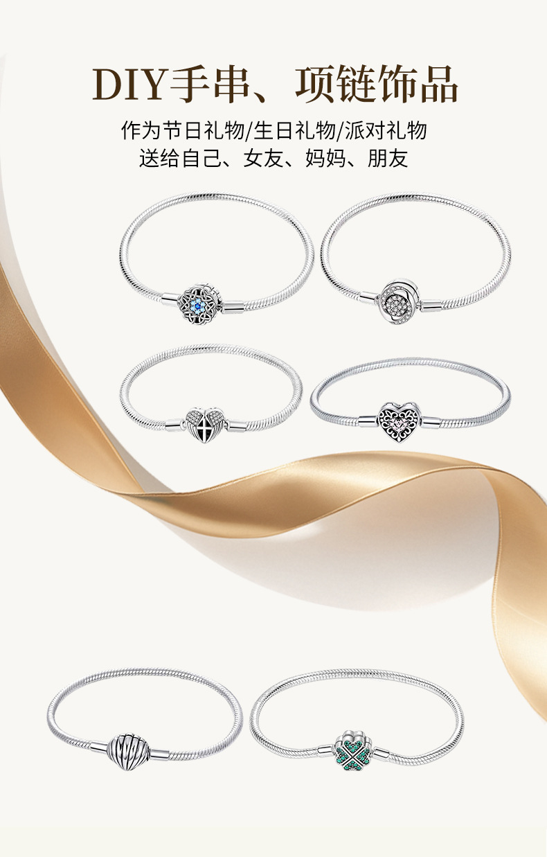 歐美鍍925銀編織愛心基礎手鏈時尚簡約蛇骨手鏈DIY串珠手工製