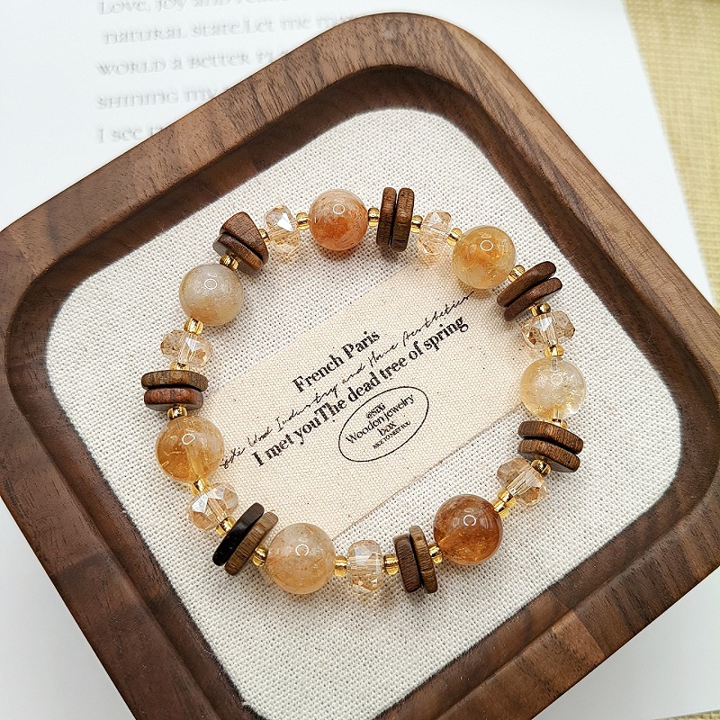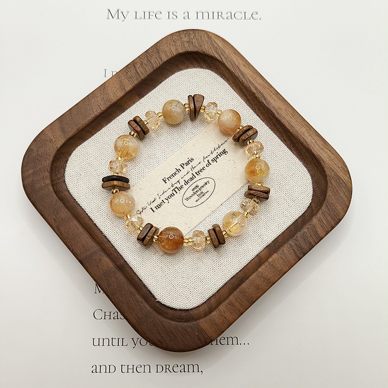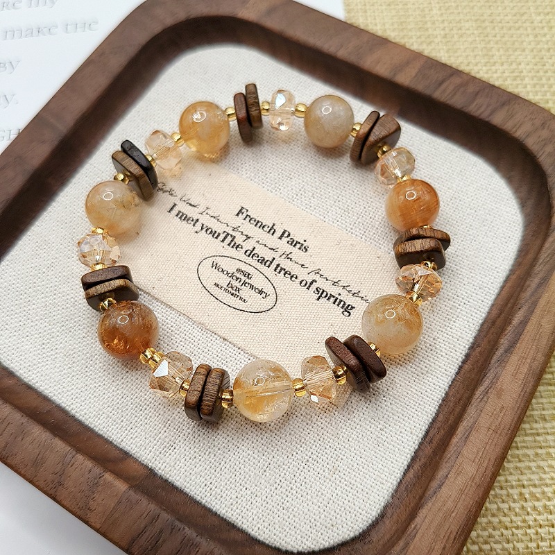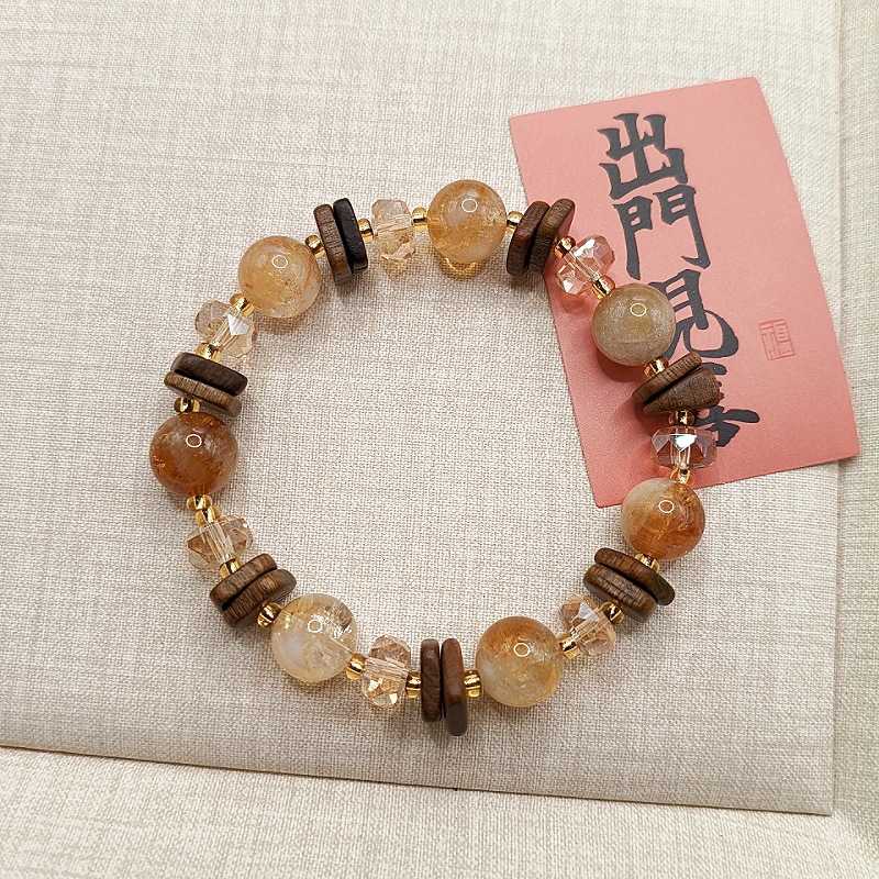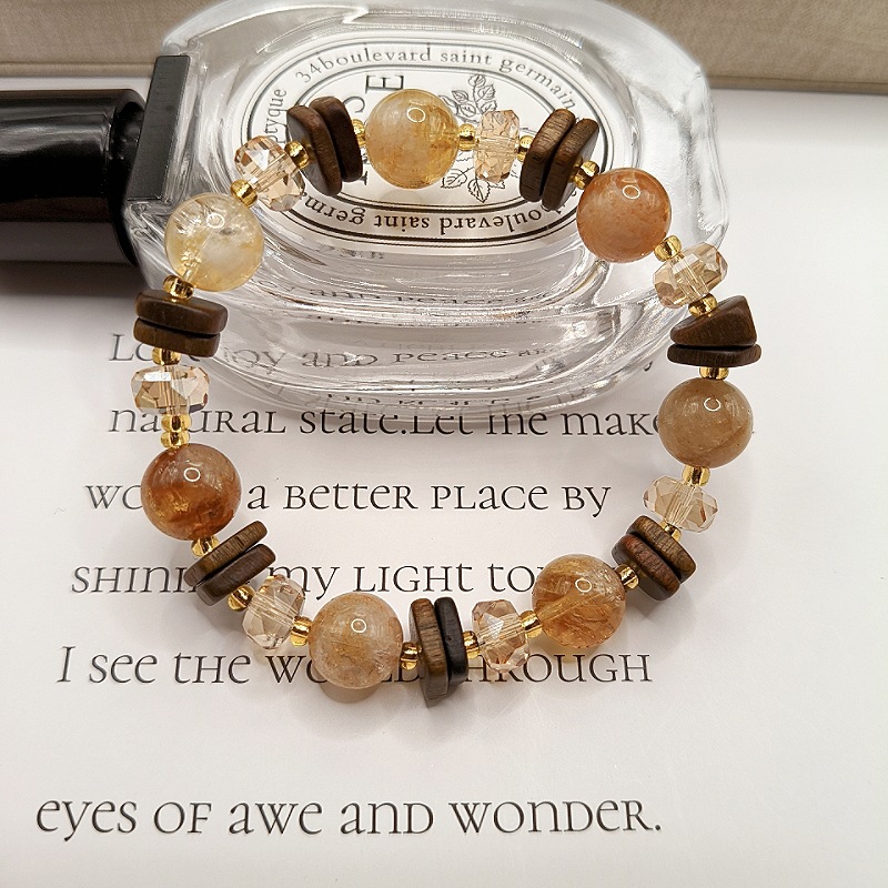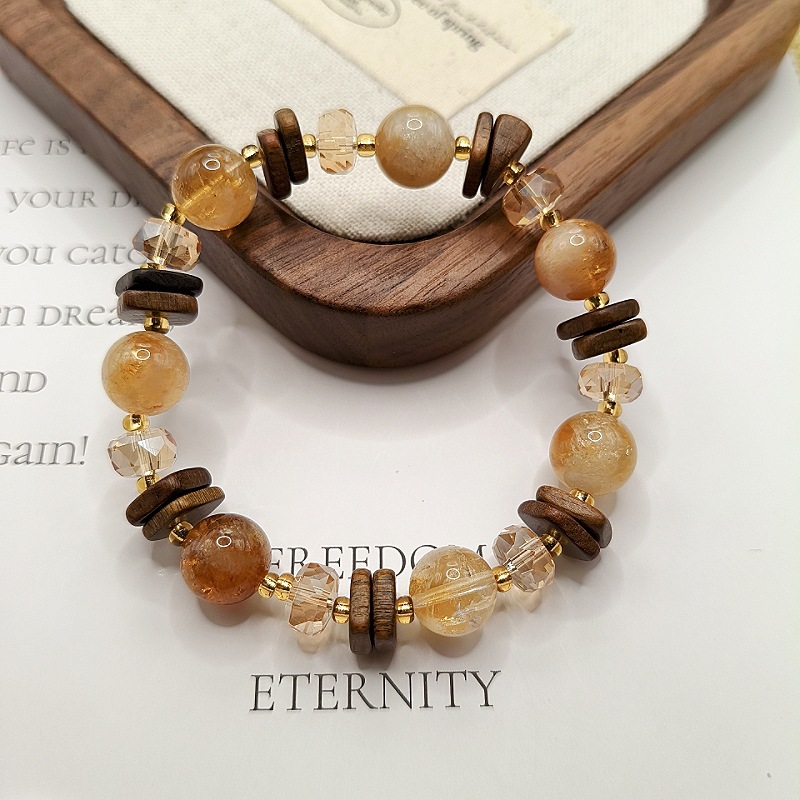 原創天然黃塔晶黃水晶手鏈小衆設計復古檀木手鏈高級感水晶手飾女
