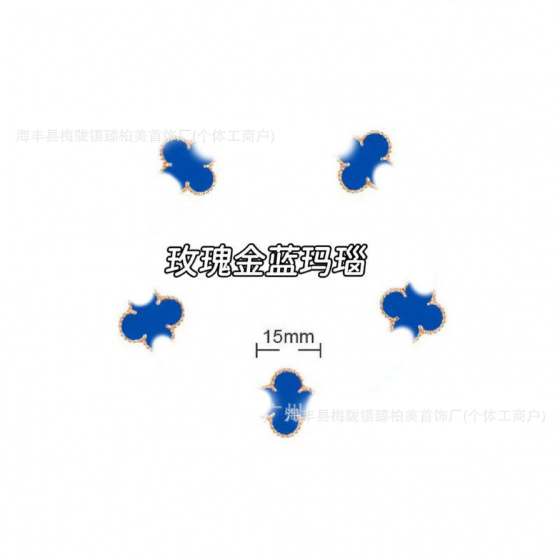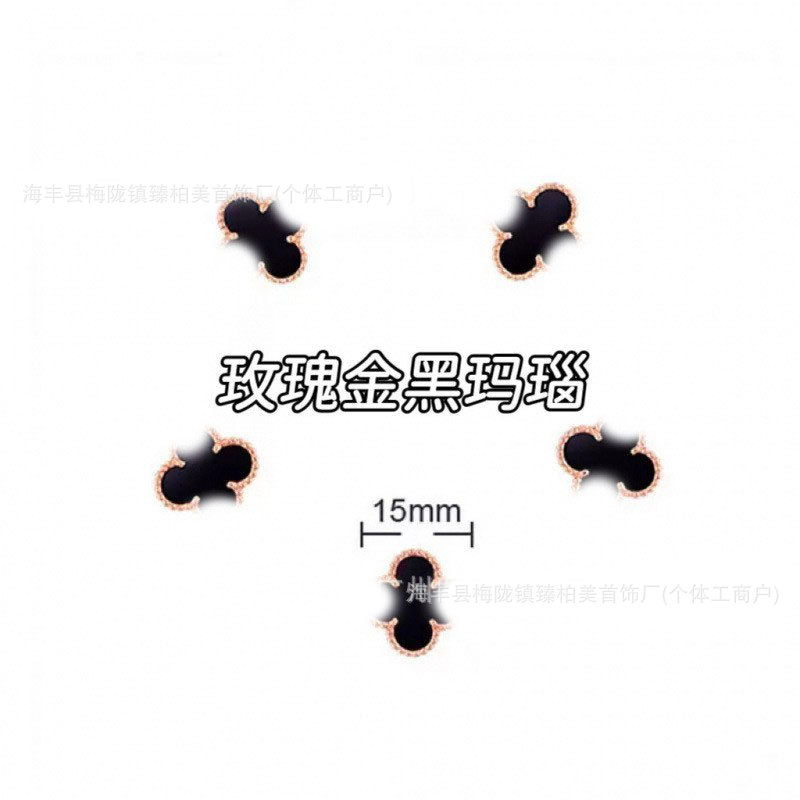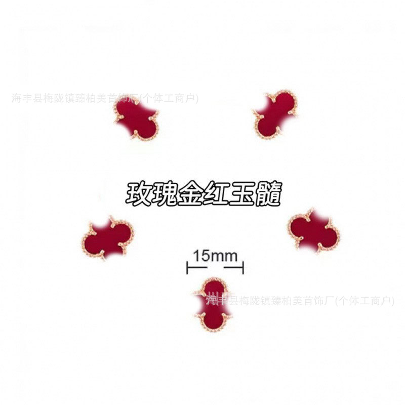 高版V金梅隴四葉草五花手鏈痩花高貨紅玉髓白貝母鍍18K玫瑰金輕奢