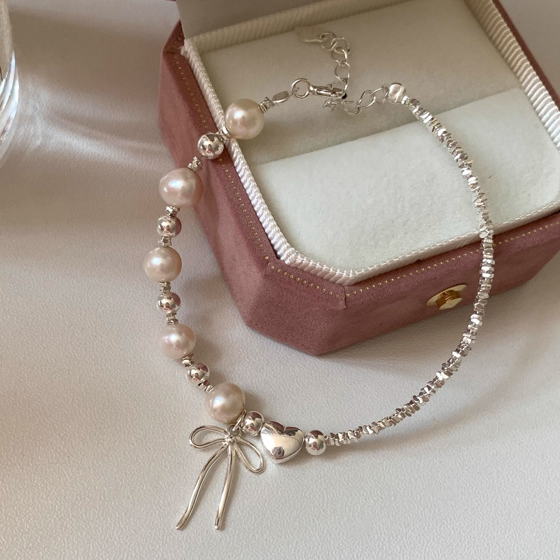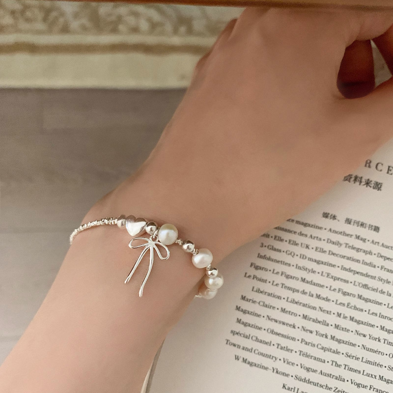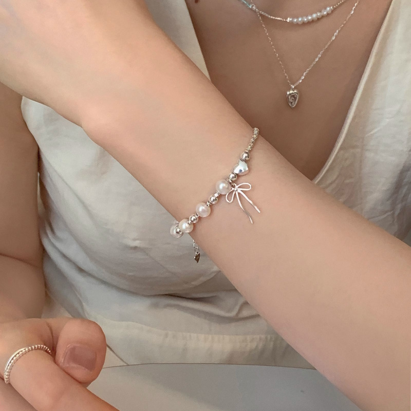 韓版蝴蝶結愛心珍珠碎銀手鏈女簡約冷淡風輕奢小衆精緻百搭高級感