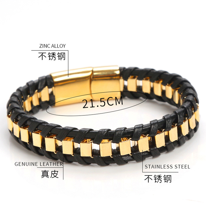 歐美個性不鏽鋼編織皮革手鏈 復古龐克鏈條男士手環 個性百搭首飾