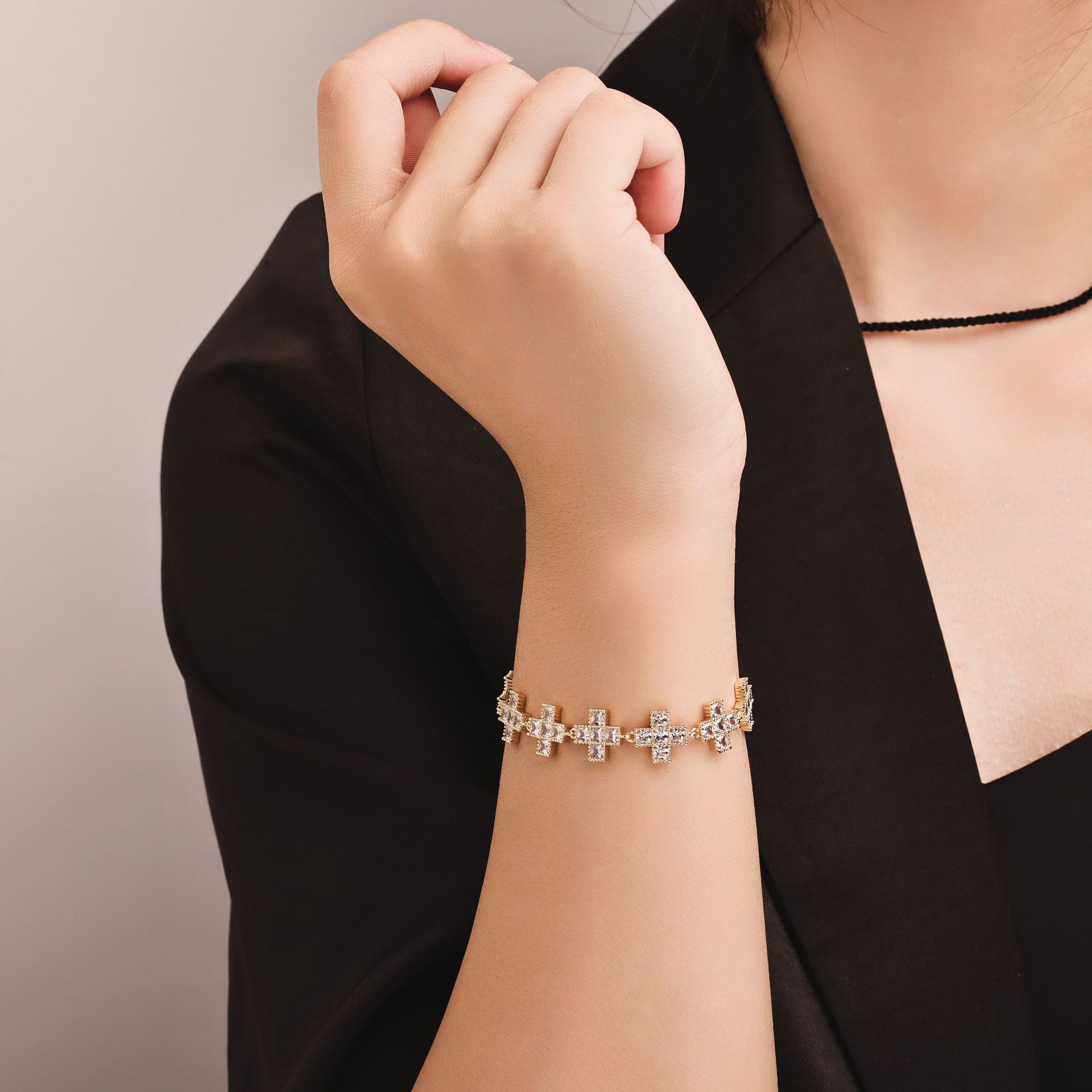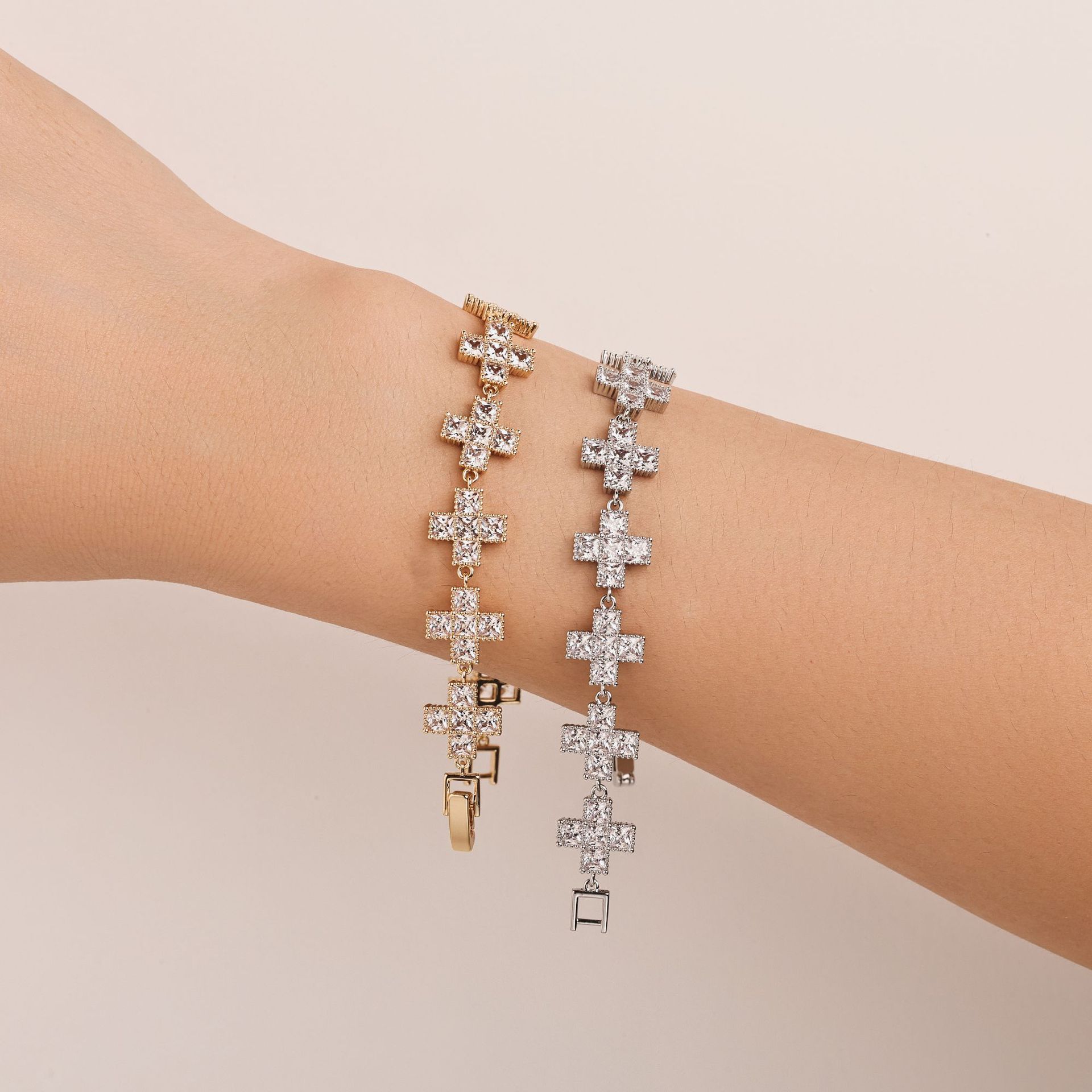 歐美十字架手鏈不掉色女夏季滿鋯手環日韓流行仙女閨蜜手飾品
