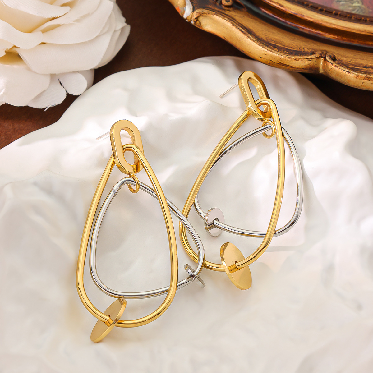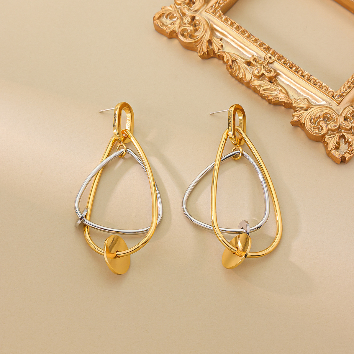 925銀針誇張不規則幾何個性獨特設計氣質雙色時尚簡約高級感耳飾