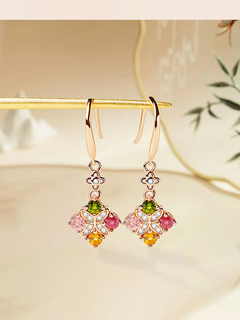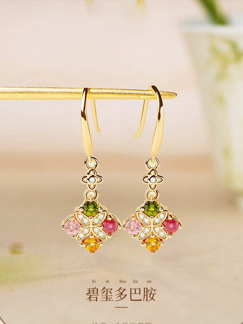 碧璽多巴胺耳釘女925純銀小衆設計感耳環小紅書爆款歐美耳飾