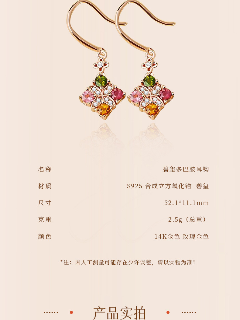 | 顔色 | 碧璽多巴胺耳鉤14K |