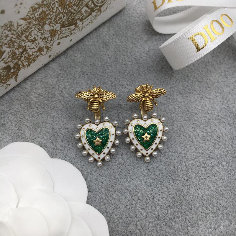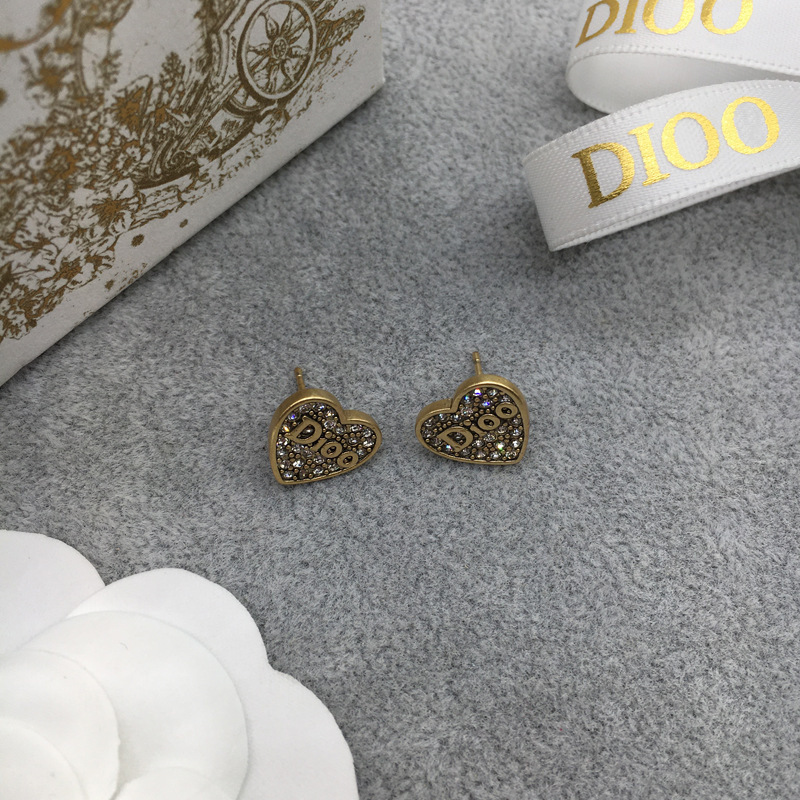 D家/迪家cd耳釘女ins復古 復古輕奢高級感愛心耳釘925銀針