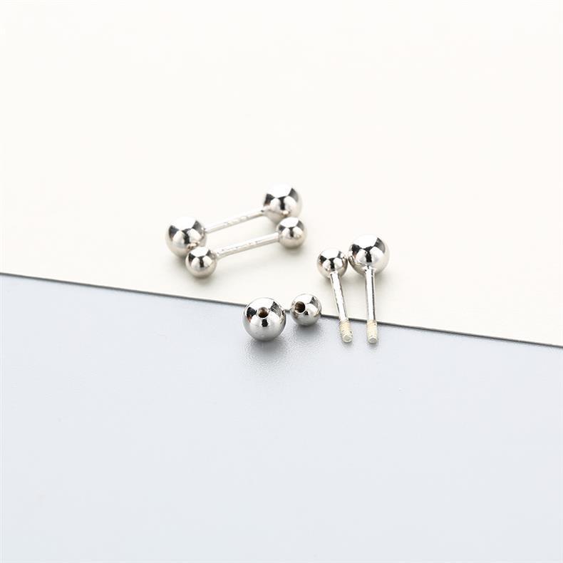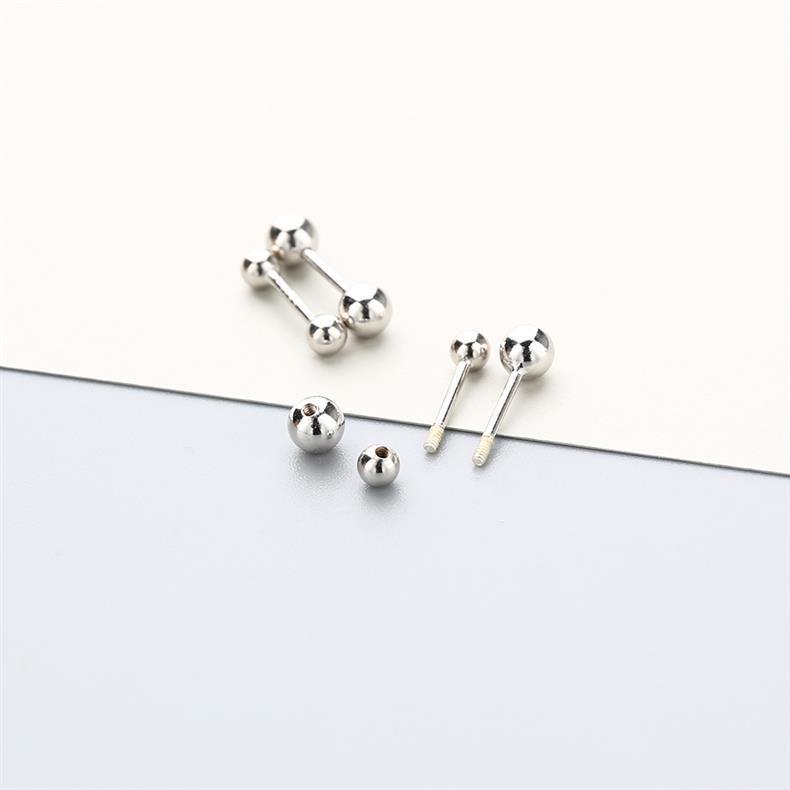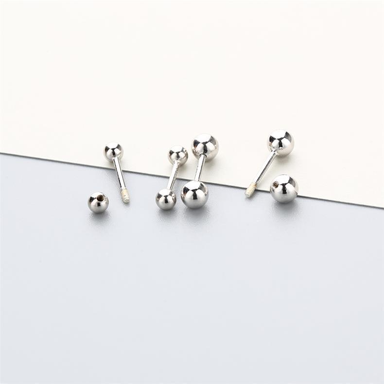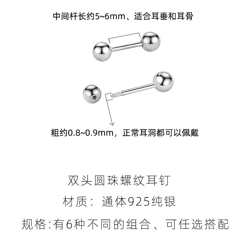 睡覺不用摘925純銀螺絲耳釘女 養耳洞雙頭擰釦耳骨釘銀豆豆耳環