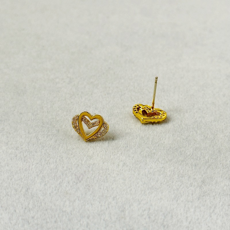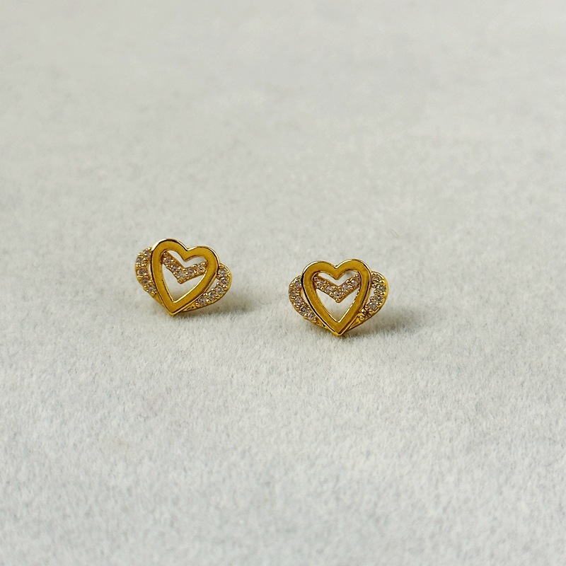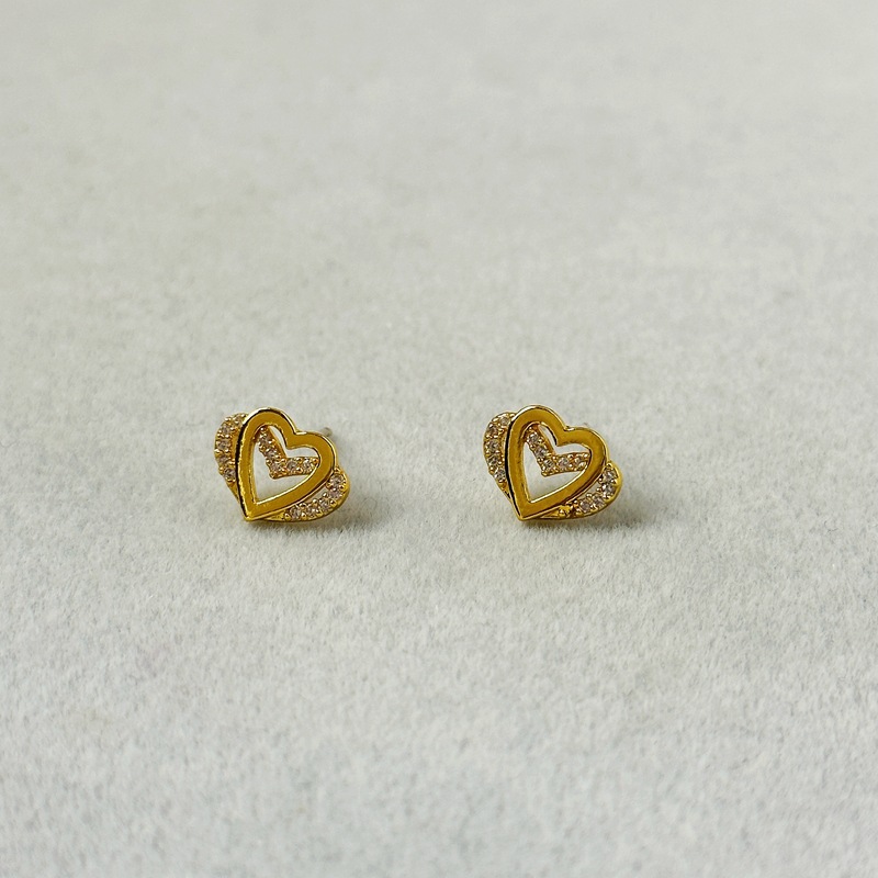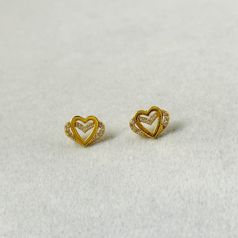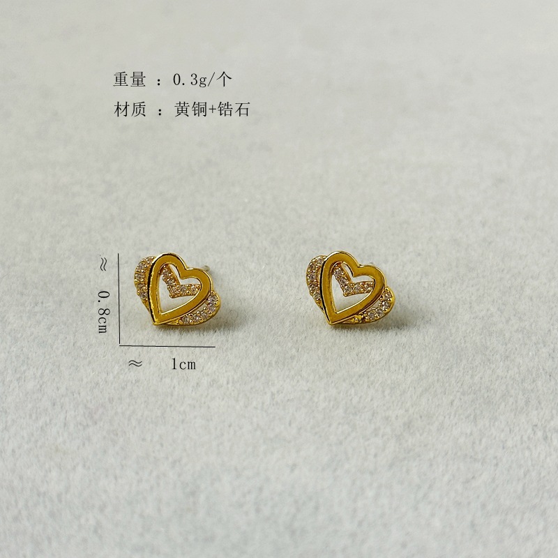 新款簡約雙層愛心微鑲鋯石小衆時尚迷你輕奢925銀針耳飾