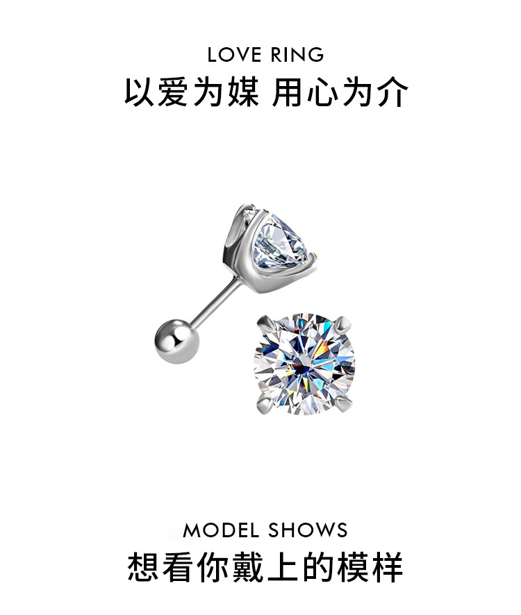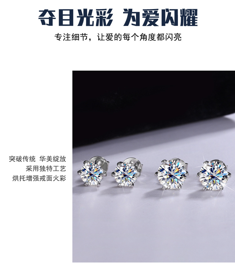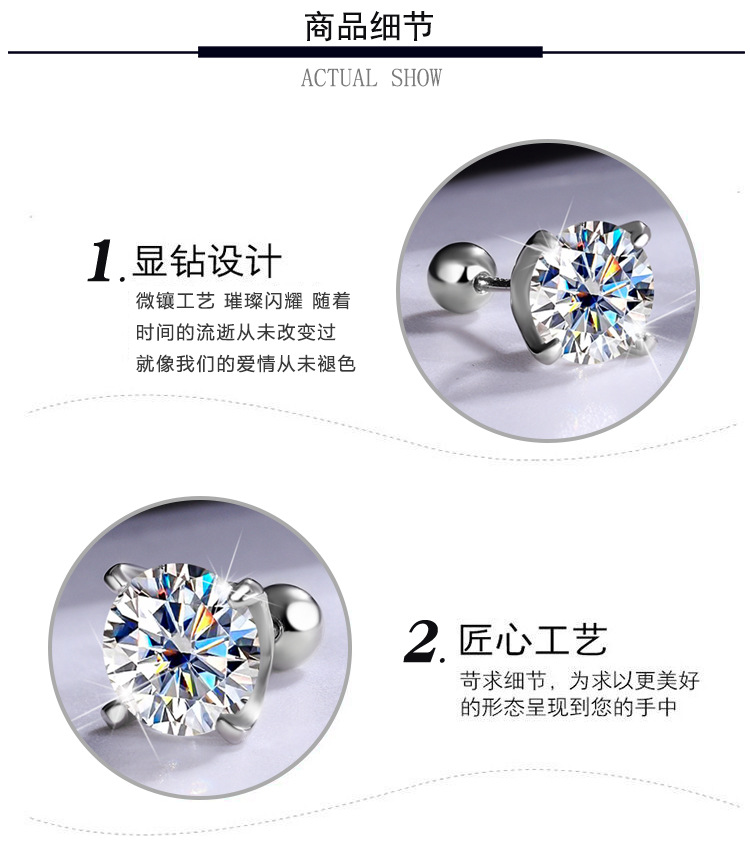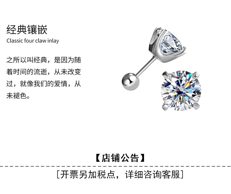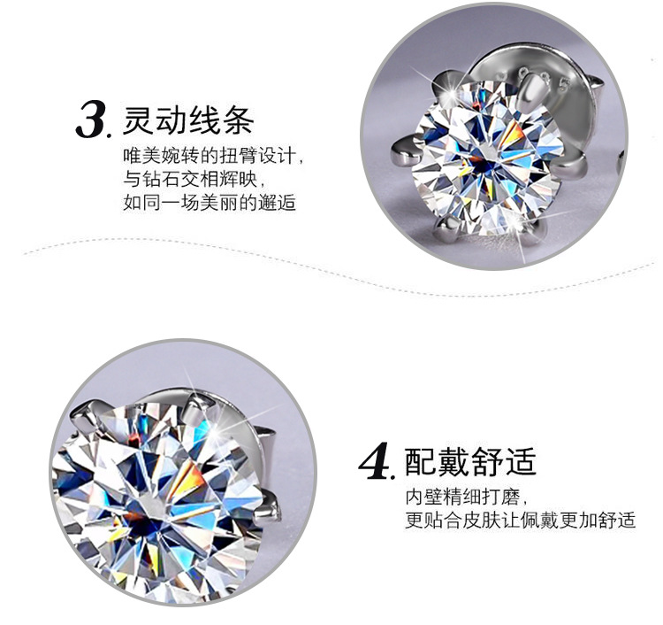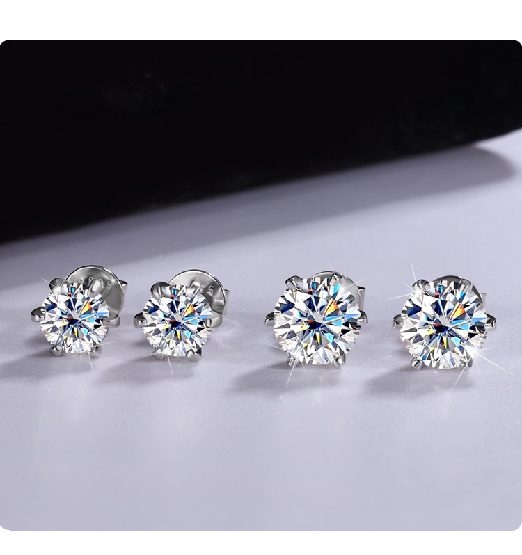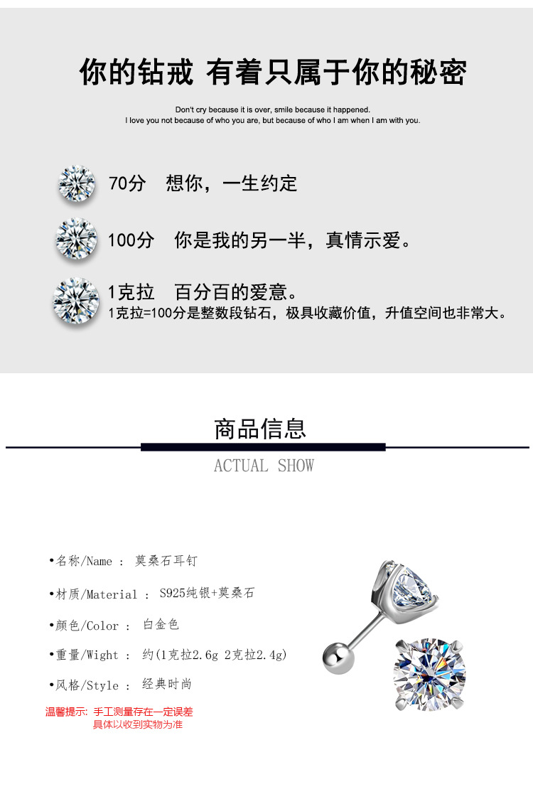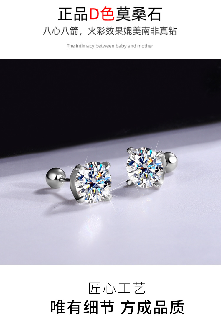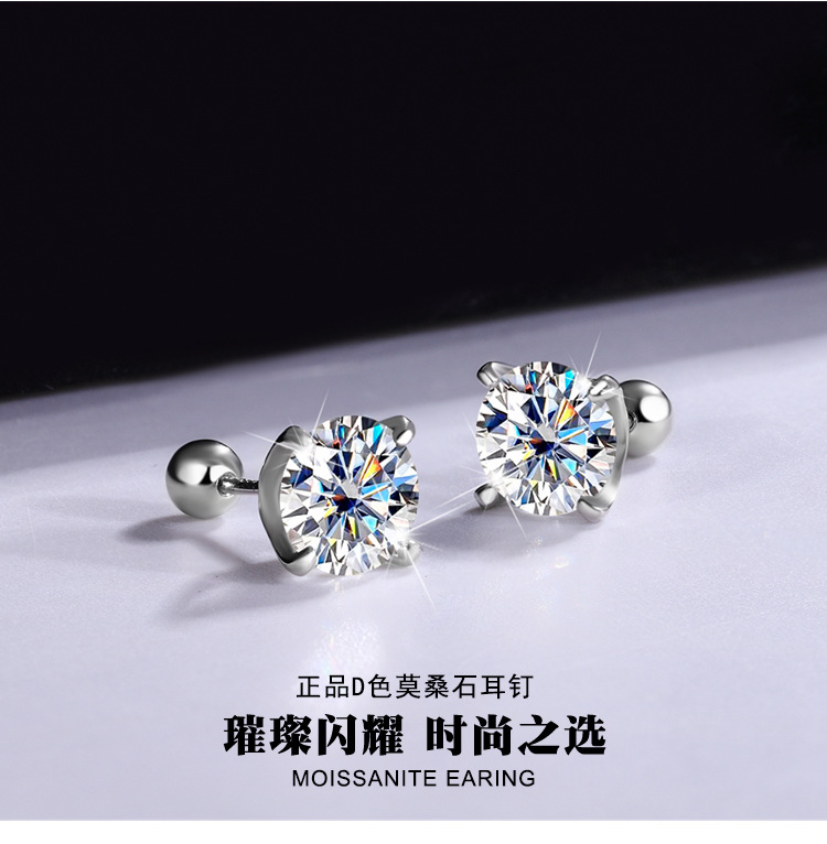 925銀莫桑石耳飾 四爪螺絲耳釘 50分1克拉 2克拉時尚簡約耳飾