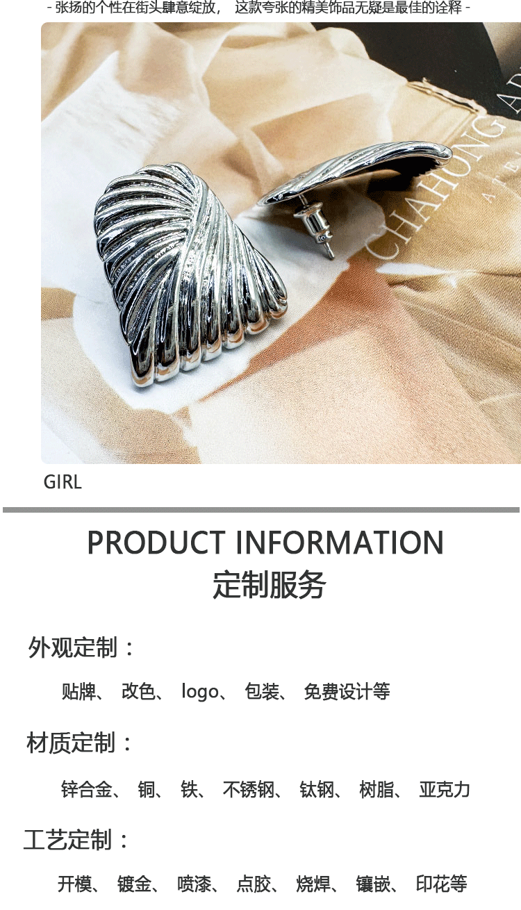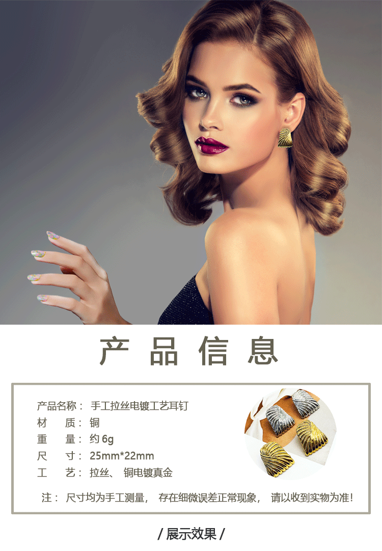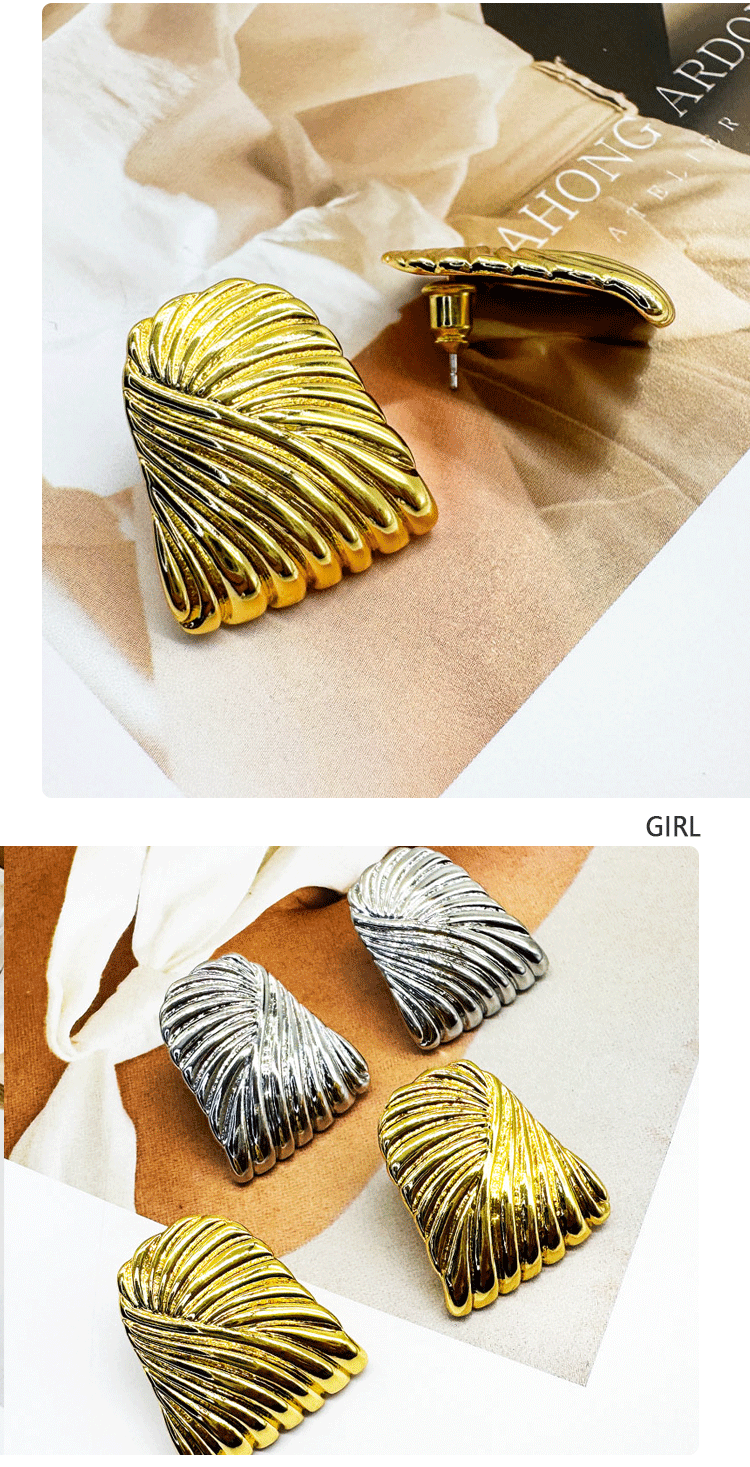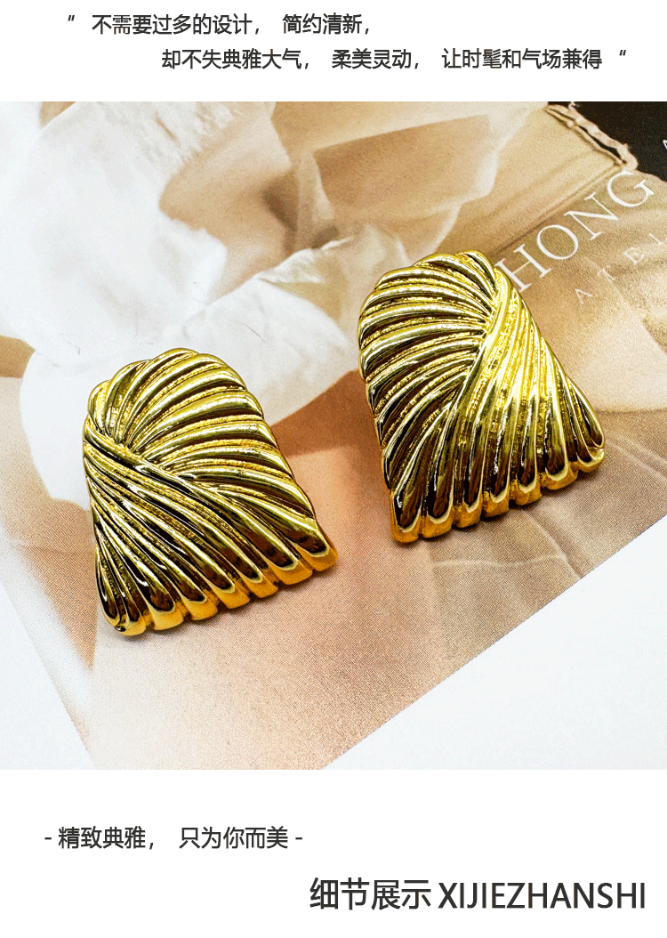 新款流蘇優雅時尚通勤小衆金屬水波紋925針耳釘耳環飾品歐美