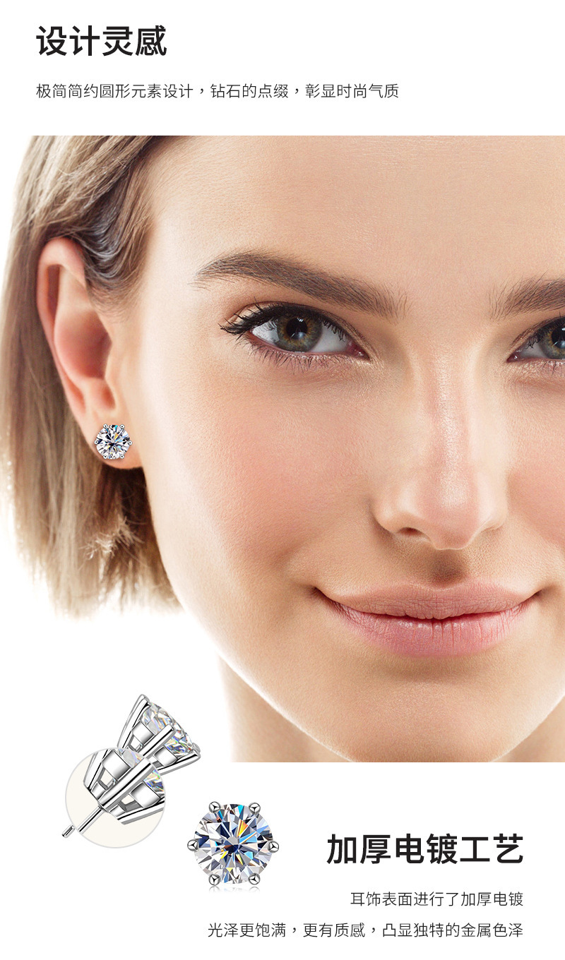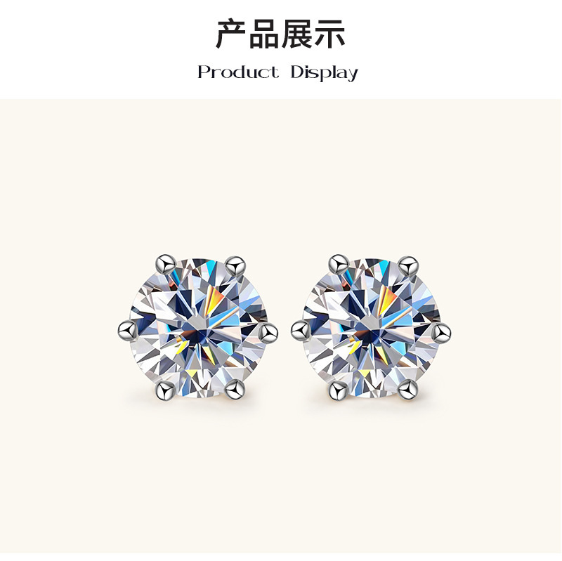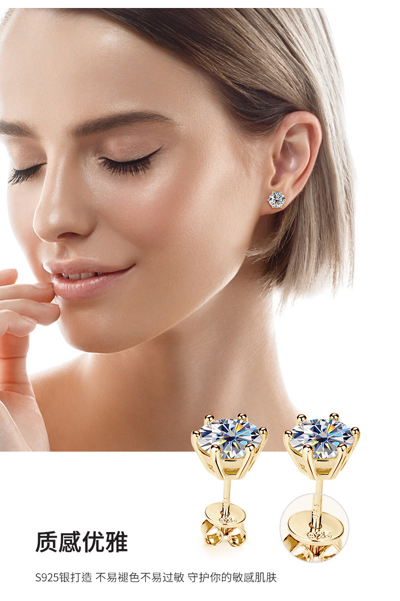 爆款六爪莫桑石耳釘小衆高級感輕奢925純銀耳飾