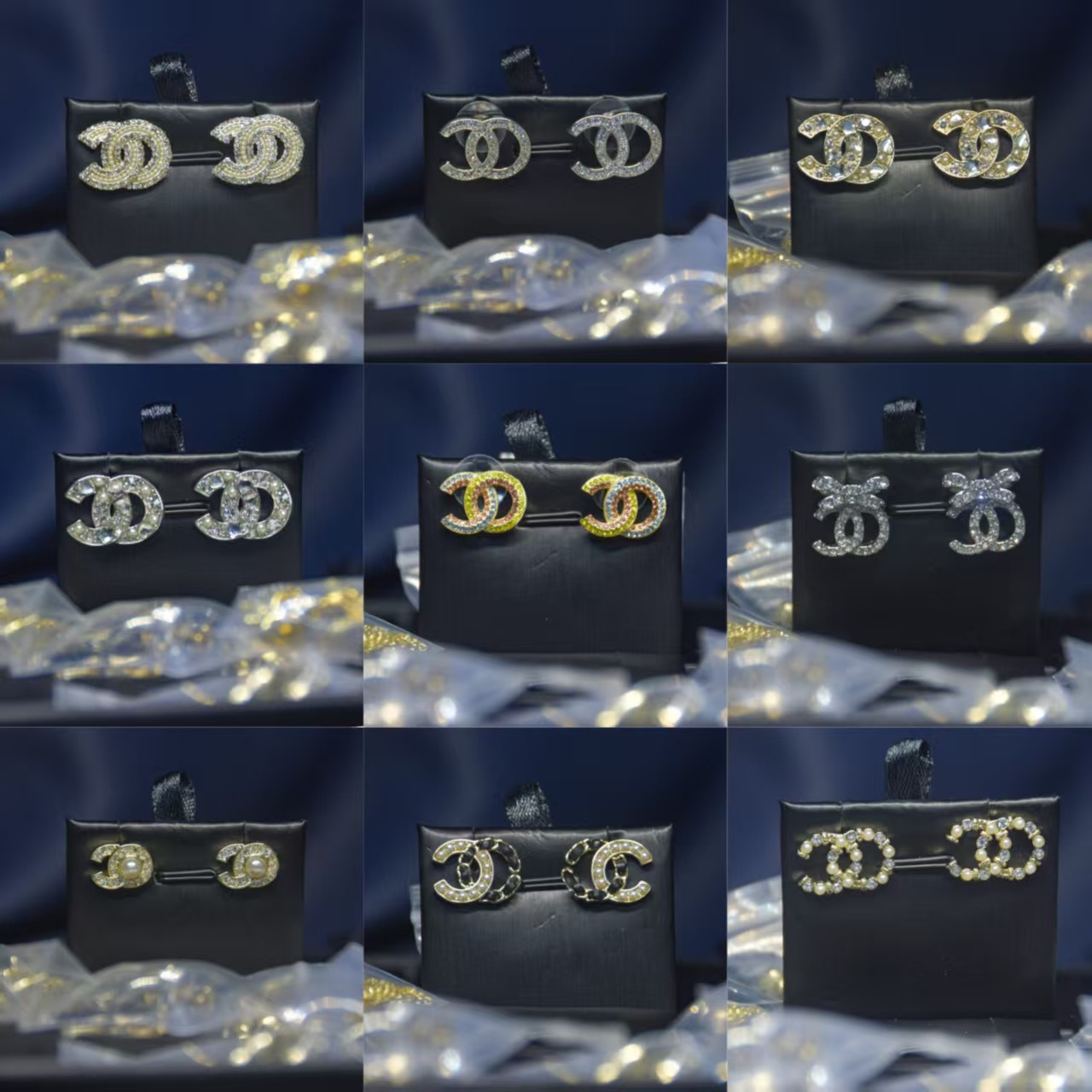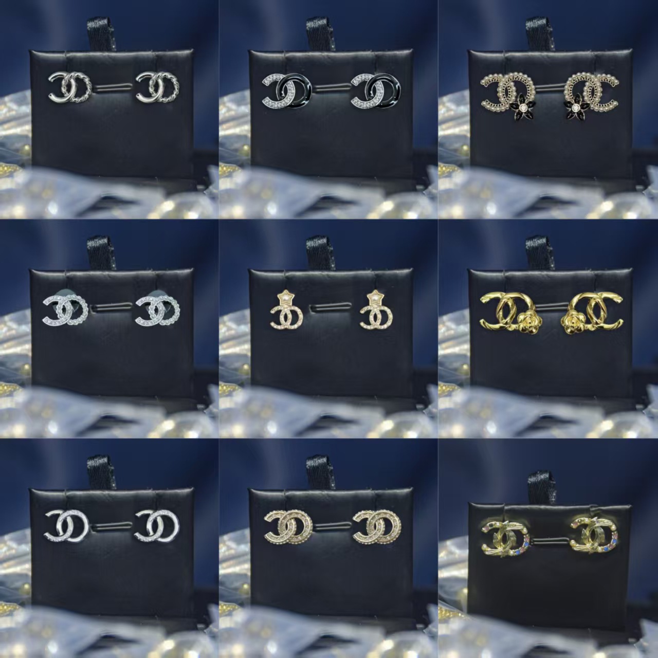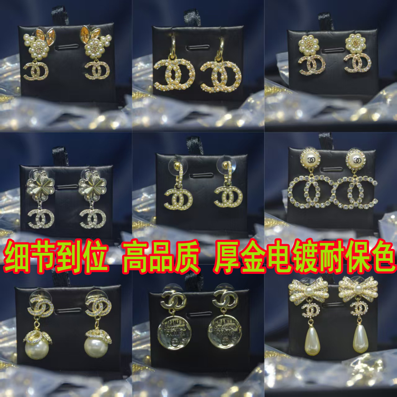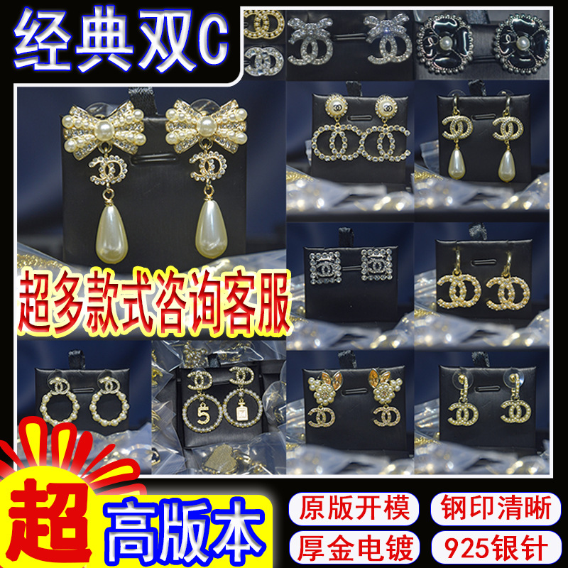 高版本香家耳釘小香風雙C耳釘925銀針滿鑽珍珠耳環中古風氣質耳飾