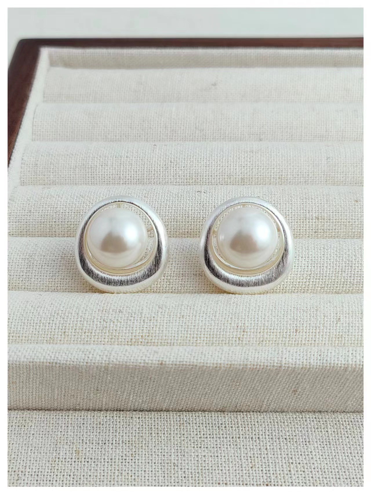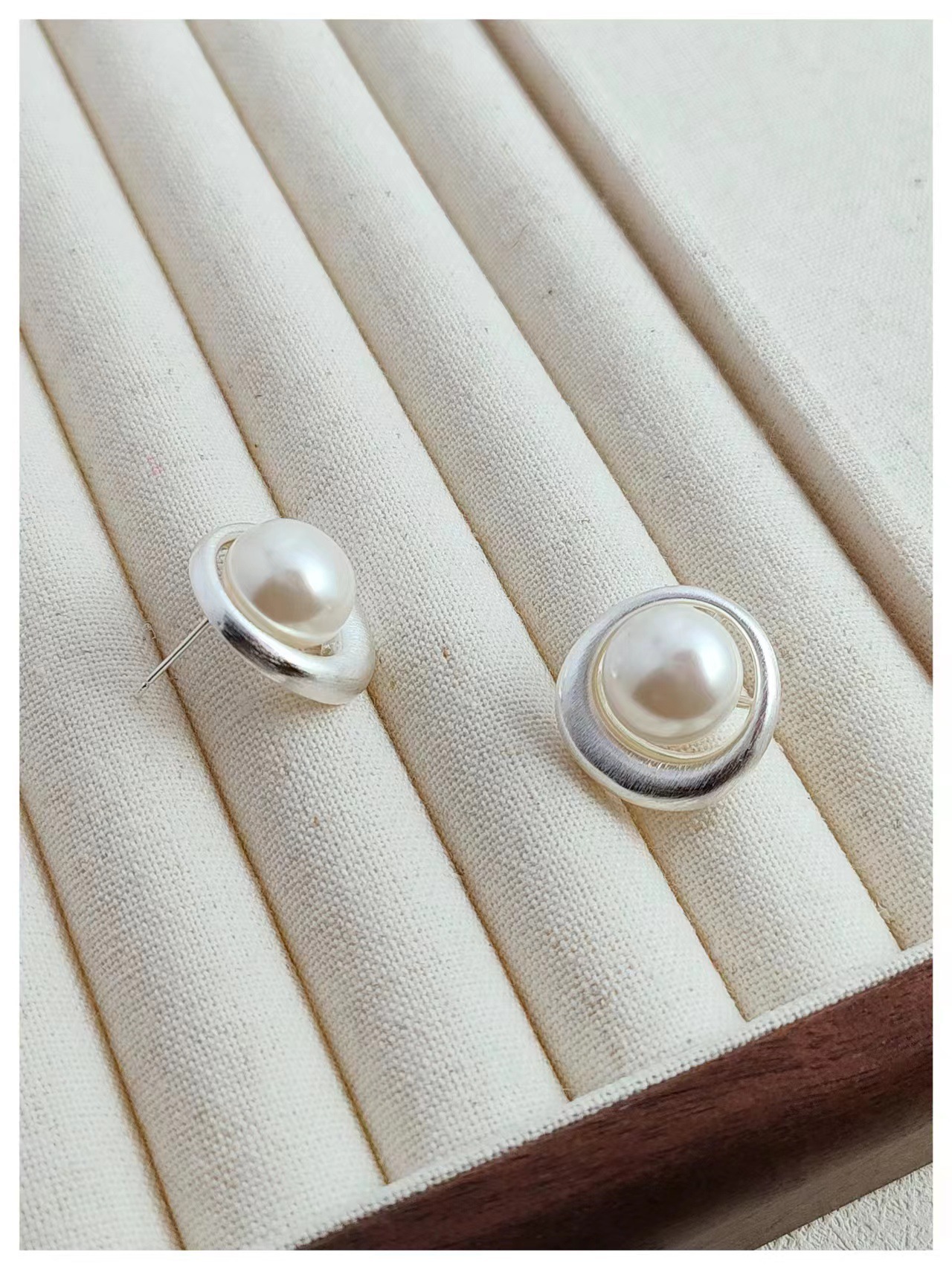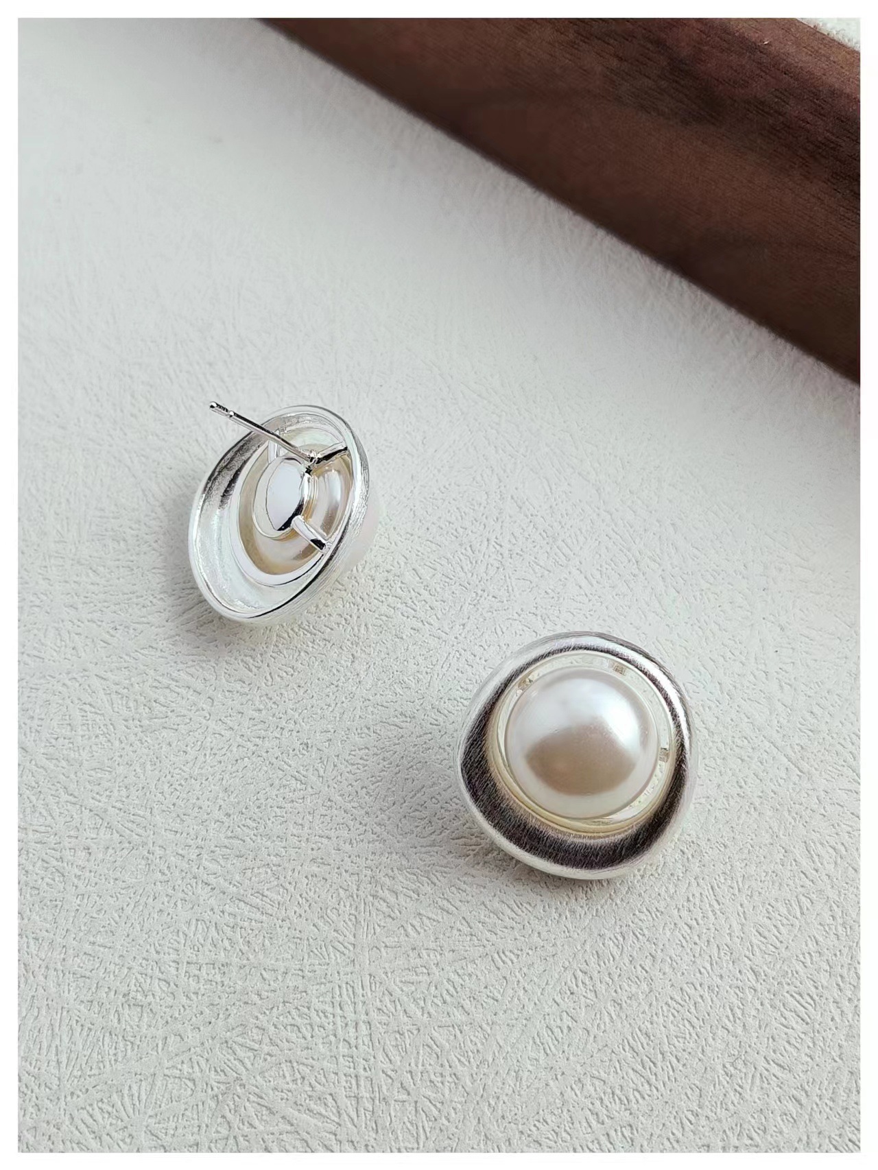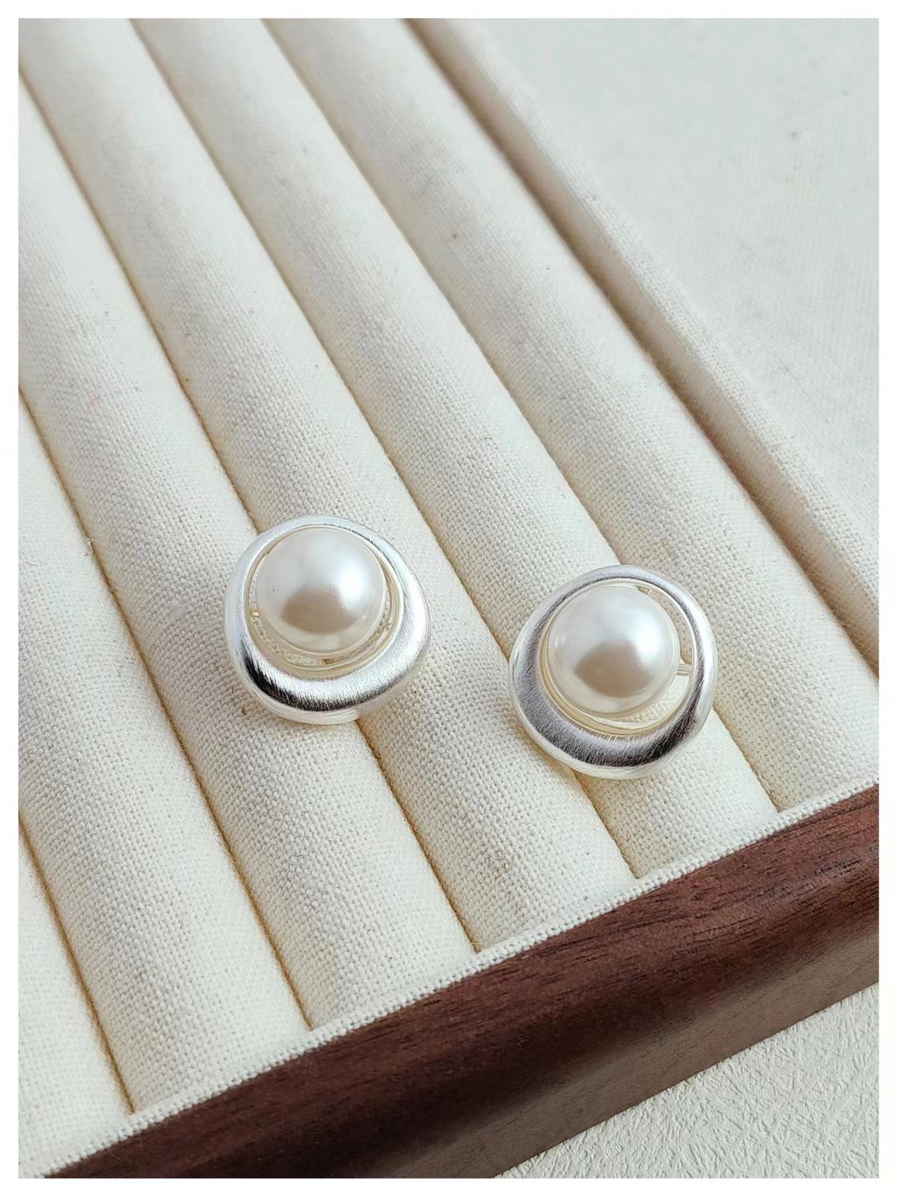 復古氣質珍珠耳釘女小衆設計手工拉絲925銀針耳環輕奢高級感耳飾