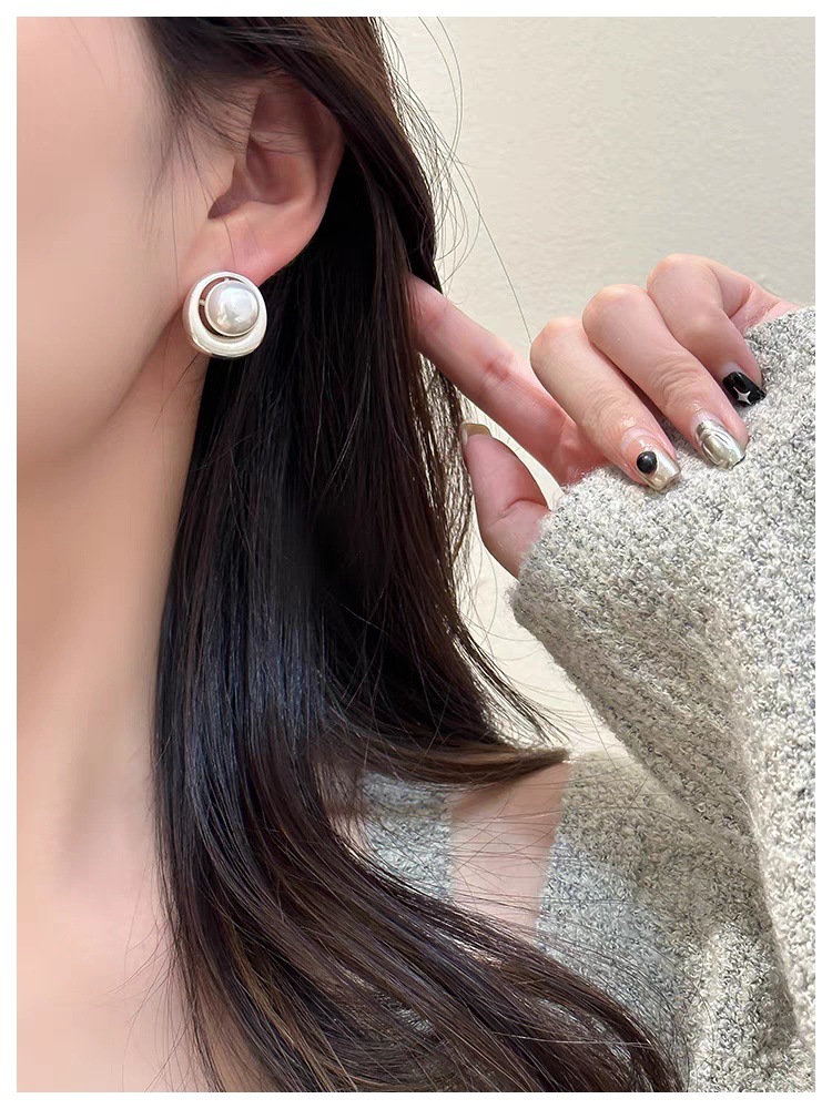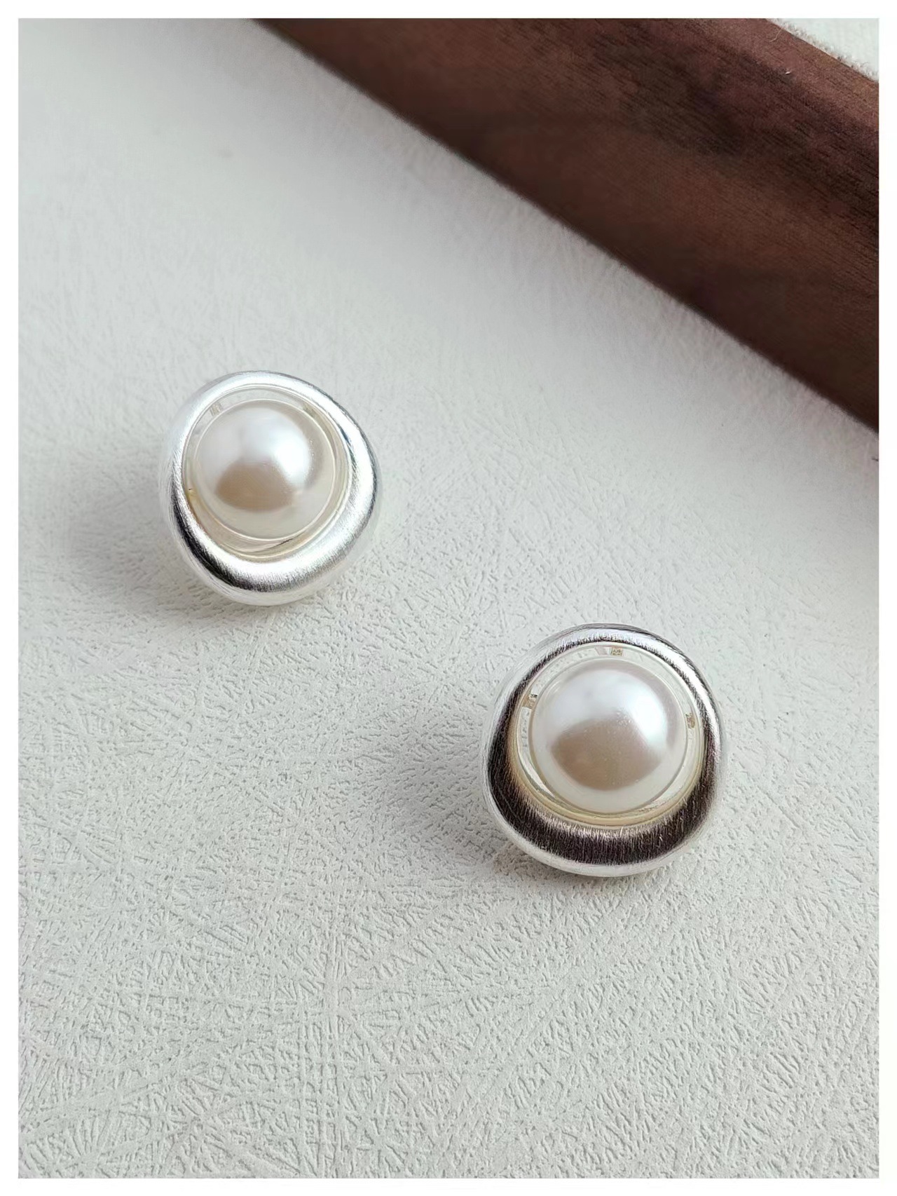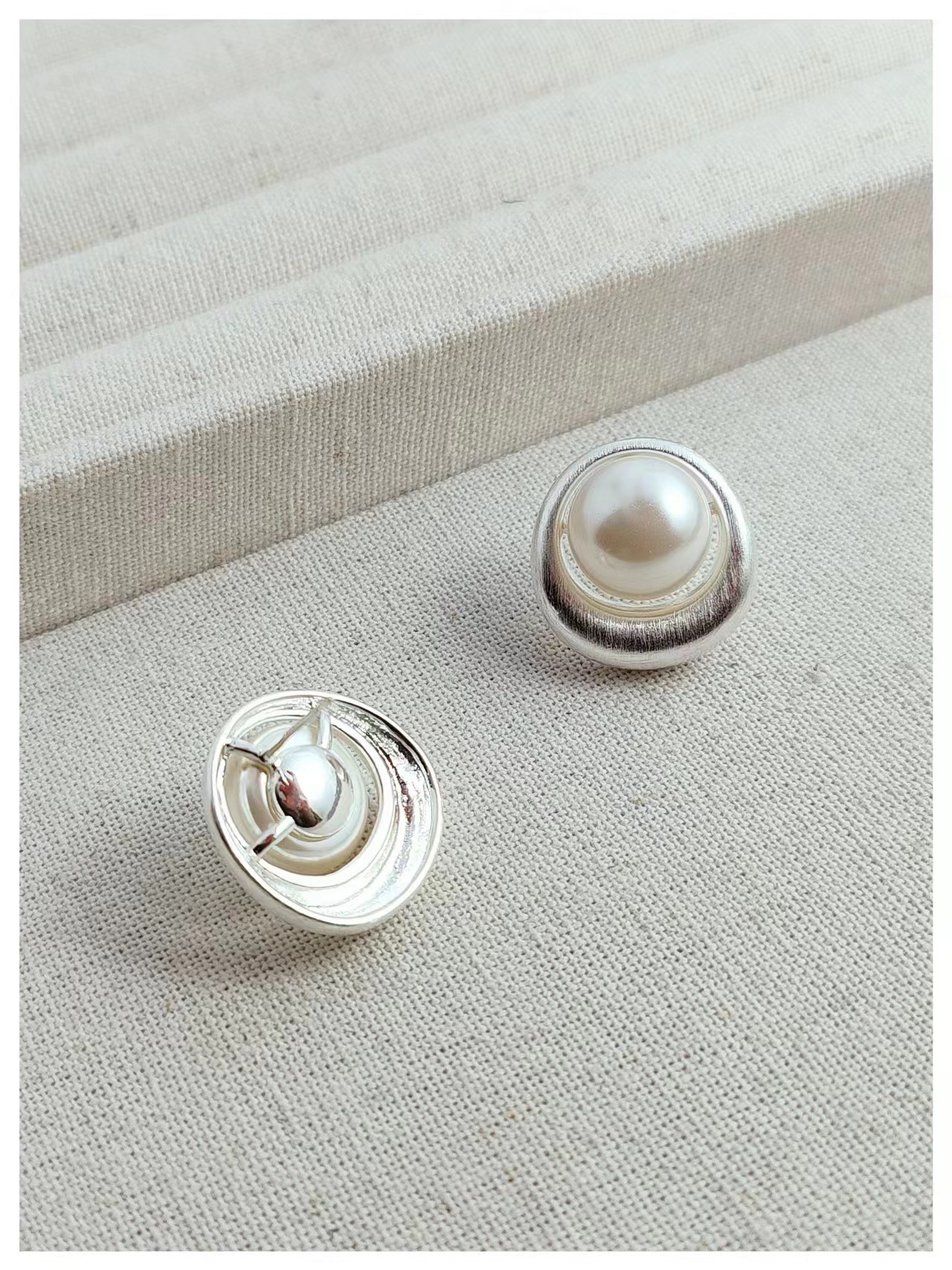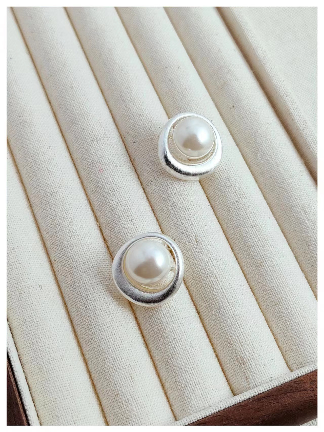 復古氣質珍珠耳釘女小衆設計手工拉絲925銀針耳環輕奢高級感耳飾
