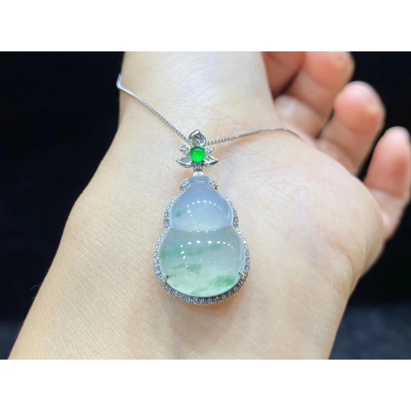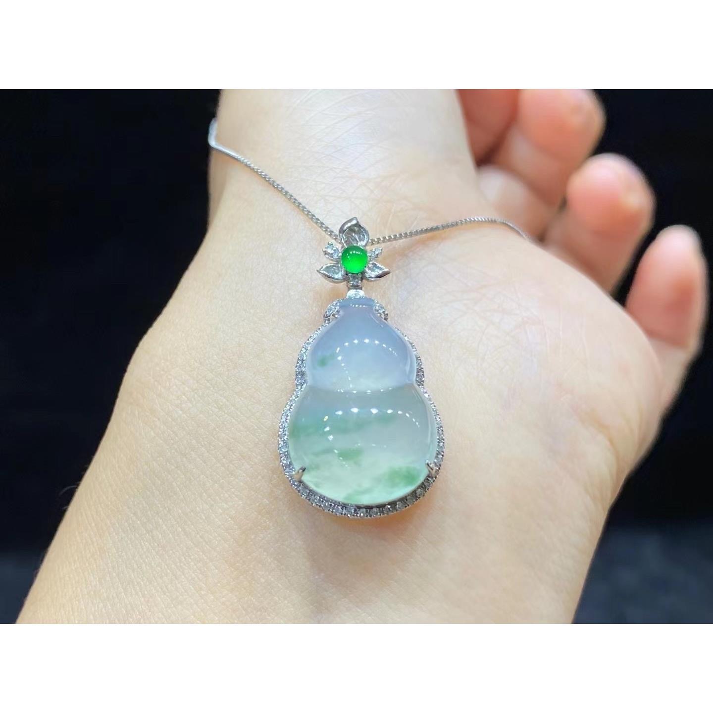 緬甸老坑翡翠冰種飄綠葫蘆吊墜玉珮鑲嵌飄花男女士款玉墜項飾掛件