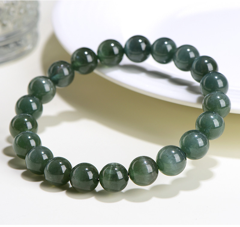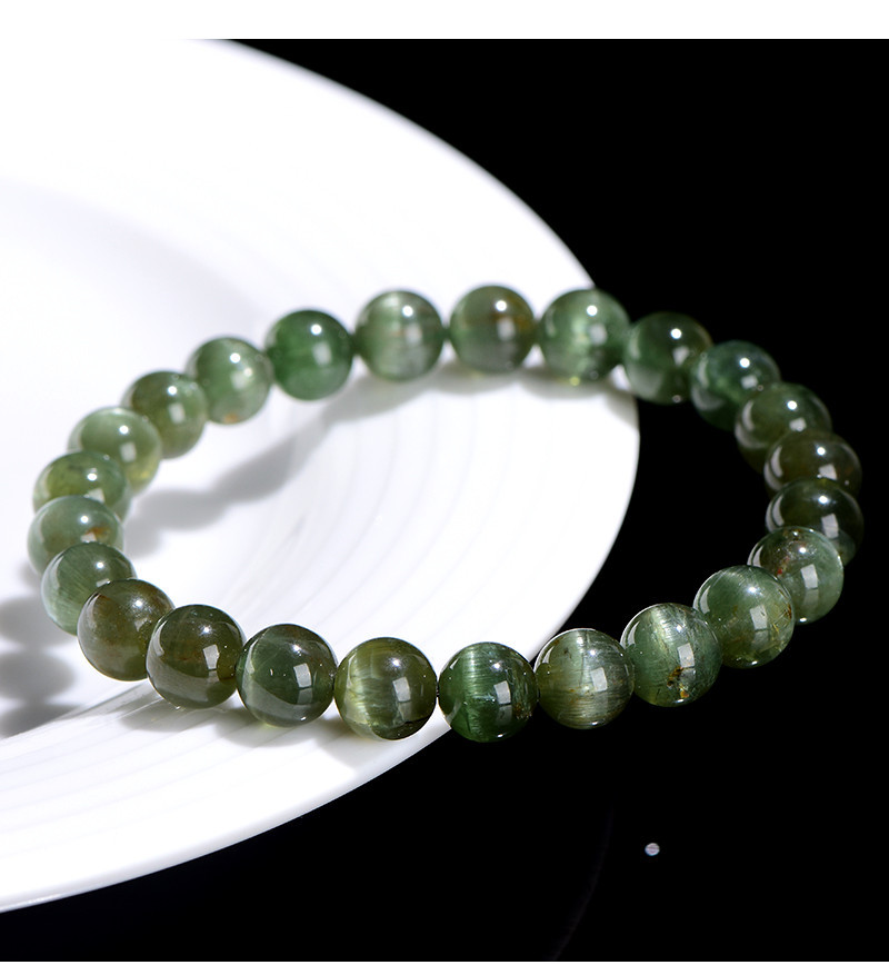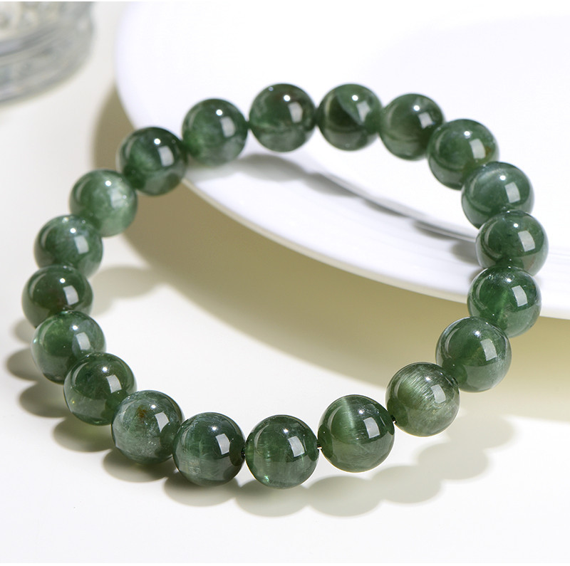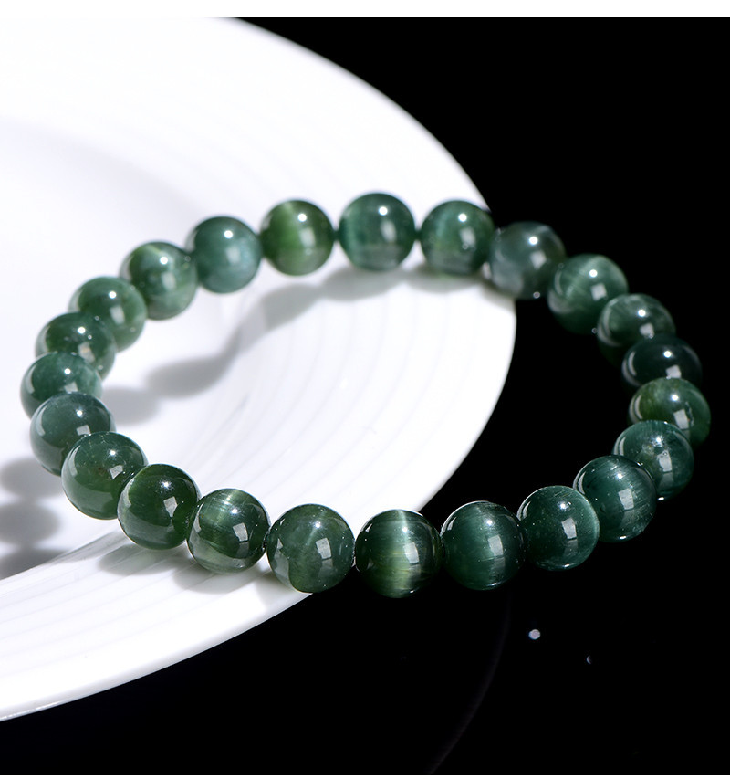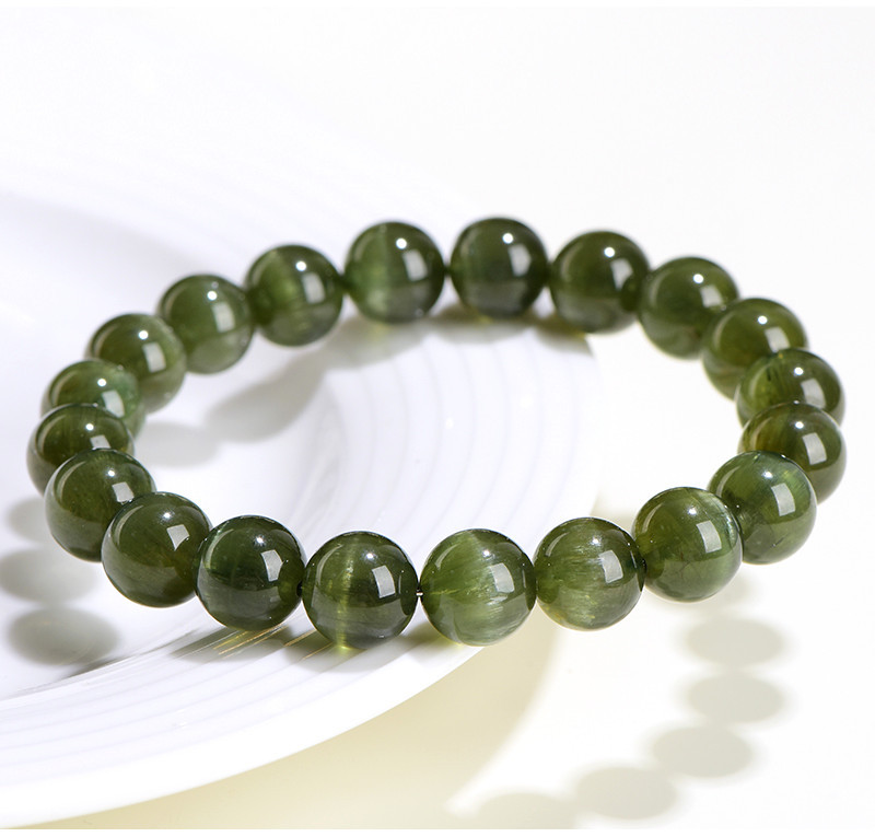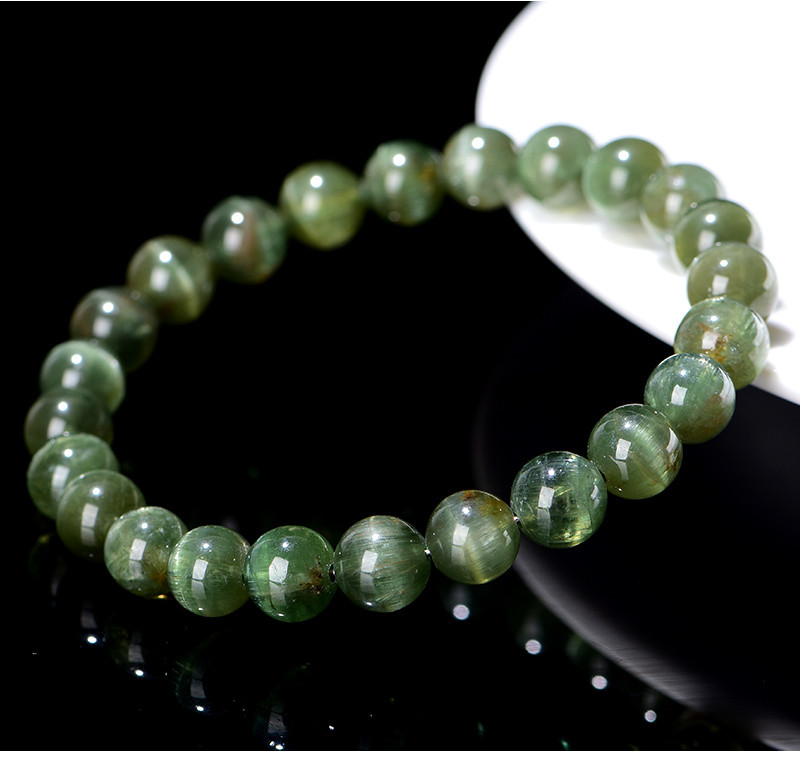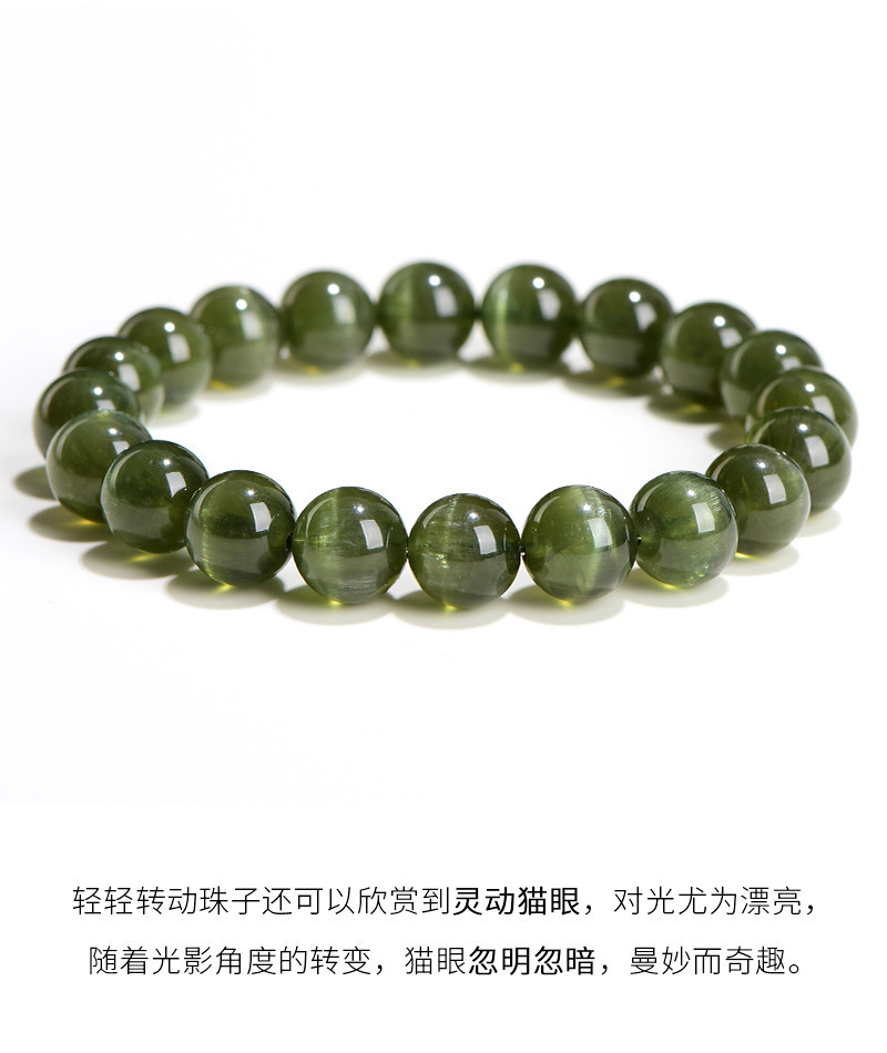 久雅水晶 7A級天然綠磷灰圓珠手鏈 綠色貓眼磷灰石散珠手串