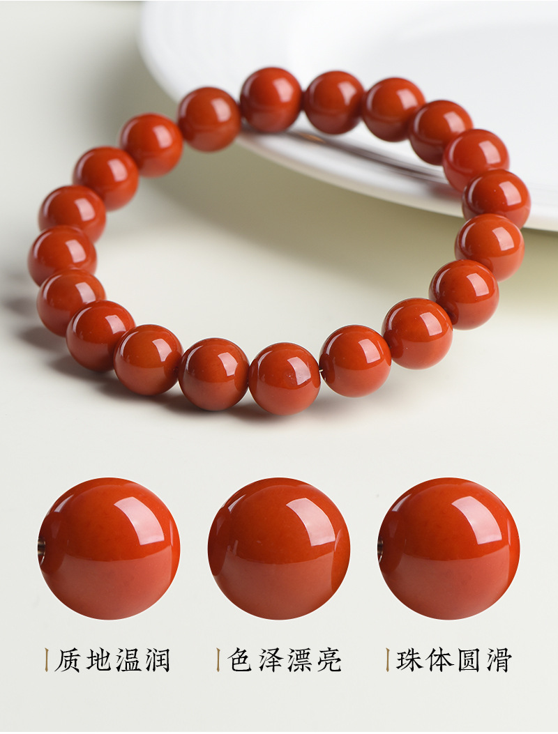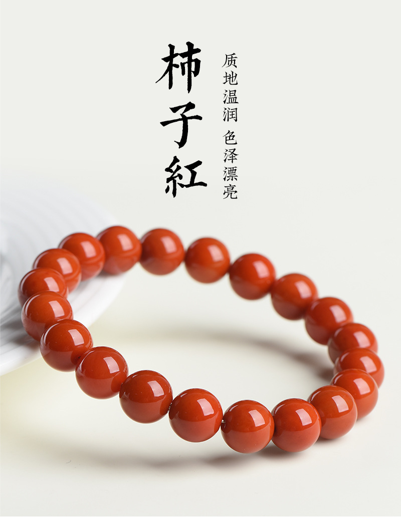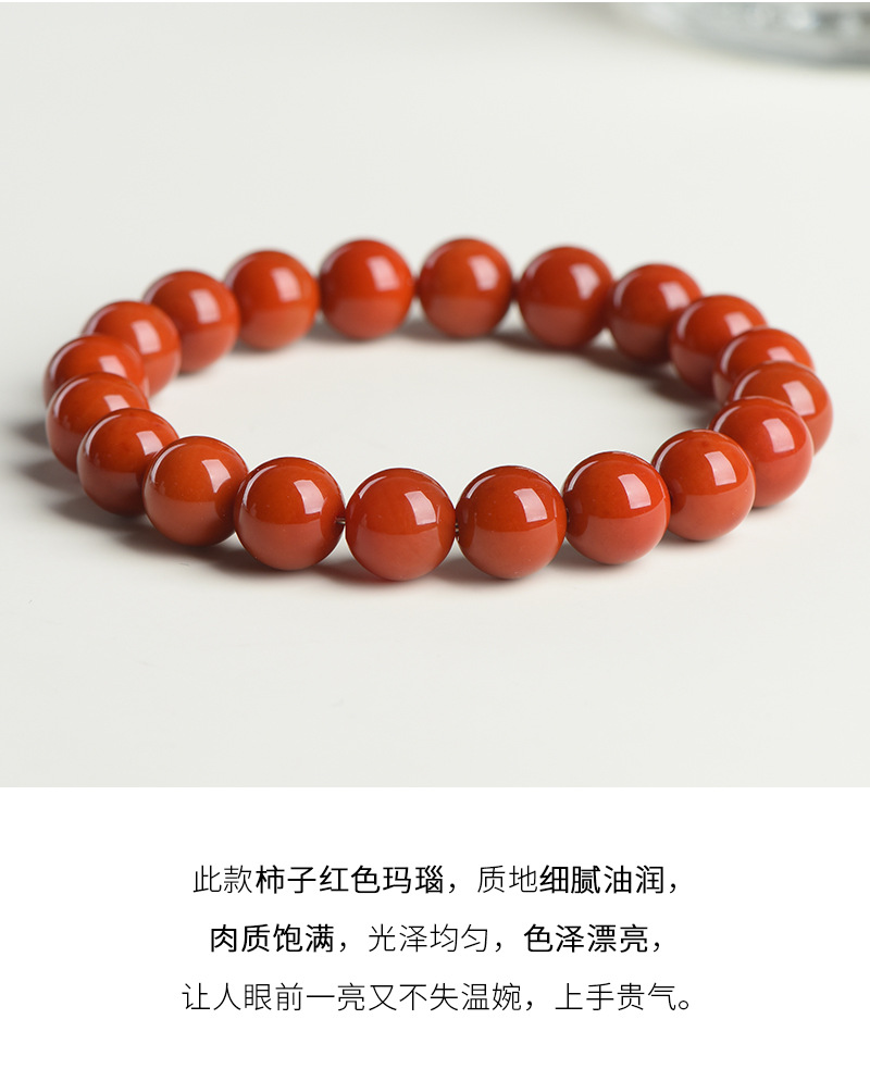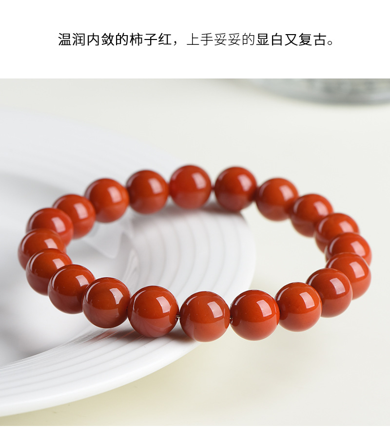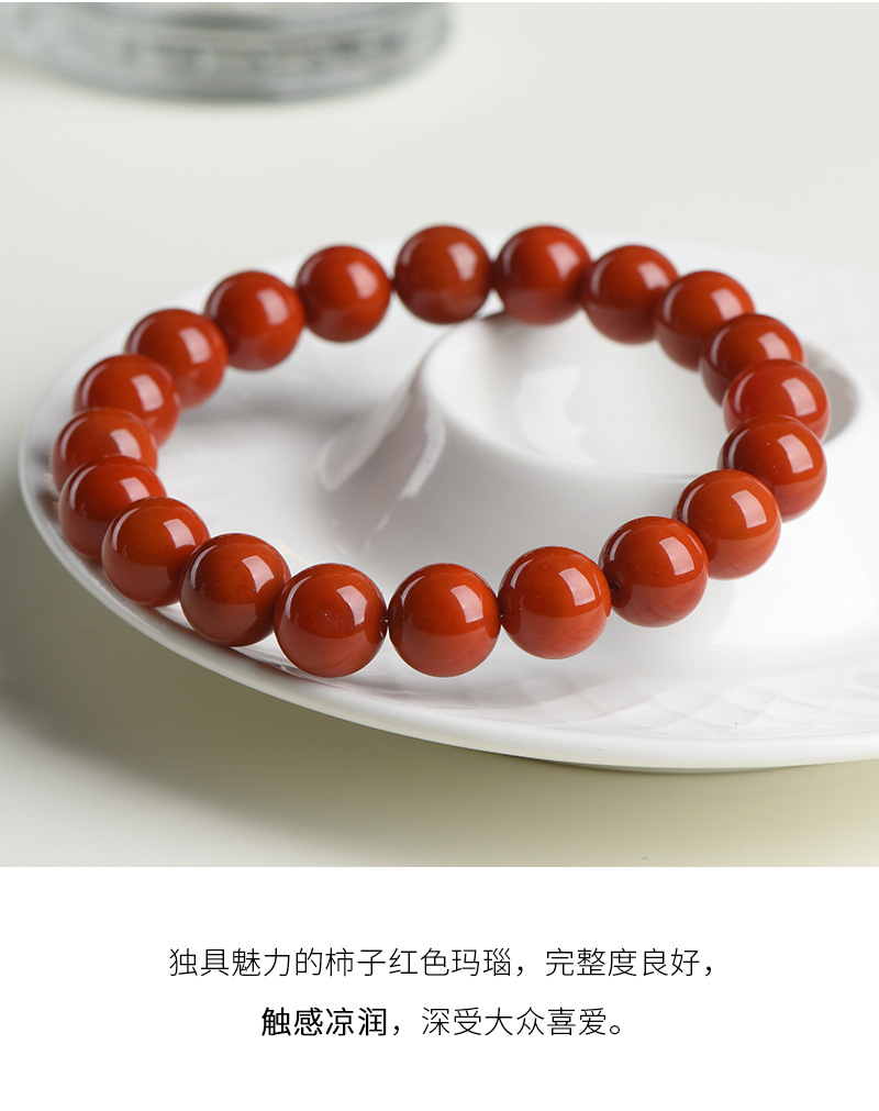 久雅水晶 天然柿子紅色瑪瑙散珠手串 老料紅瑪瑙圓珠手鏈