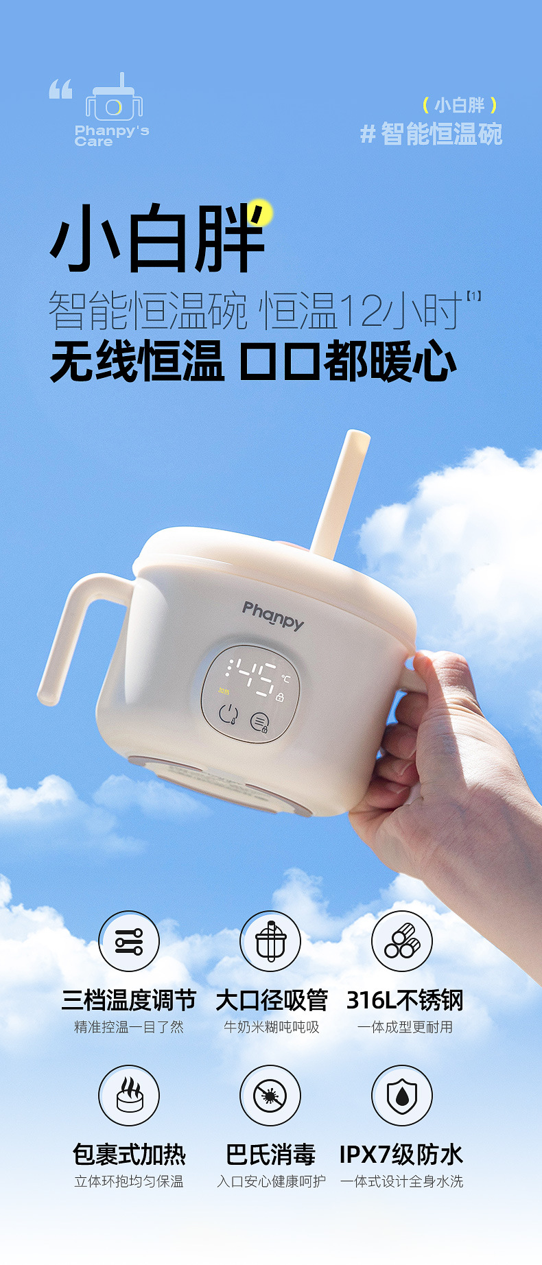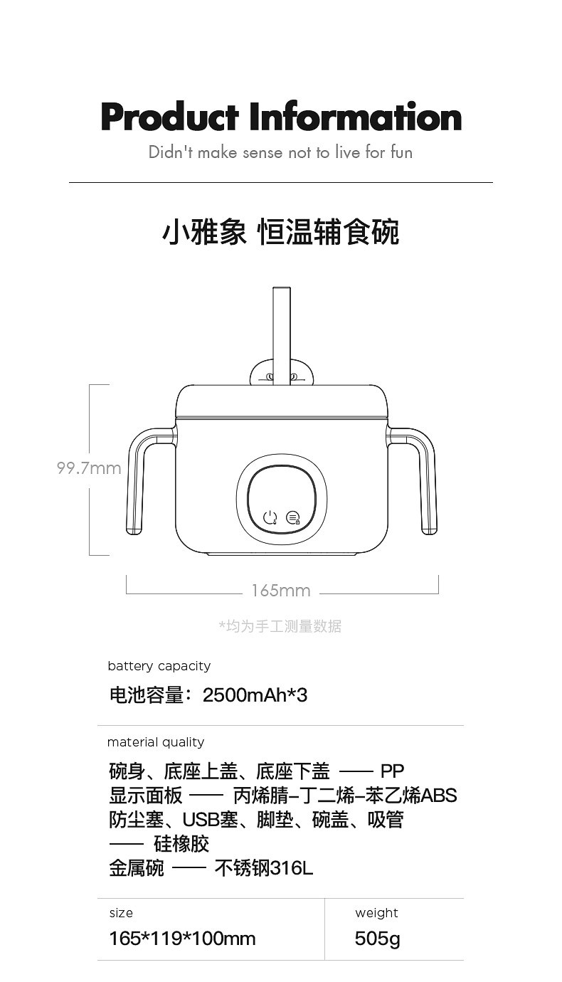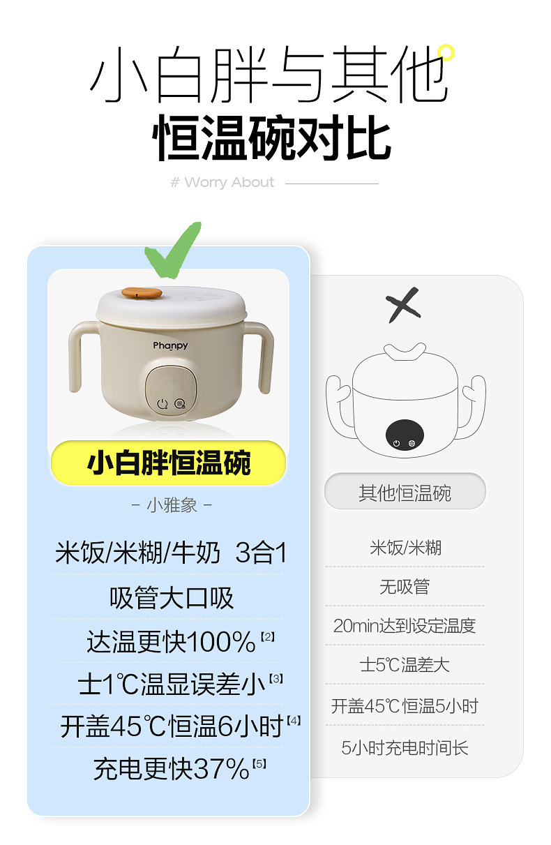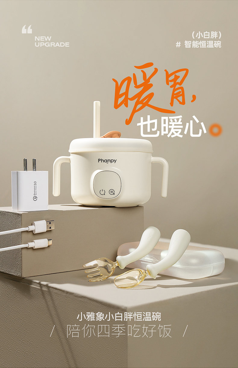 小雅象寶寶恒溫碗嬰兒充電加熱免注水兒童智能電子保溫吸管輔食碗