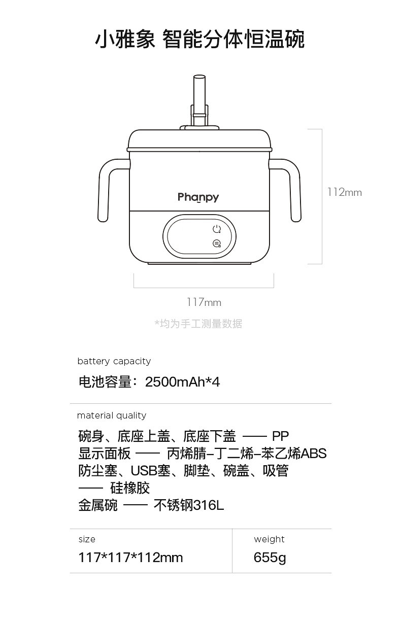 | 顔色 | 智能分體恒溫碗洛莎白 |
