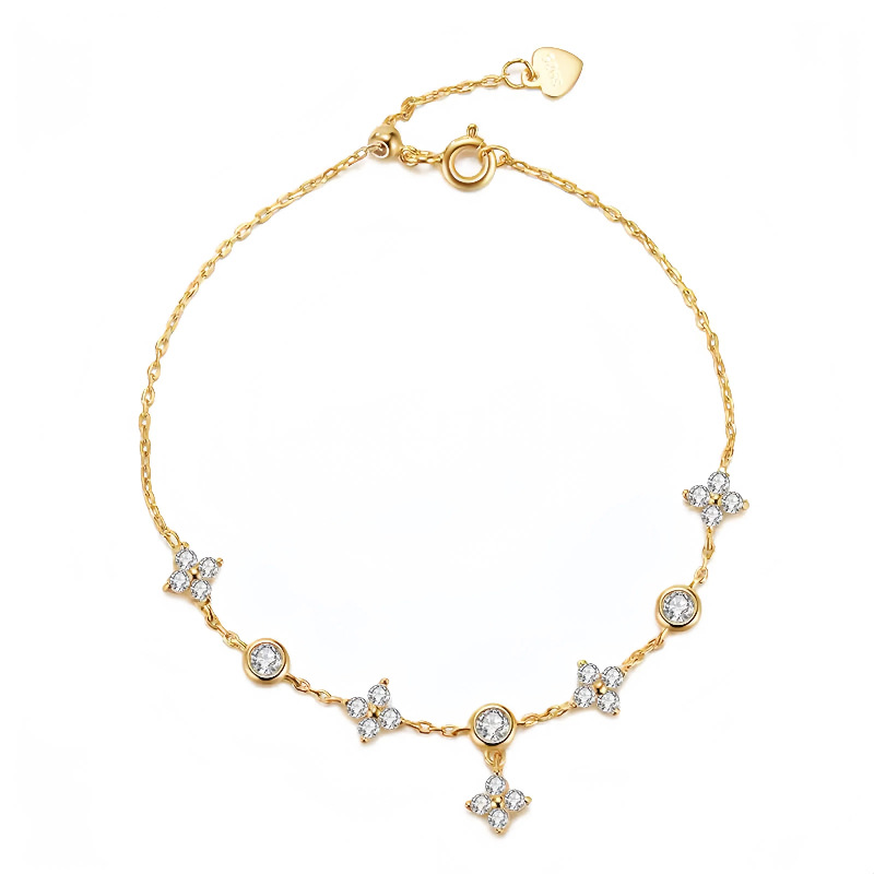 S925銀鍍18K金四葉草滿天星手鏈簡約超閃鋯鑽女款氣質五花手飾