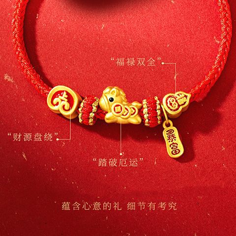 新款馬上有錢手鏈女新中式本命年生肖馬暴富葫蘆祥雲編織紅繩手繩
