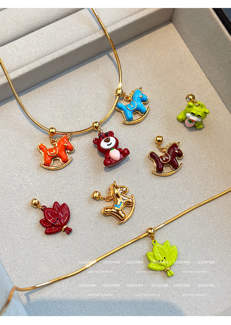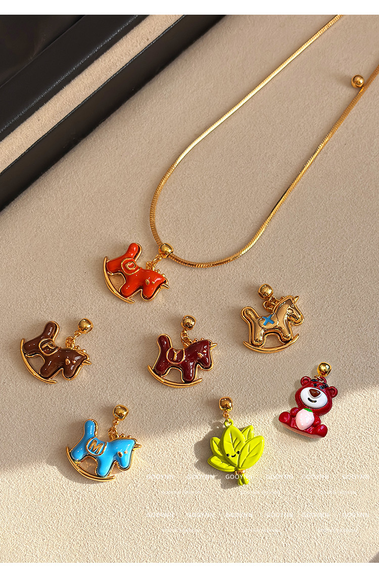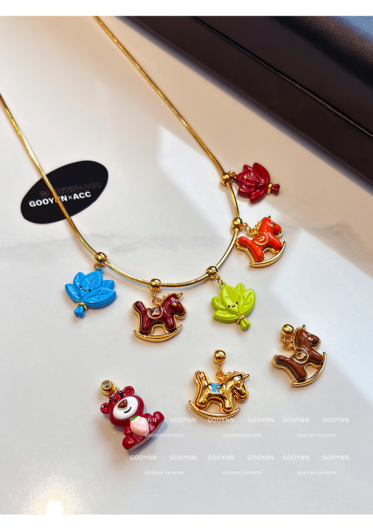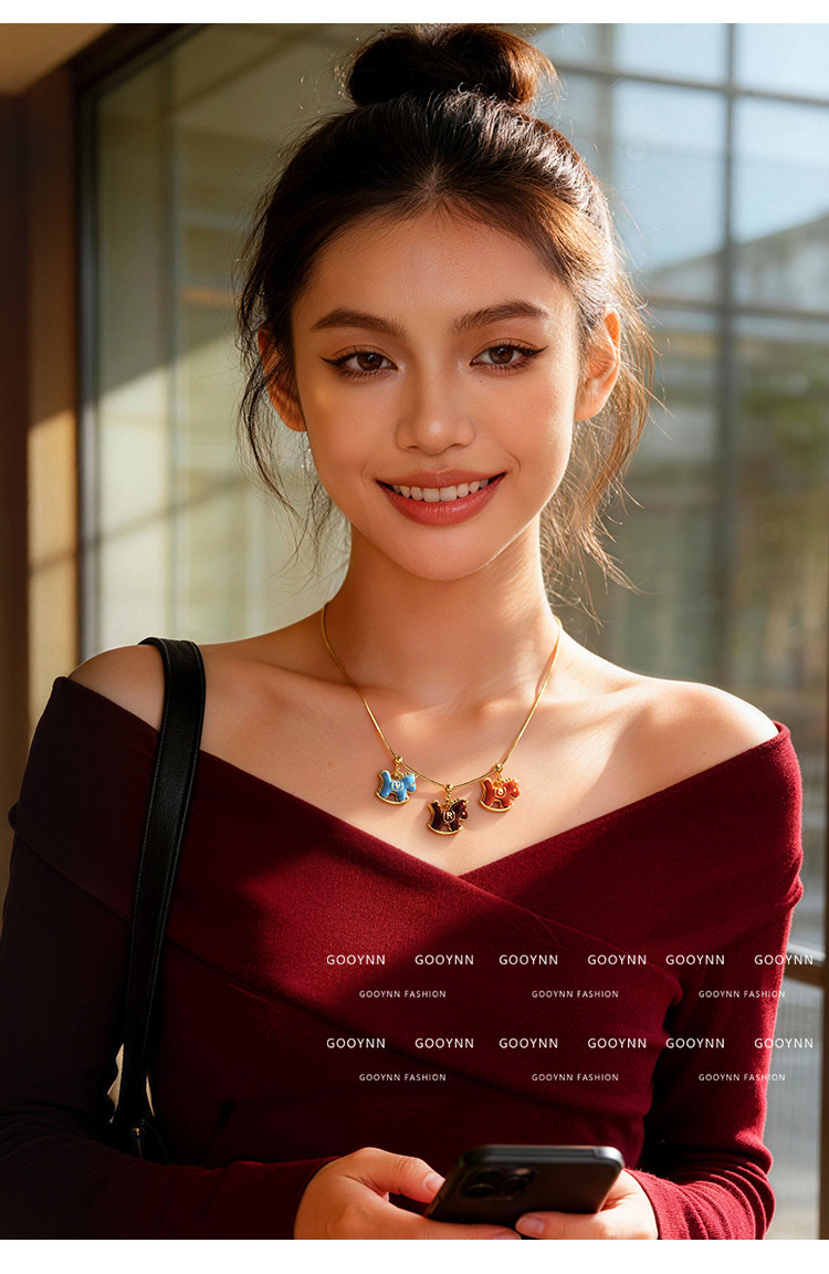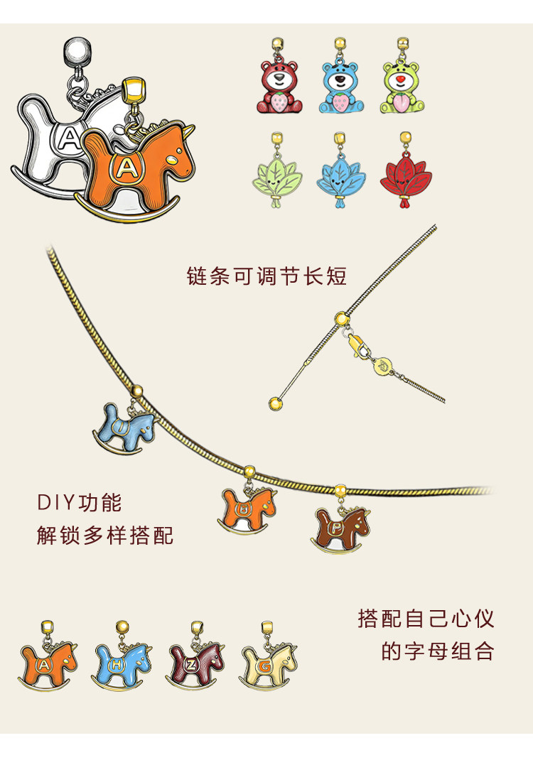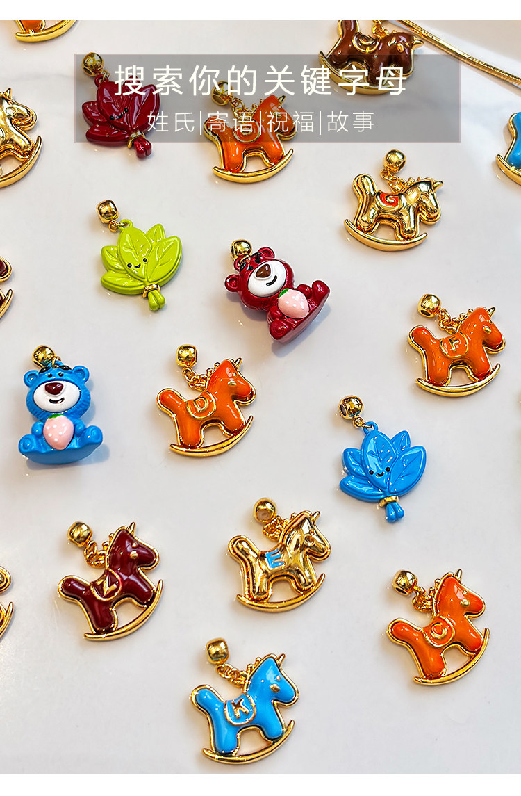 馬上有名~字母項鍊女新年紅色小馬diy吊墜配飾小熊長款鎖骨毛衣鏈