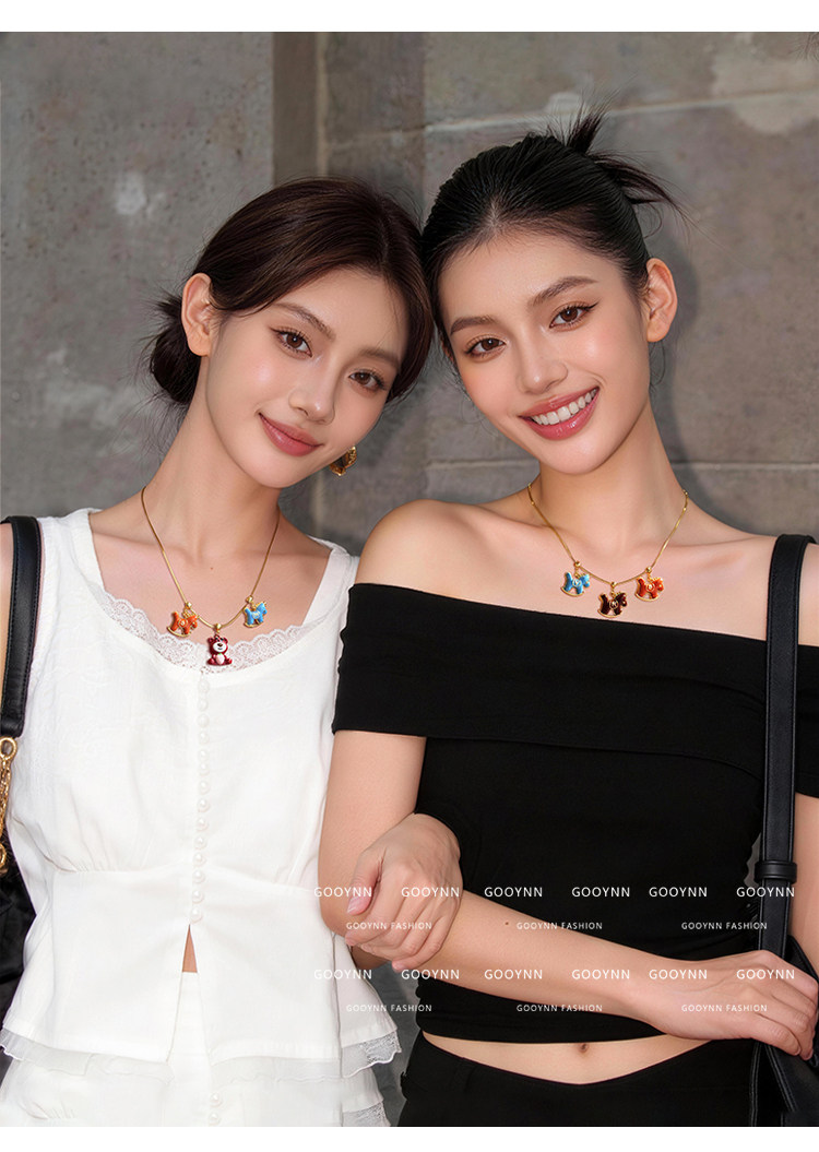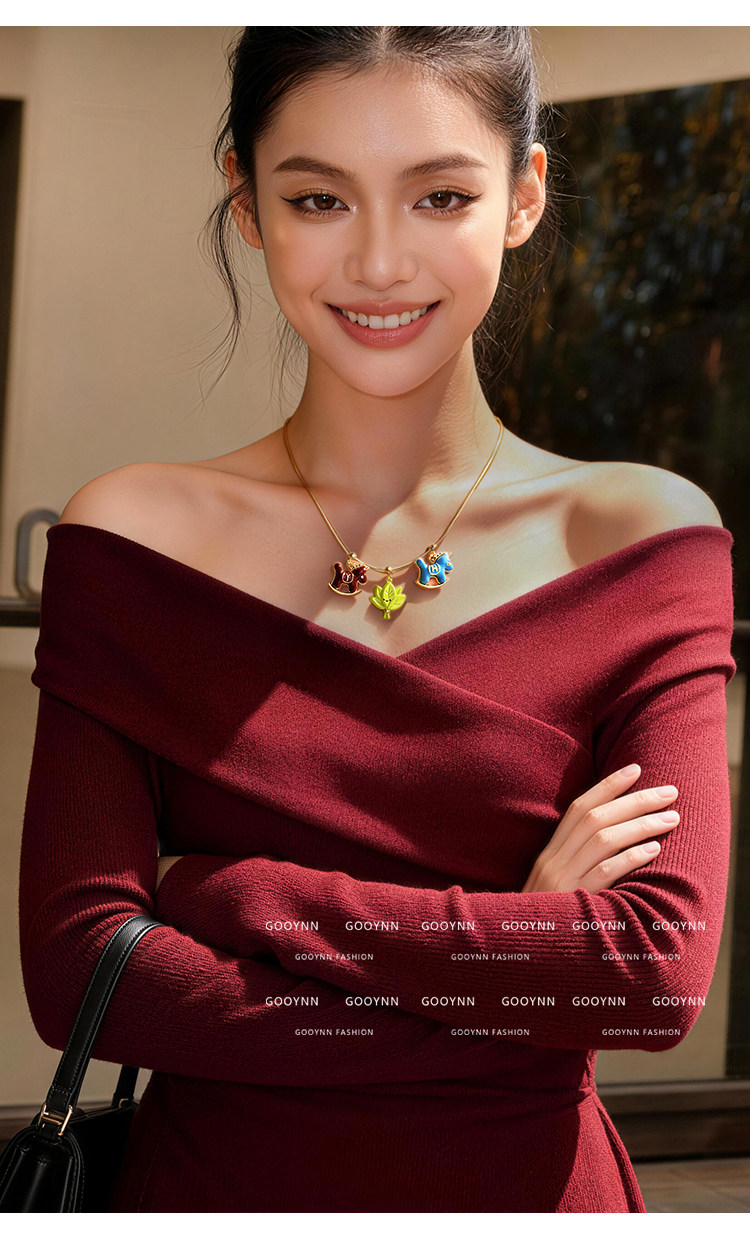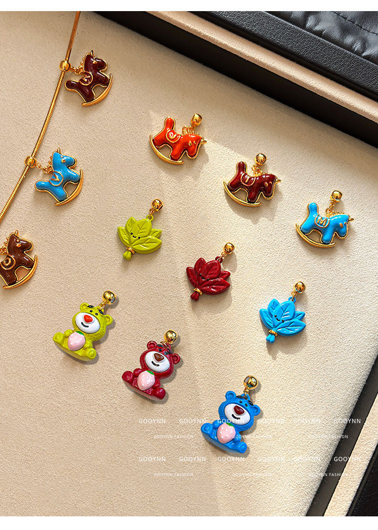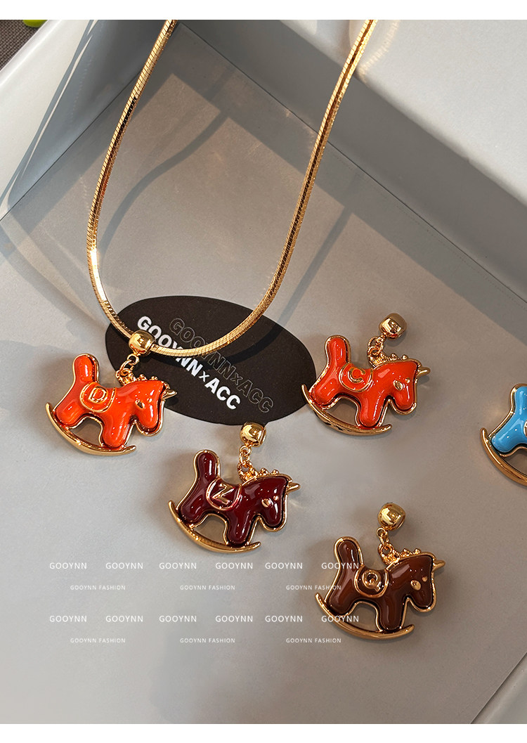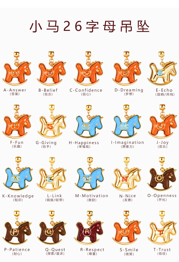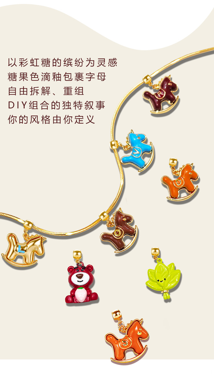 馬上有名~字母項鍊女新年紅色小馬diy吊墜配飾小熊長款鎖骨毛衣鏈